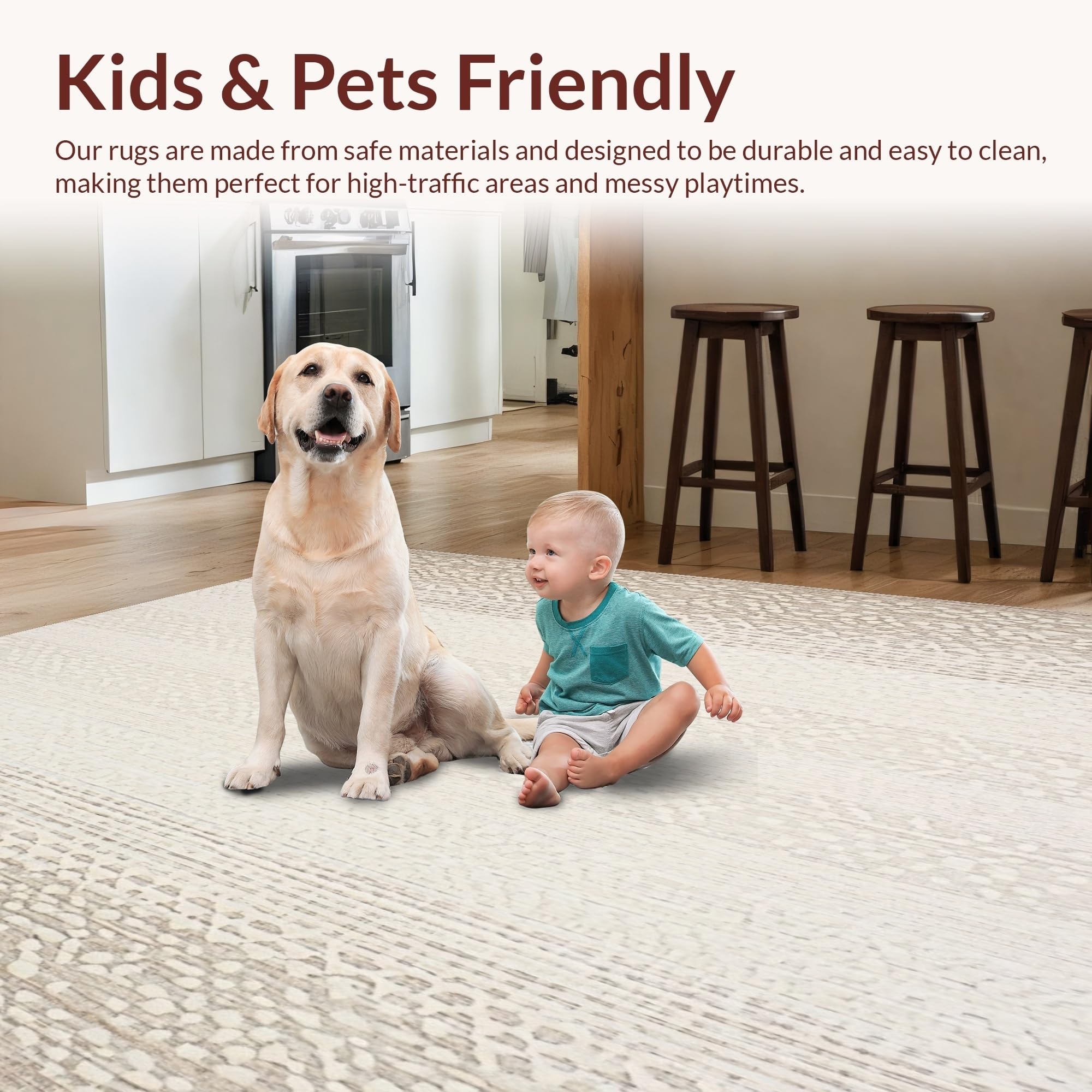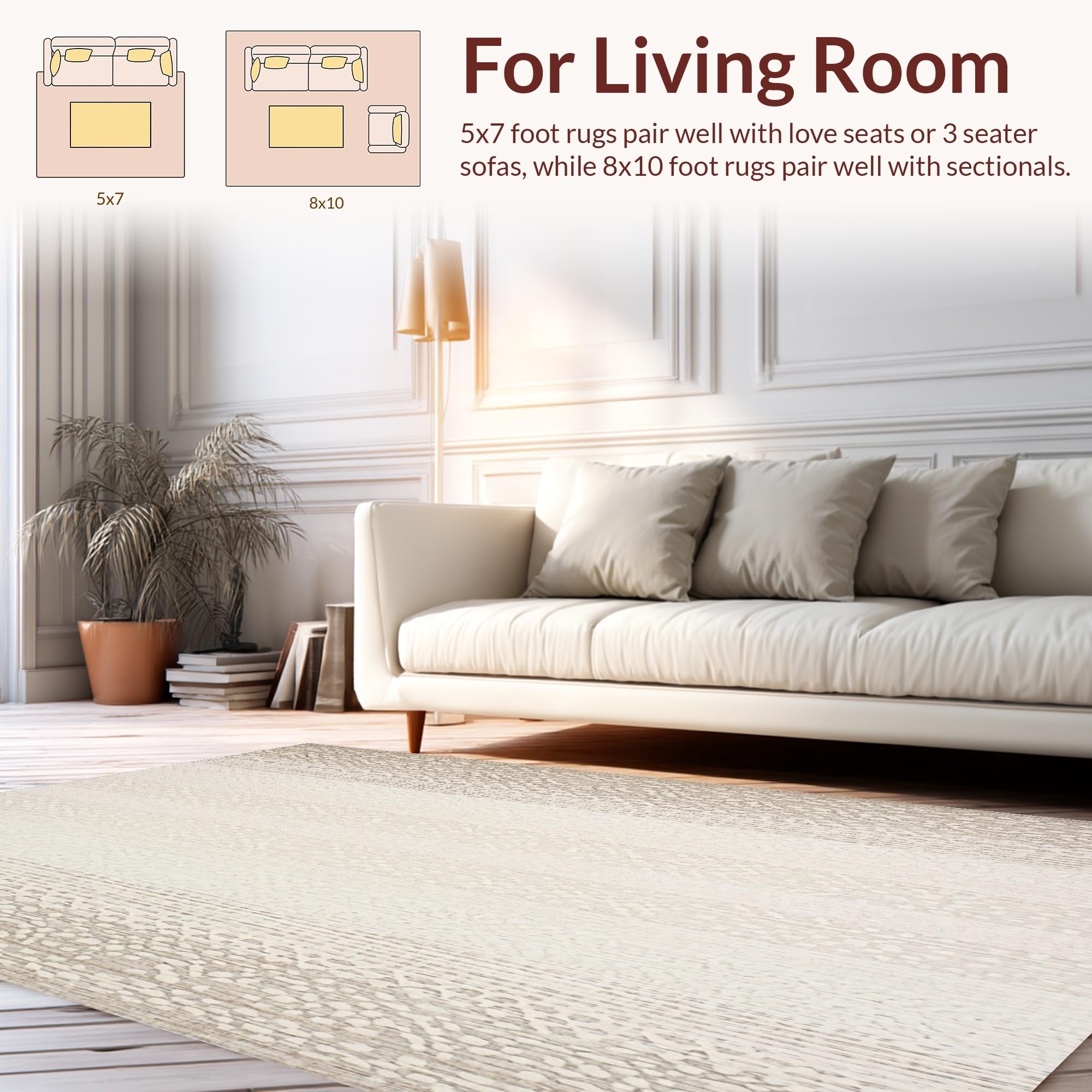 Ultra Soft Area Rug, Non Slip, Stain Resistant, Washable Area Rugs for Living Room, Bedroom, Artisan Crafted Woolen Area Cream Beige Neutral Floor Covering(Beige) Overview: