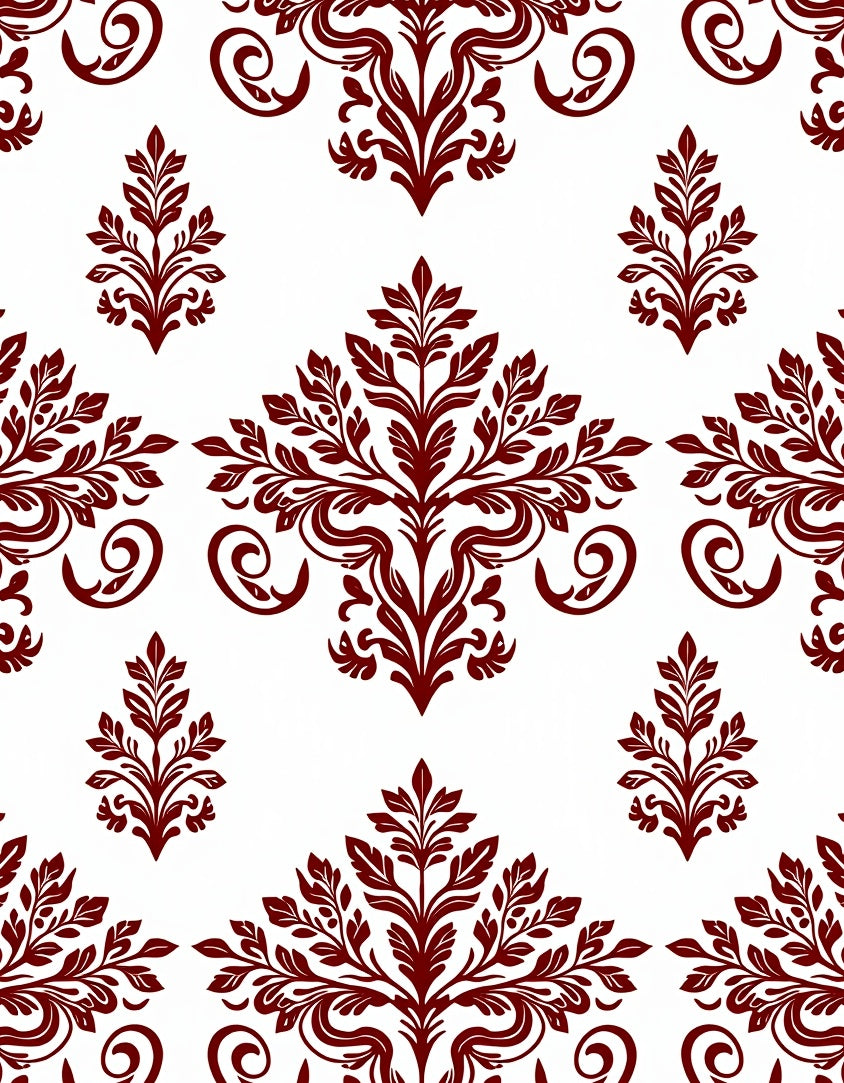 Artisan Foliage Damask with Symmetrical Nature Inspired Flourishes(White)