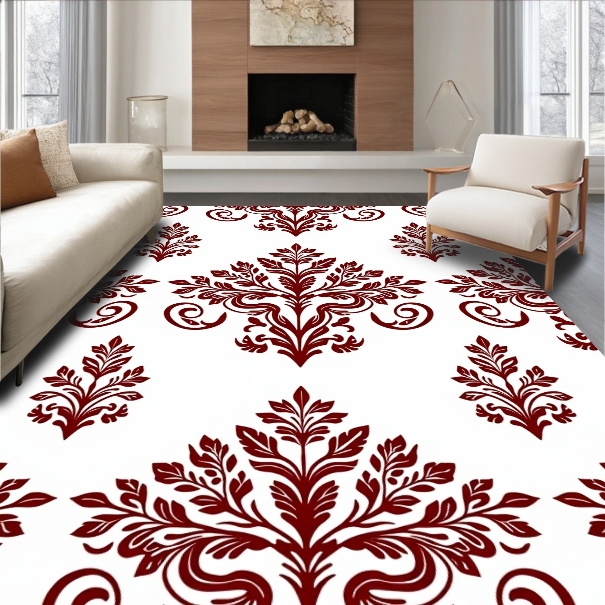 Ultra Soft Area Rug, Non Slip, Stain Resistant, Washable Area Rugs for Living Room, Bedroom, Artisan Foliage Damask with Symmetrical Nature Inspired Flourishes(White) Overview: