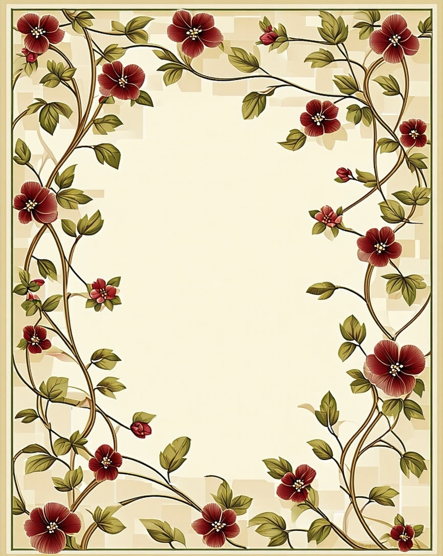 Artisan Geo Flora with Rich Burgundy Olive and Beige Accents(Beige)