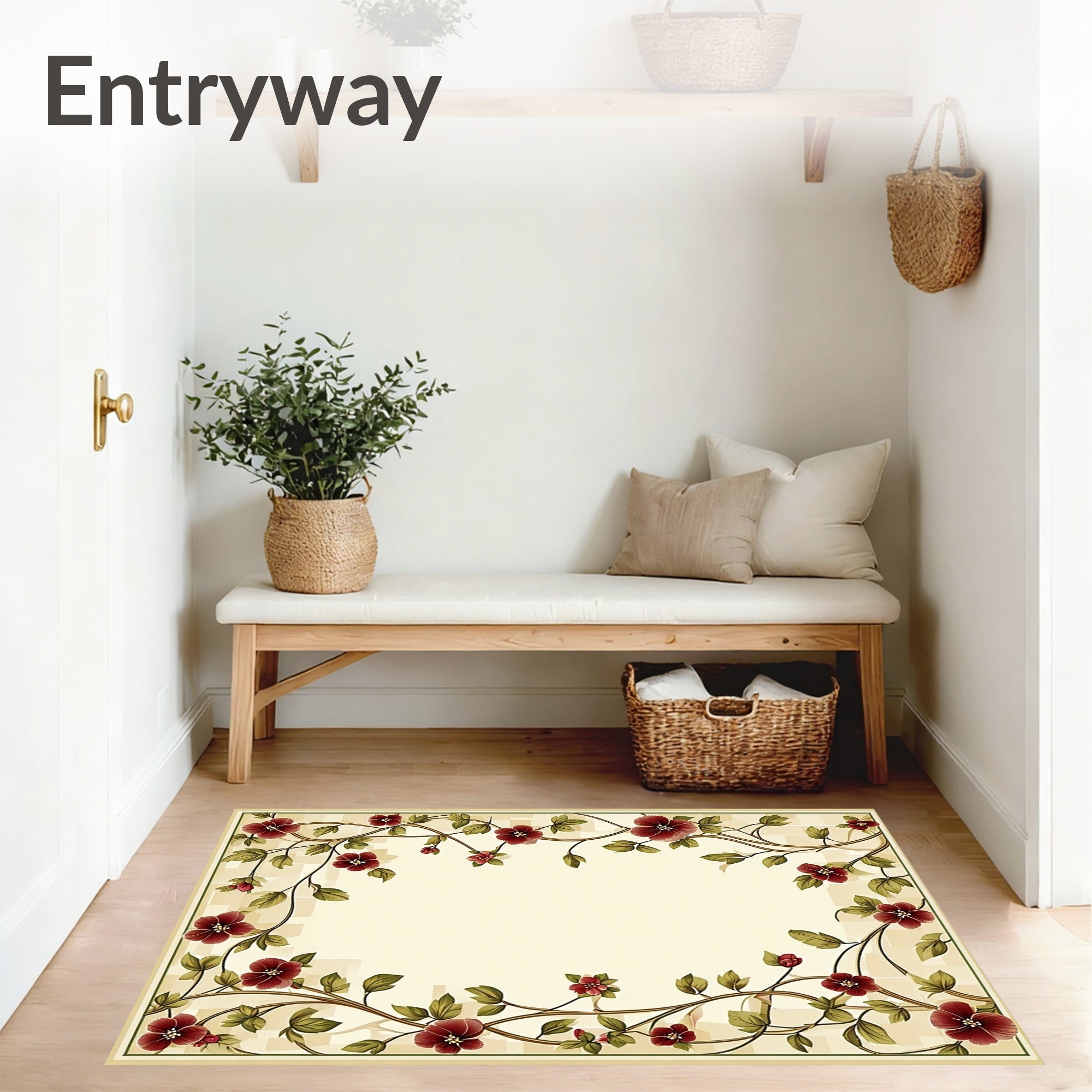 Flatwoven High Traffic Area Rug, Artisan Geo Flora with Rich Burgundy Olive and Beige Accents, Non Slip, Stain Resistant, Washable Area Rugs for Living Room, Bedroom (Beige) Overview: