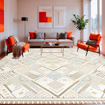 Ultra Soft Area Rug, Non Slip, Stain Resistant, Washable Area Rugs for Living Room, Bedroom, Artisan Geometric Area with Interlaced Diamond Shapes and Calming Neutrals(Beige) Overview:
