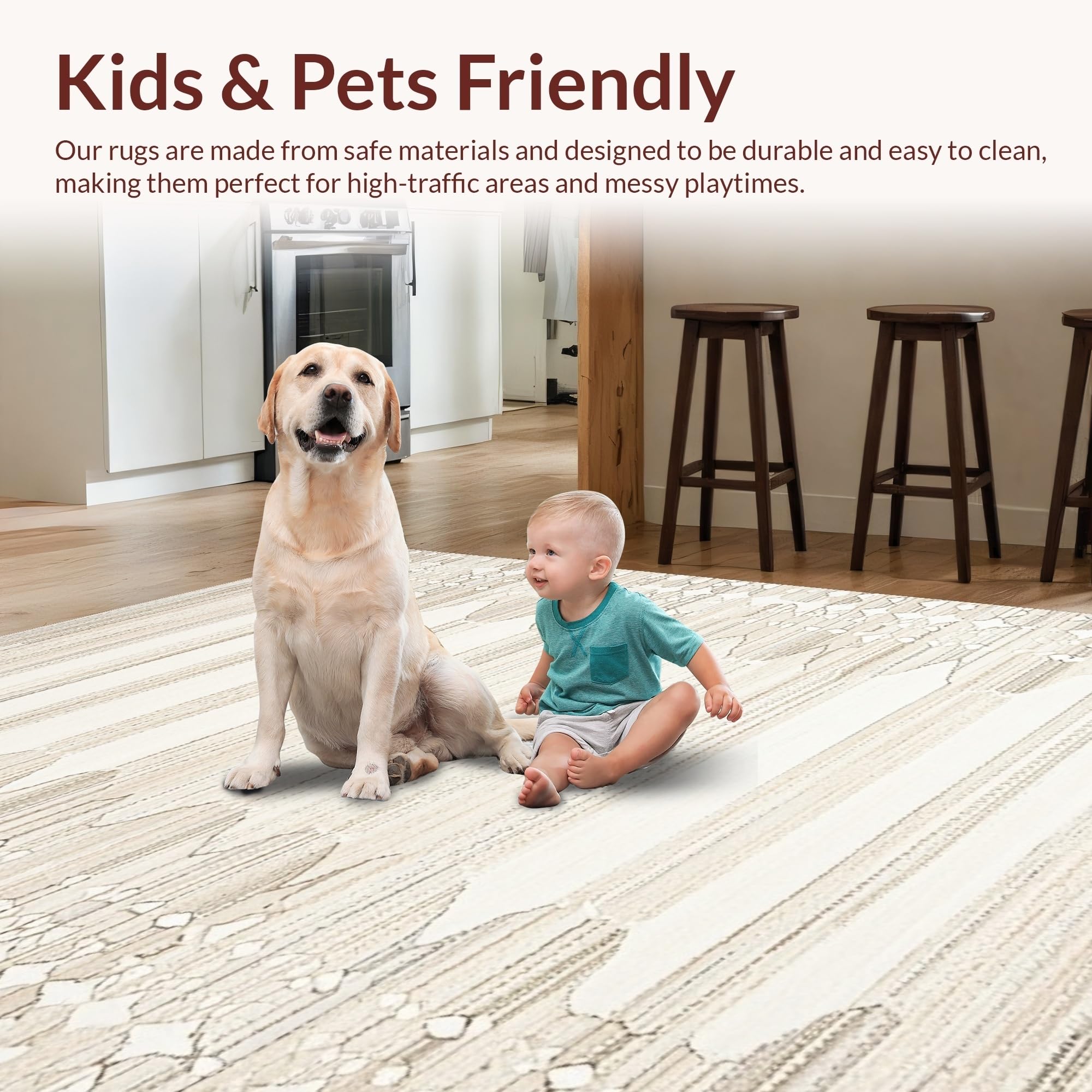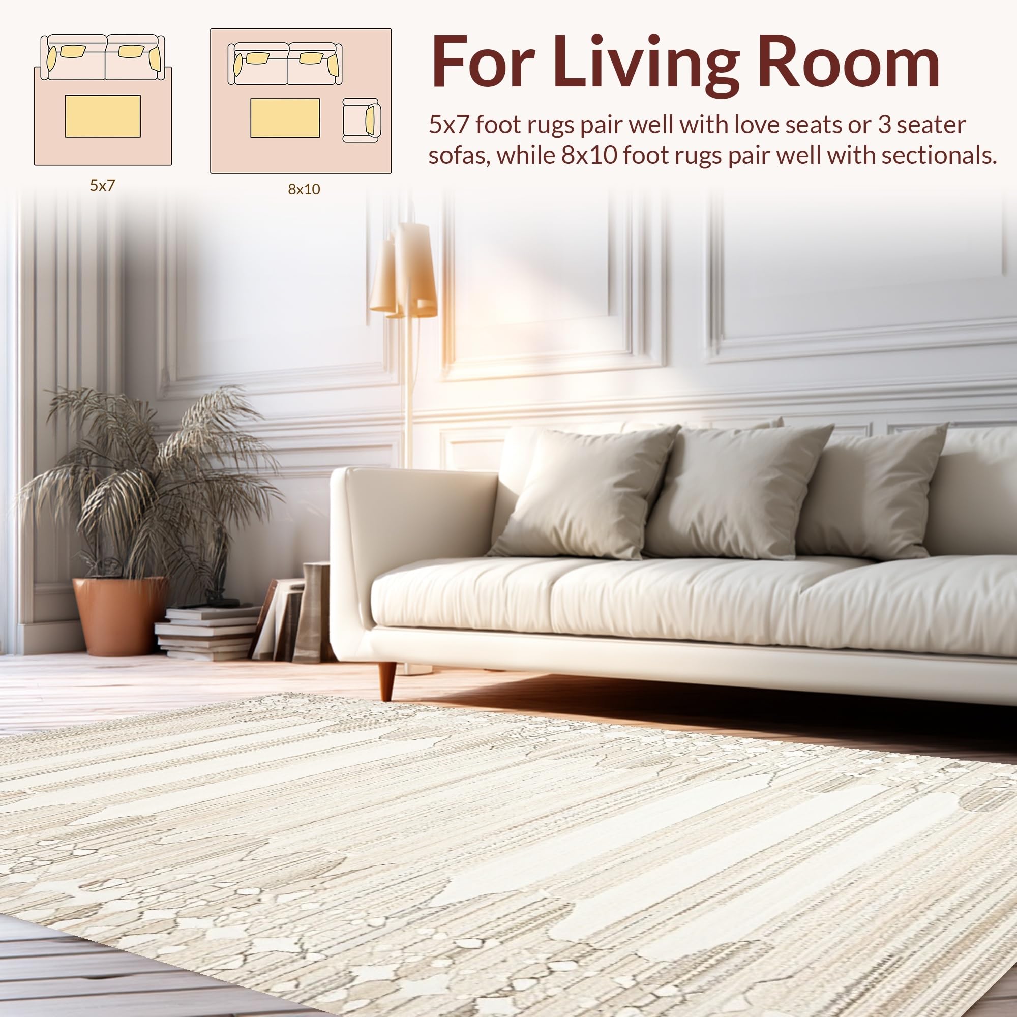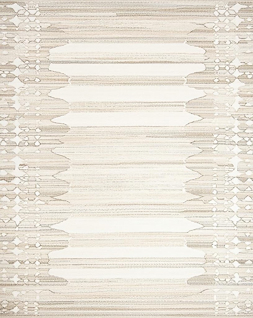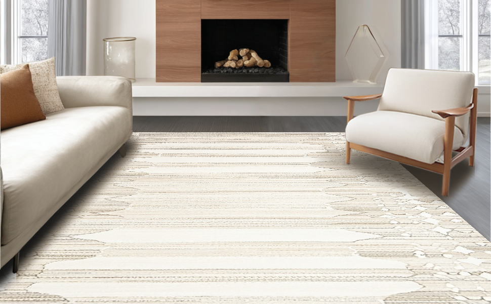 Ultra Soft Area Rug, Non Slip, Stain Resistant, Washable Area Rugs for Living Room, Bedroom, Artisan Handcrafted Organic Lines(Beige) Overview: