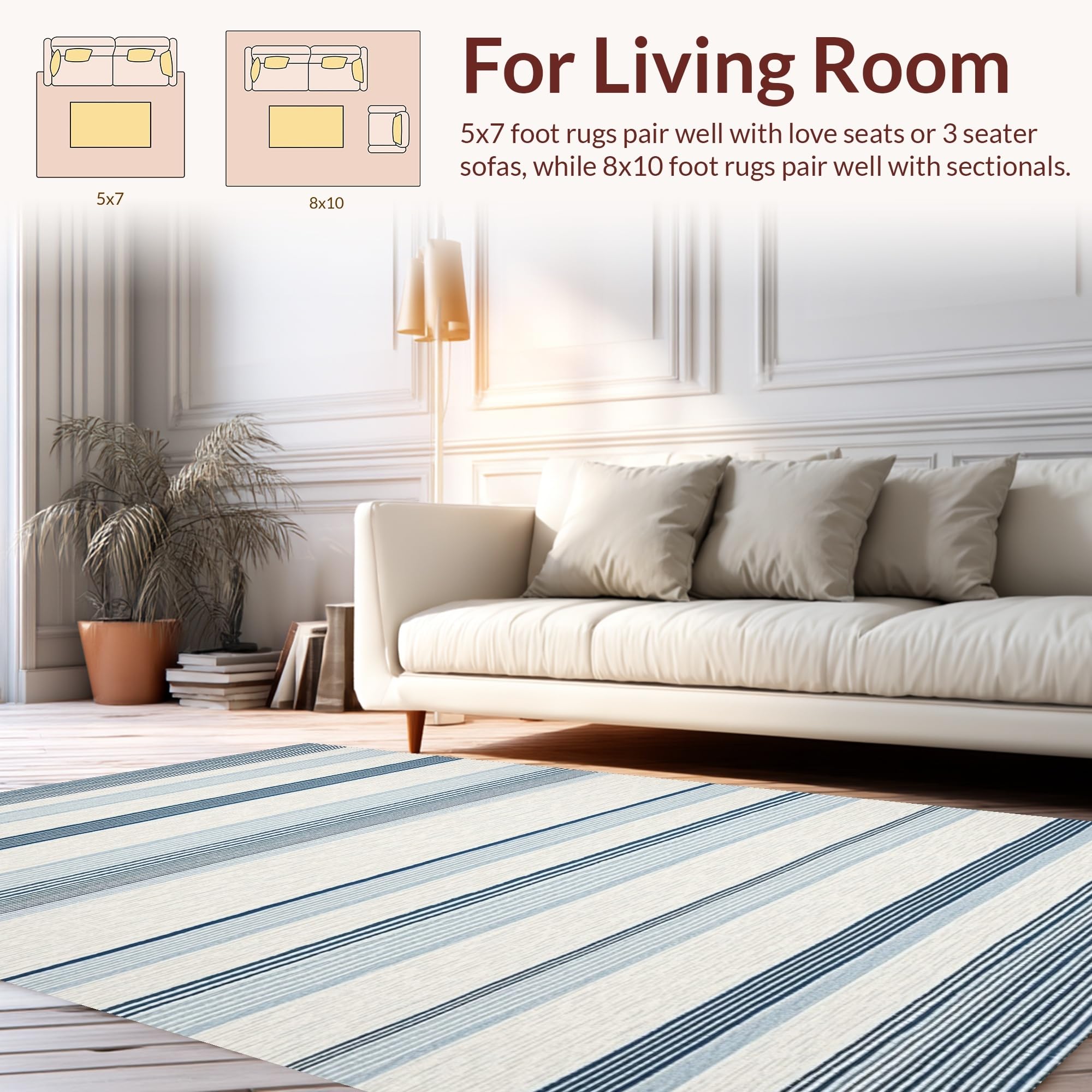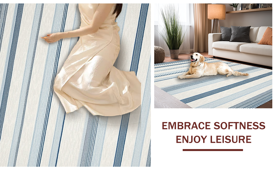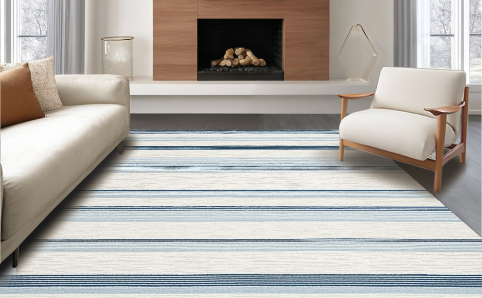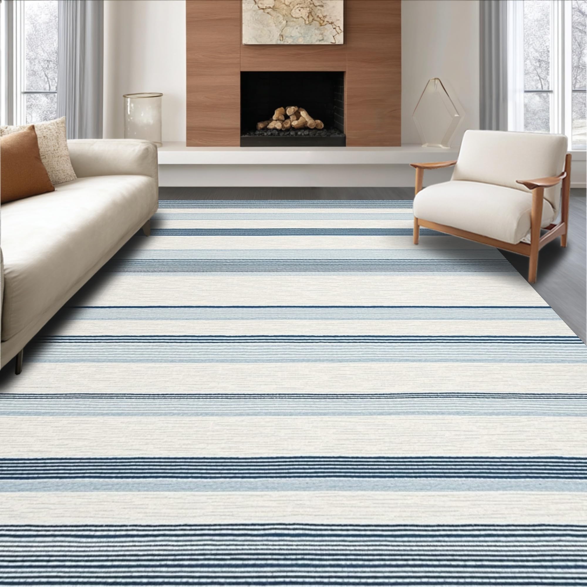 Ultra Soft Area Rug, Non Slip, Stain Resistant, Washable Area Rugs for Living Room, Bedroom, Artisan Handmade Striped Elegance(Blue) Overview: