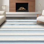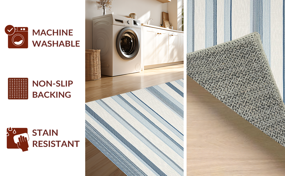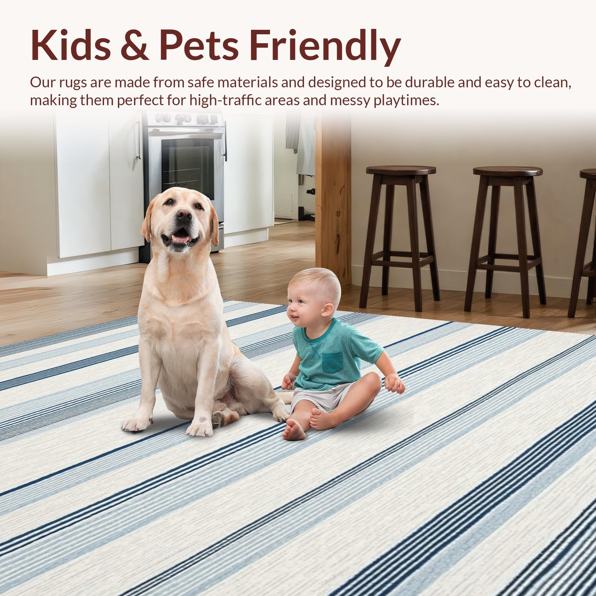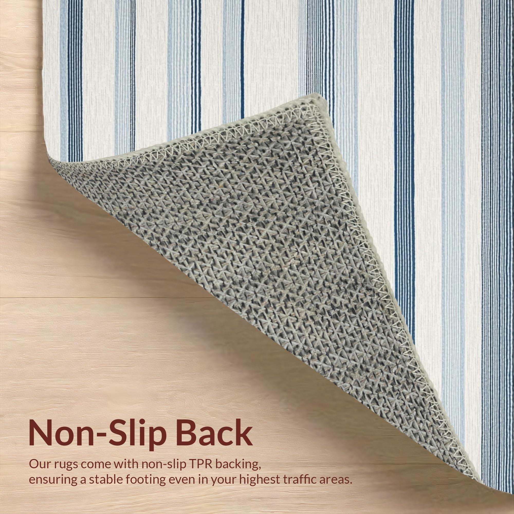 Ultra Soft Area Rug, Non Slip, Stain Resistant, Washable Area Rugs for Living Room, Bedroom, Artisan Handmade Striped Elegance(Blue) Overview: