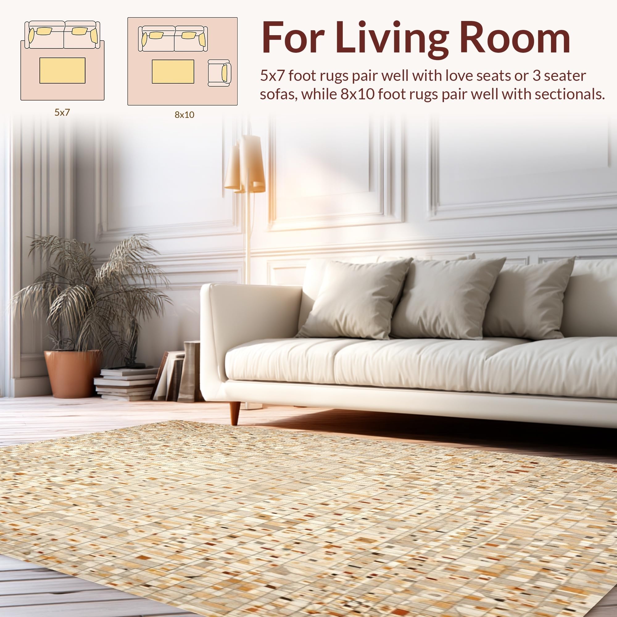 Ultra Soft Area Rug, Non Slip, Stain Resistant, Washable Area Rugs for Living Room, Bedroom, Artisan Inspired Area with Beige and Brown Abstract Gridline Design(Beige) Overview: