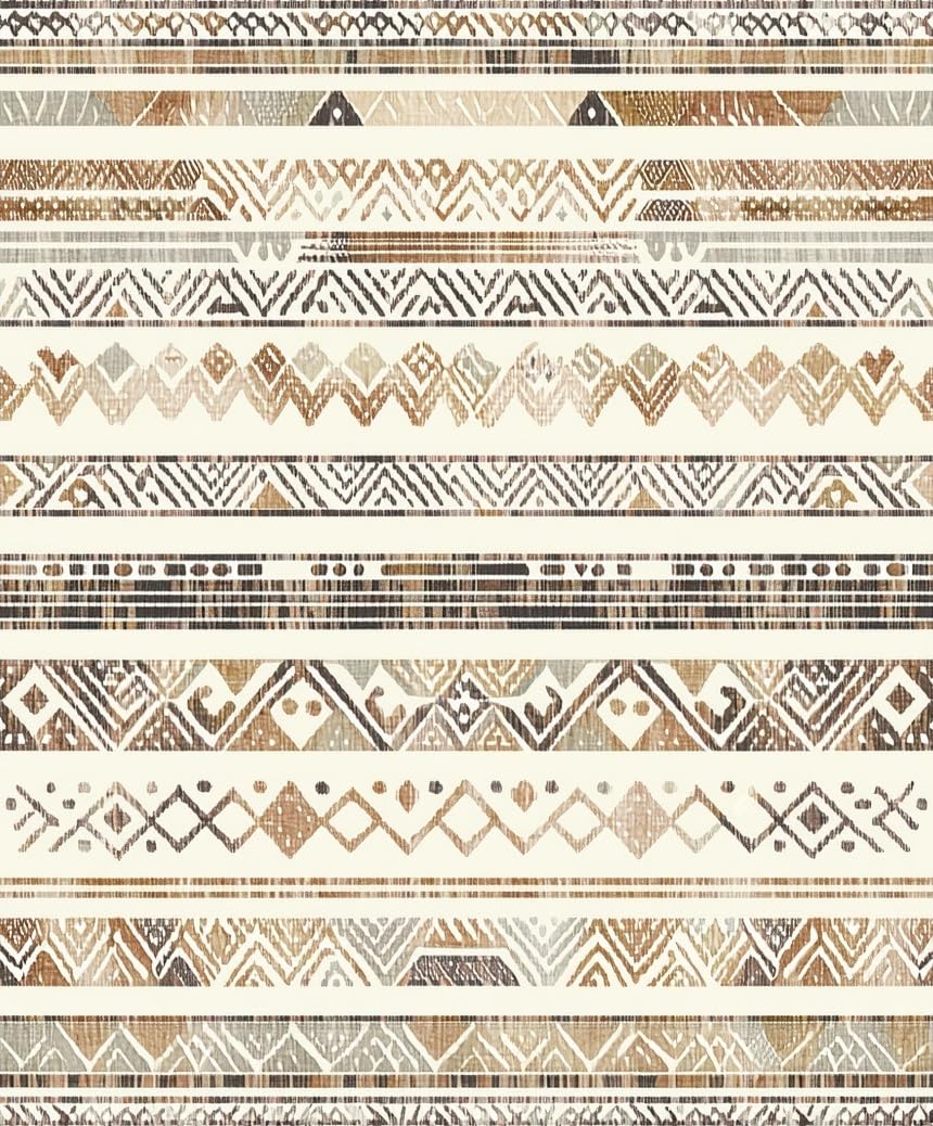Artisan Inspired Tan Area Rug with Layered Geometric Bands and Boho Line Art(Beige)