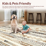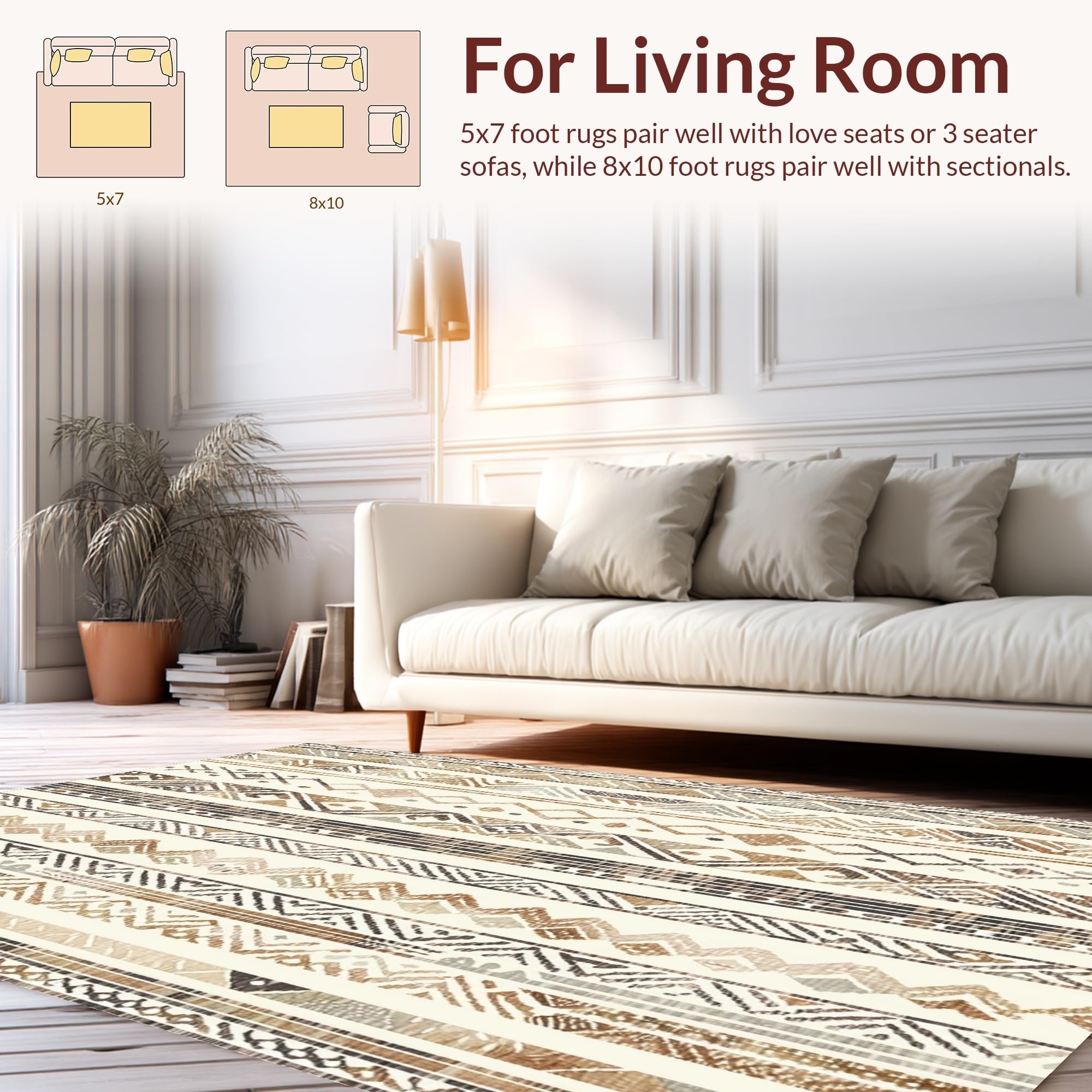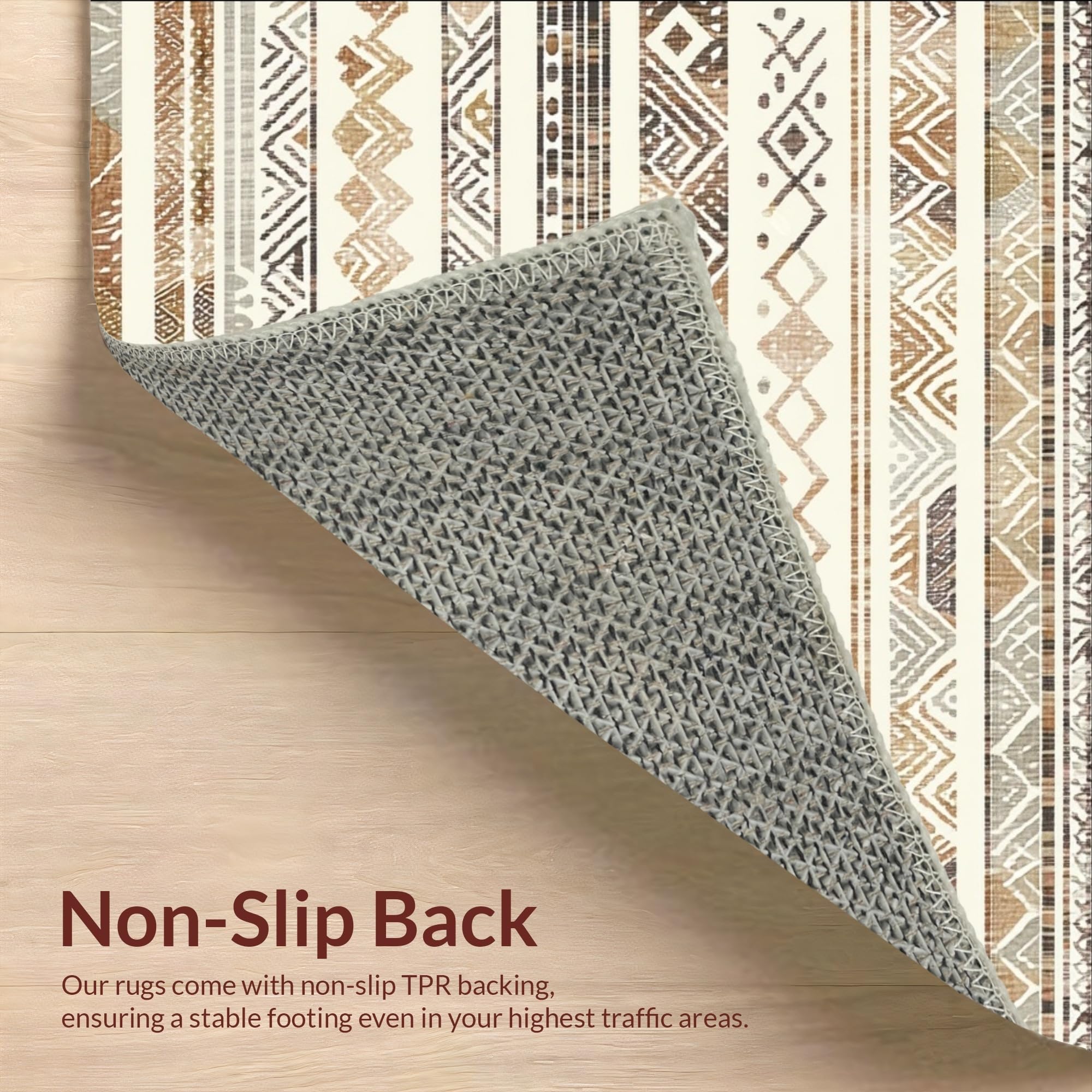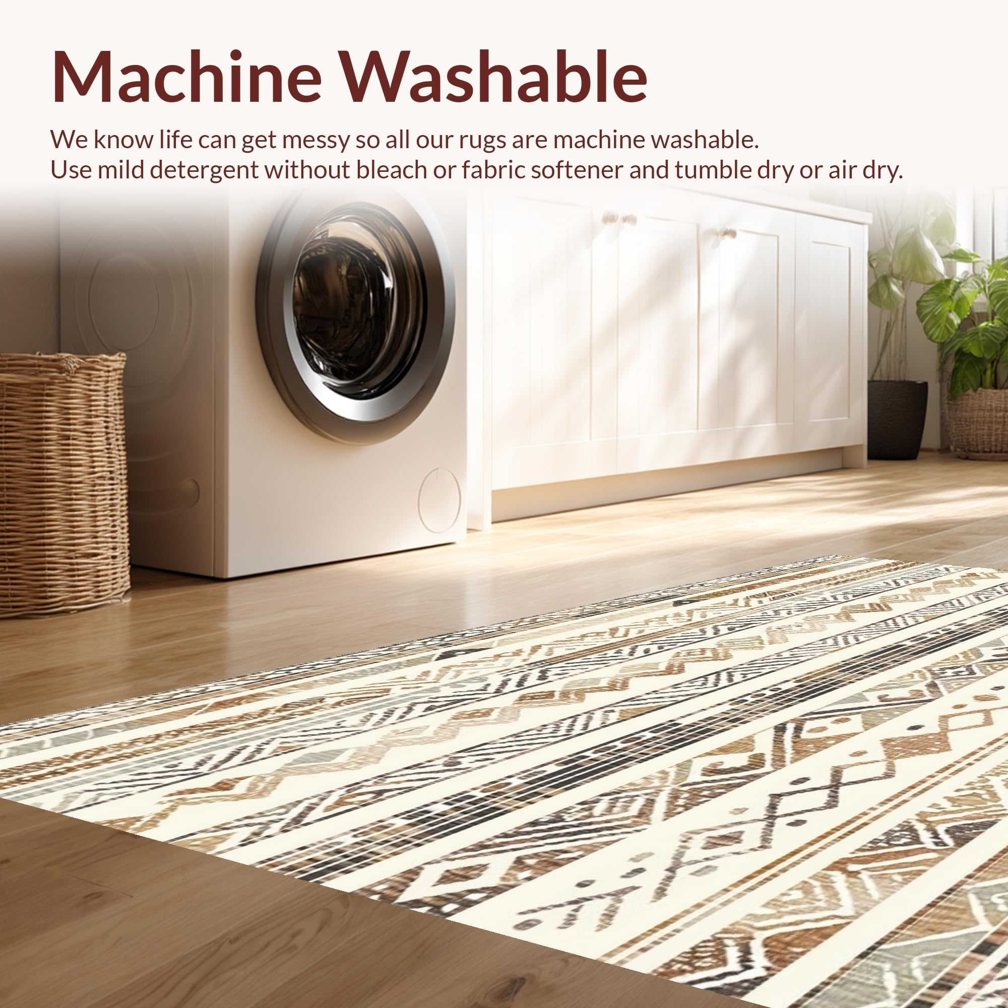 Ultra Soft Area Rug, Non Slip, Stain Resistant, Washable Area Rugs for Living Room, Bedroom, Artisan Inspired Tan Area Rug with Layered Geometric Bands and Boho Line Art(Beige) Overview: