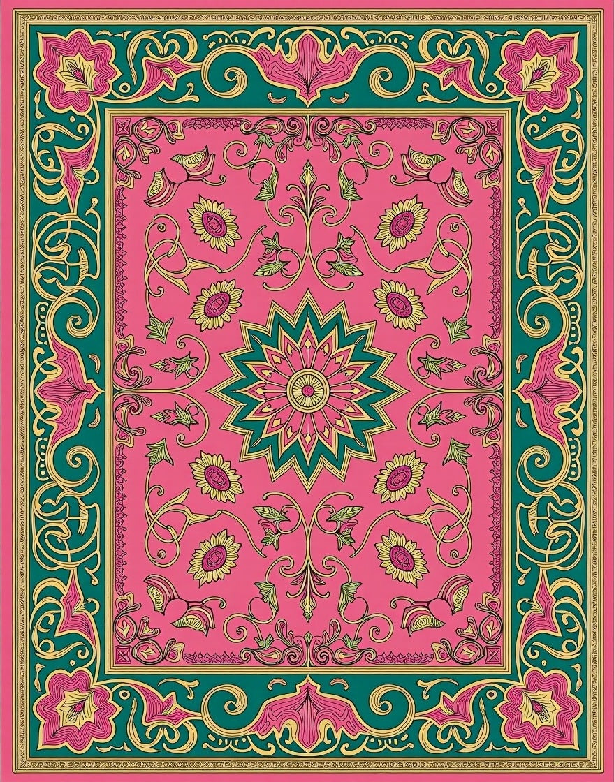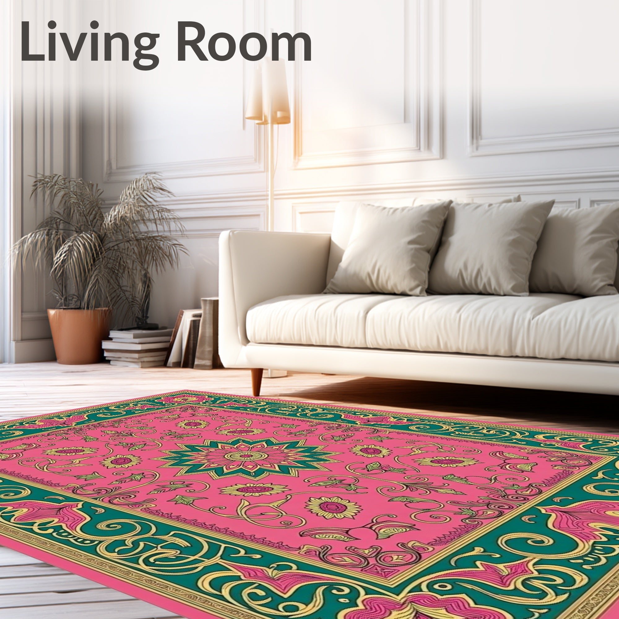 Flatwoven High Traffic Area Rug, Artisan Latticework with Interlocking Florals and Paisley Swirls, Non Slip, Stain Resistant, Washable Area Rugs for Living Room, Bedroom (Pink) Overview:
