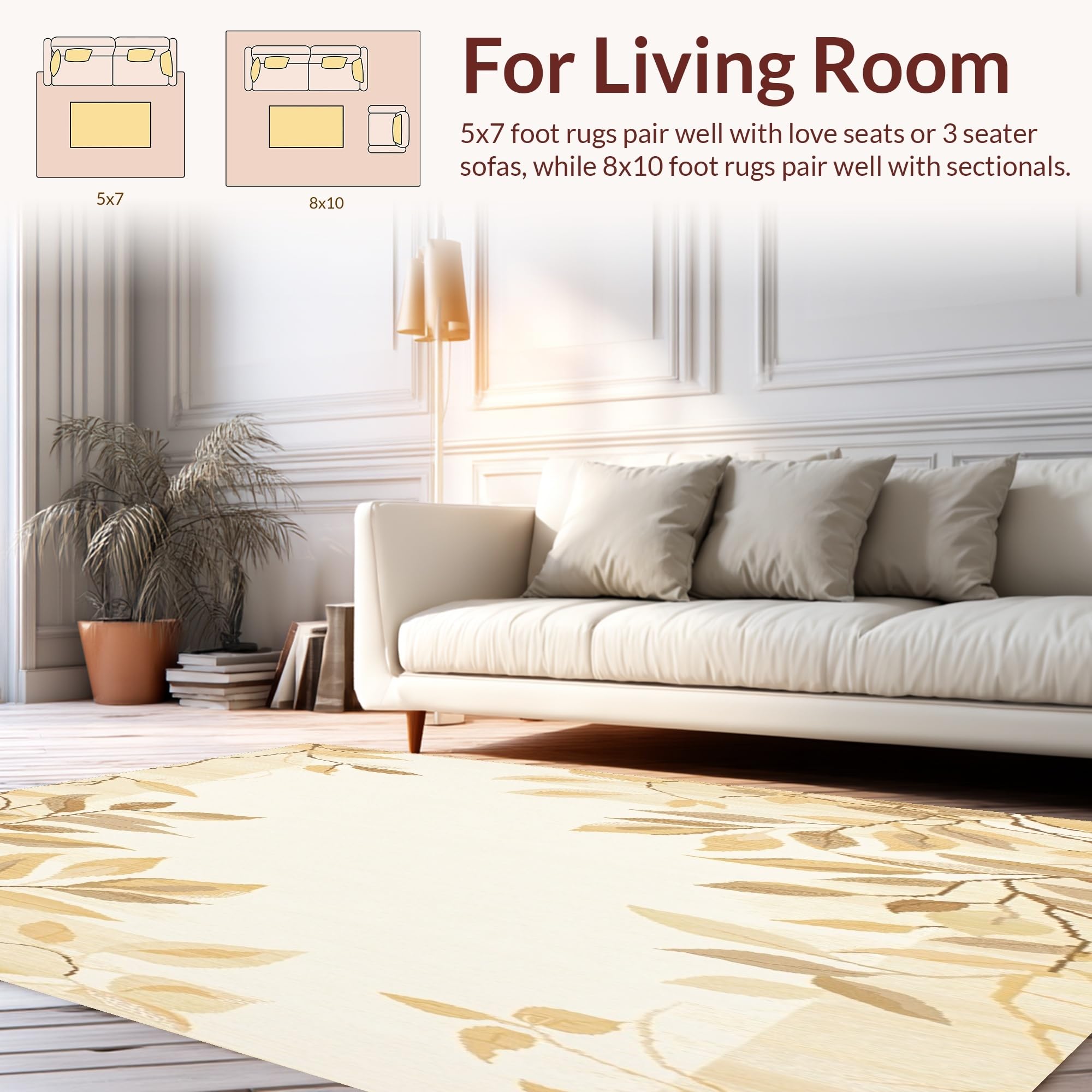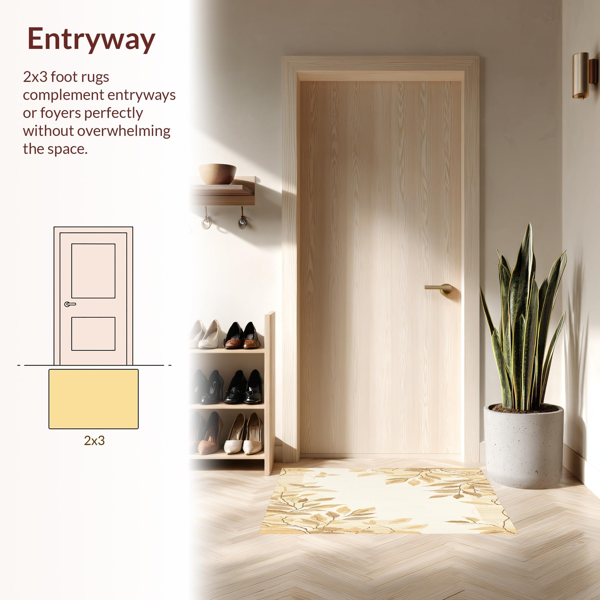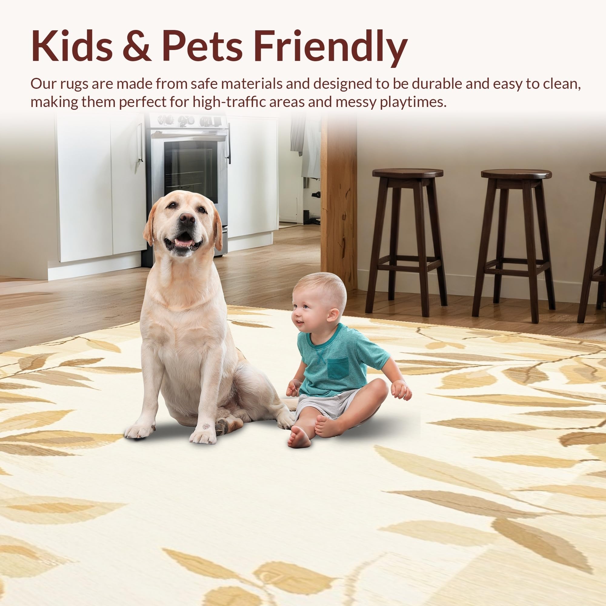 Ultra Soft Area Rug, Non Slip, Stain Resistant, Washable Area Rugs for Living Room, Bedroom, Artisan Leaf Motif Area Non Slip Decorative Duo(Beige) Overview: