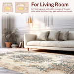 Ultra Soft Area Rug, Non Slip, Stain Resistant, Washable Area Rugs for Living Room, Bedroom, Artisan Medallion Area with a Distressed Symmetrical Boho Design(Beige) Overview: