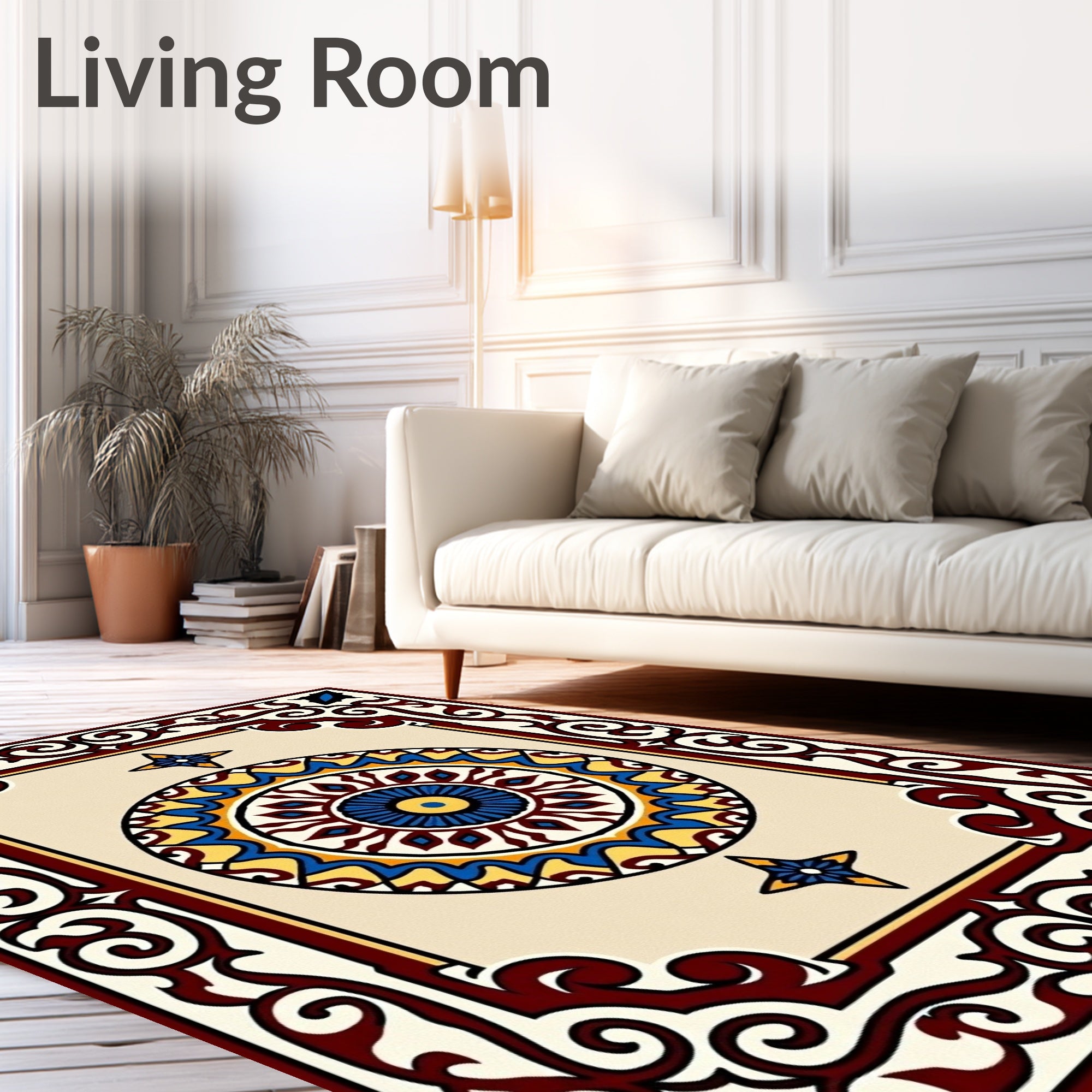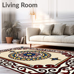 Ultra Soft Area Rug, Non Slip, Stain Resistant, Washable Area Rugs for Living Room, Bedroom, Artisan Mosaic Medallion Design(Beige) Overview:
