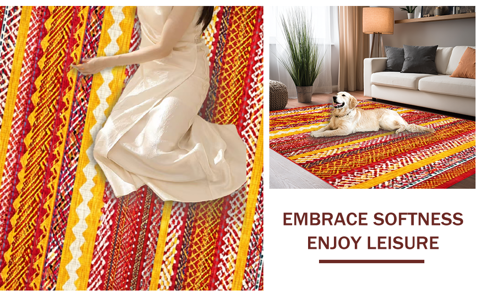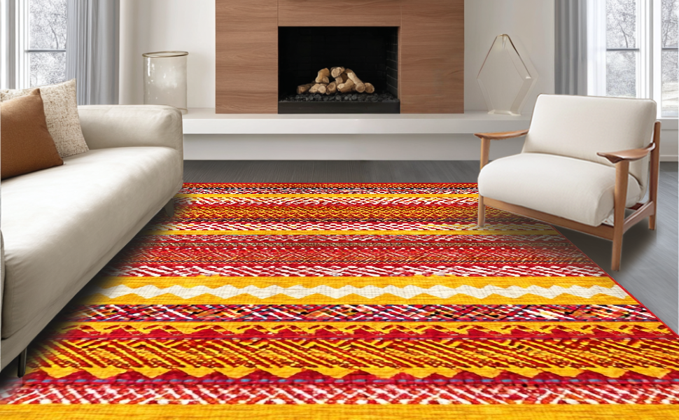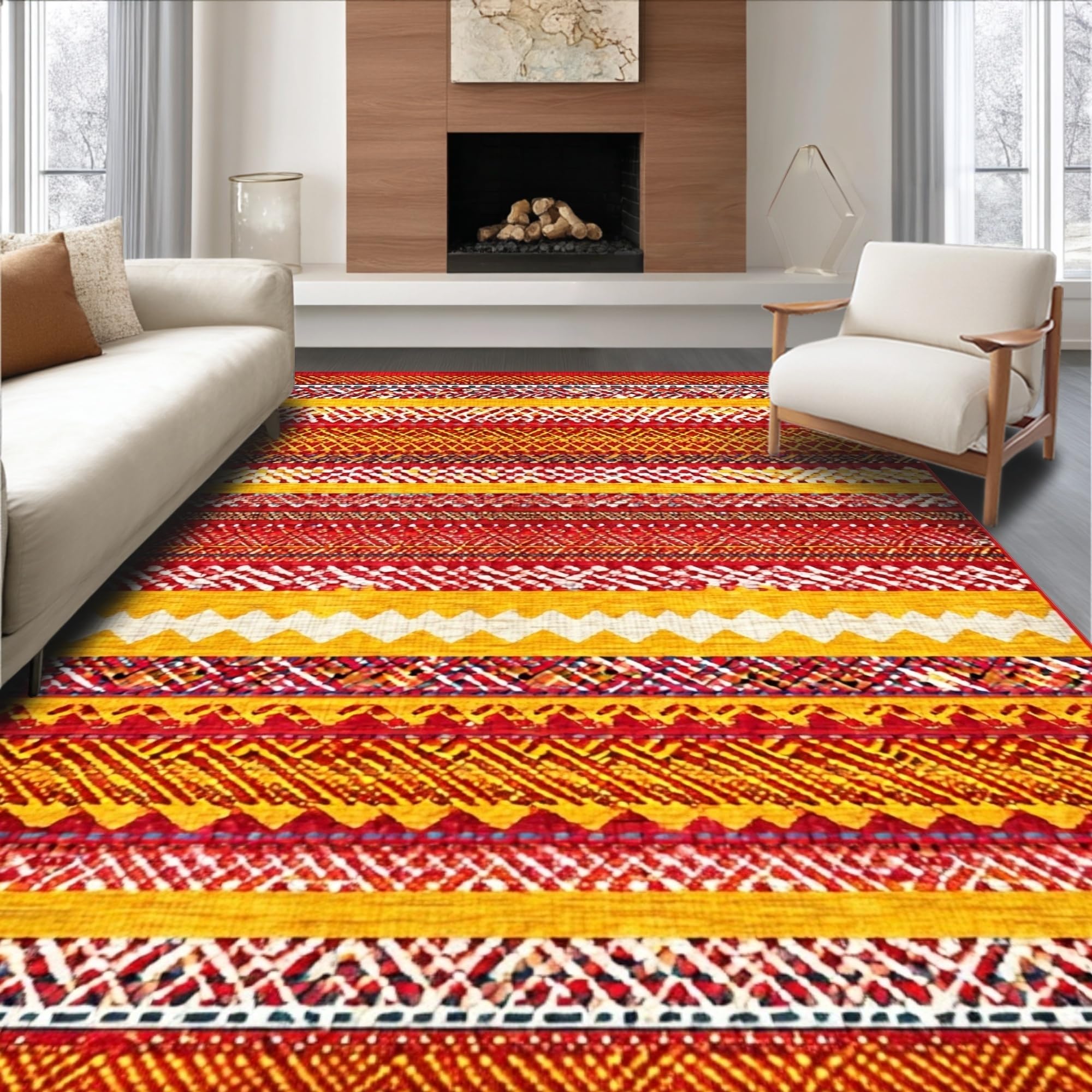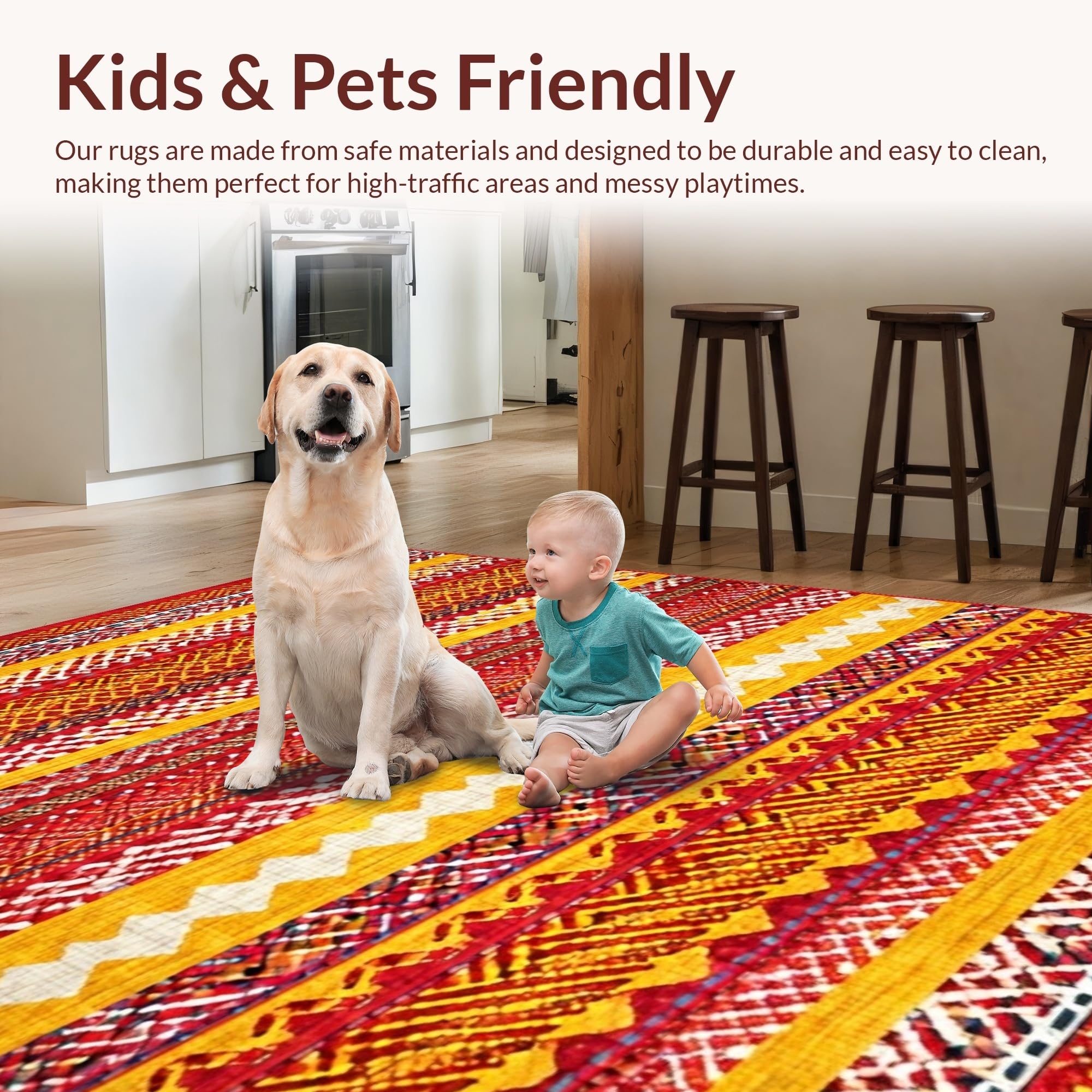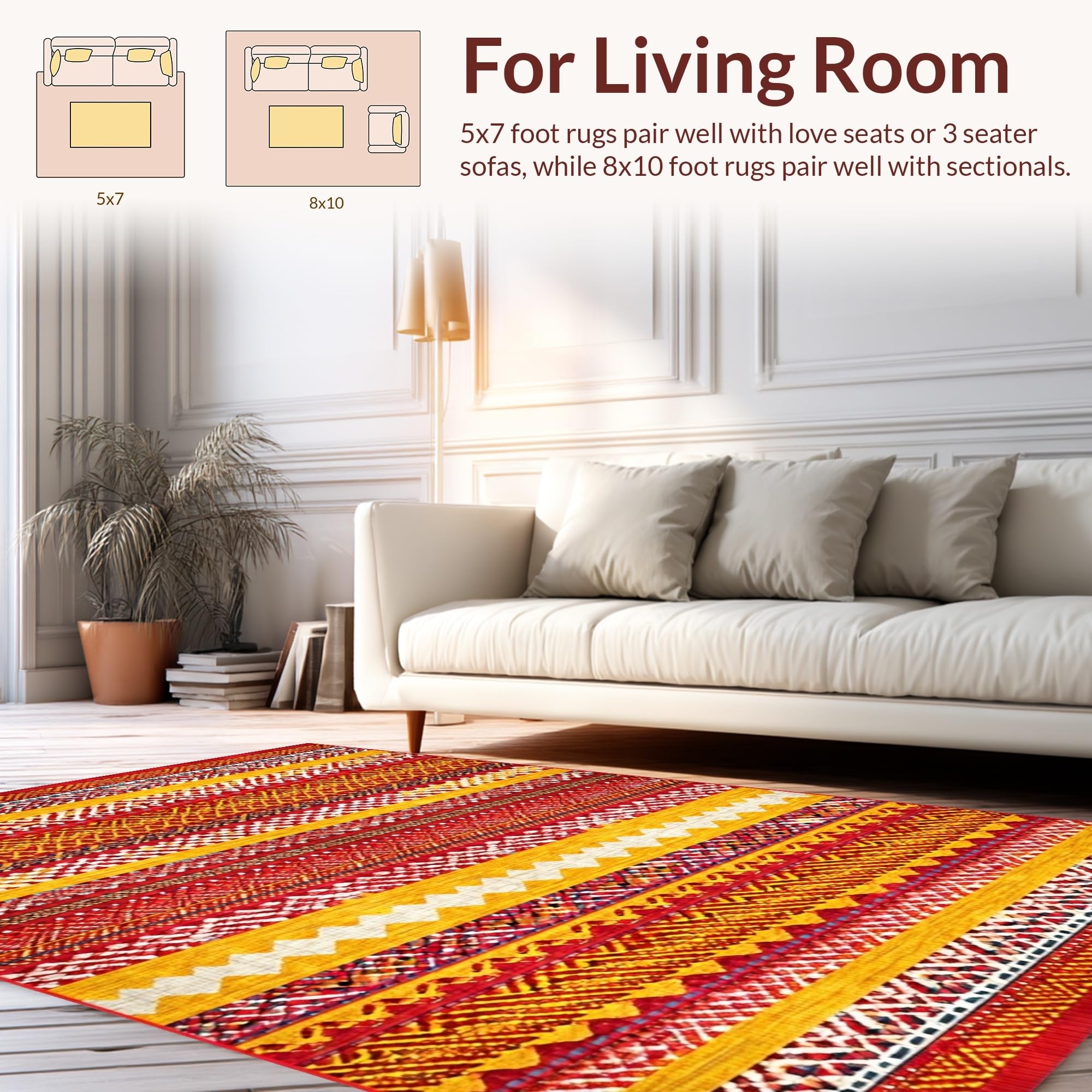 Ultra Soft Area Rug, Non Slip, Stain Resistant, Washable Area Rugs for Living Room, Bedroom, Artisan Multihued Decorative Piece(Red) Overview: