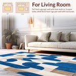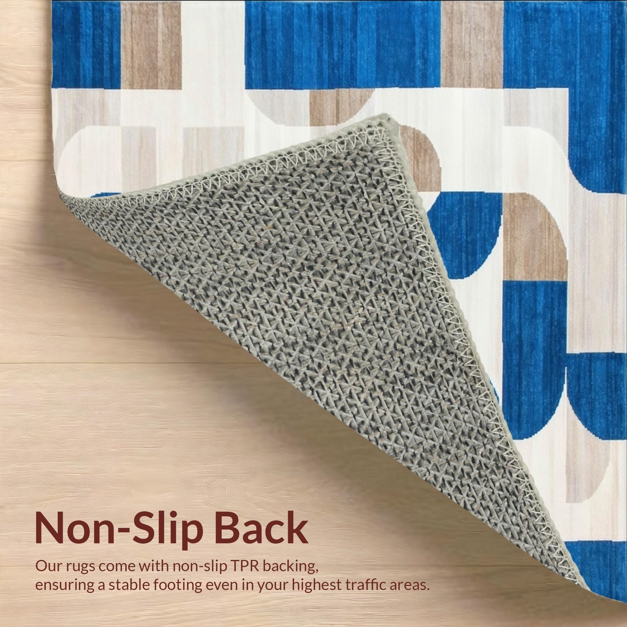 Ultra Soft Area Rug, Non Slip, Stain Resistant, Washable Area Rugs for Living Room, Bedroom, Artisan Revival Collection Geometric Interlock Beige Blue(Blue) Overview: