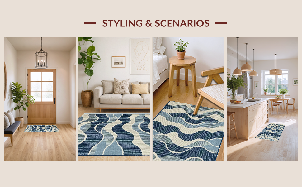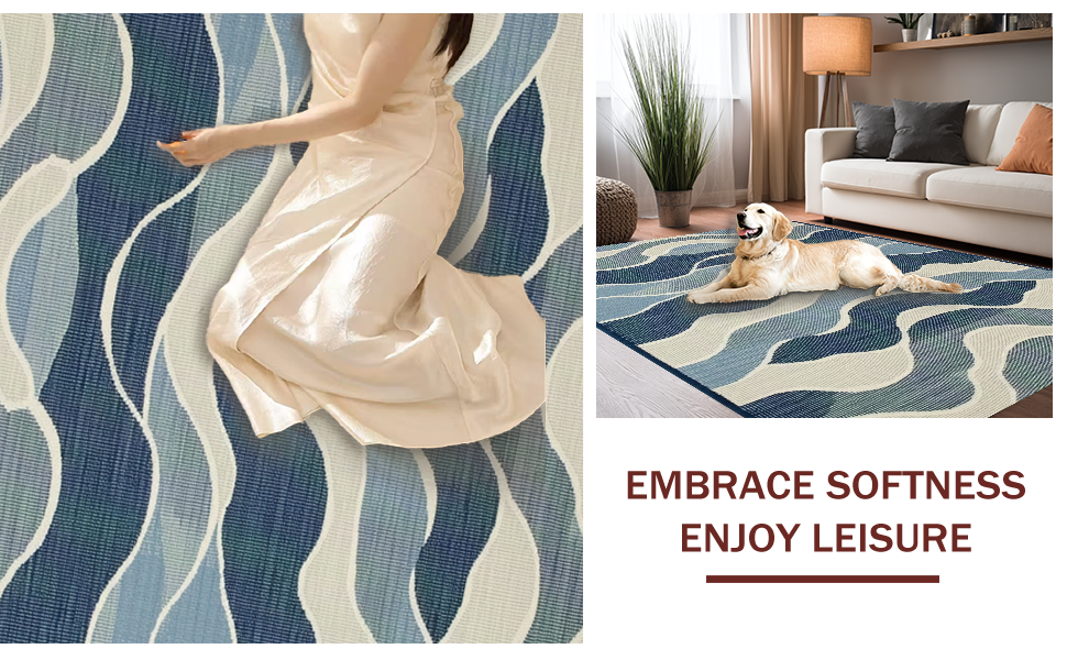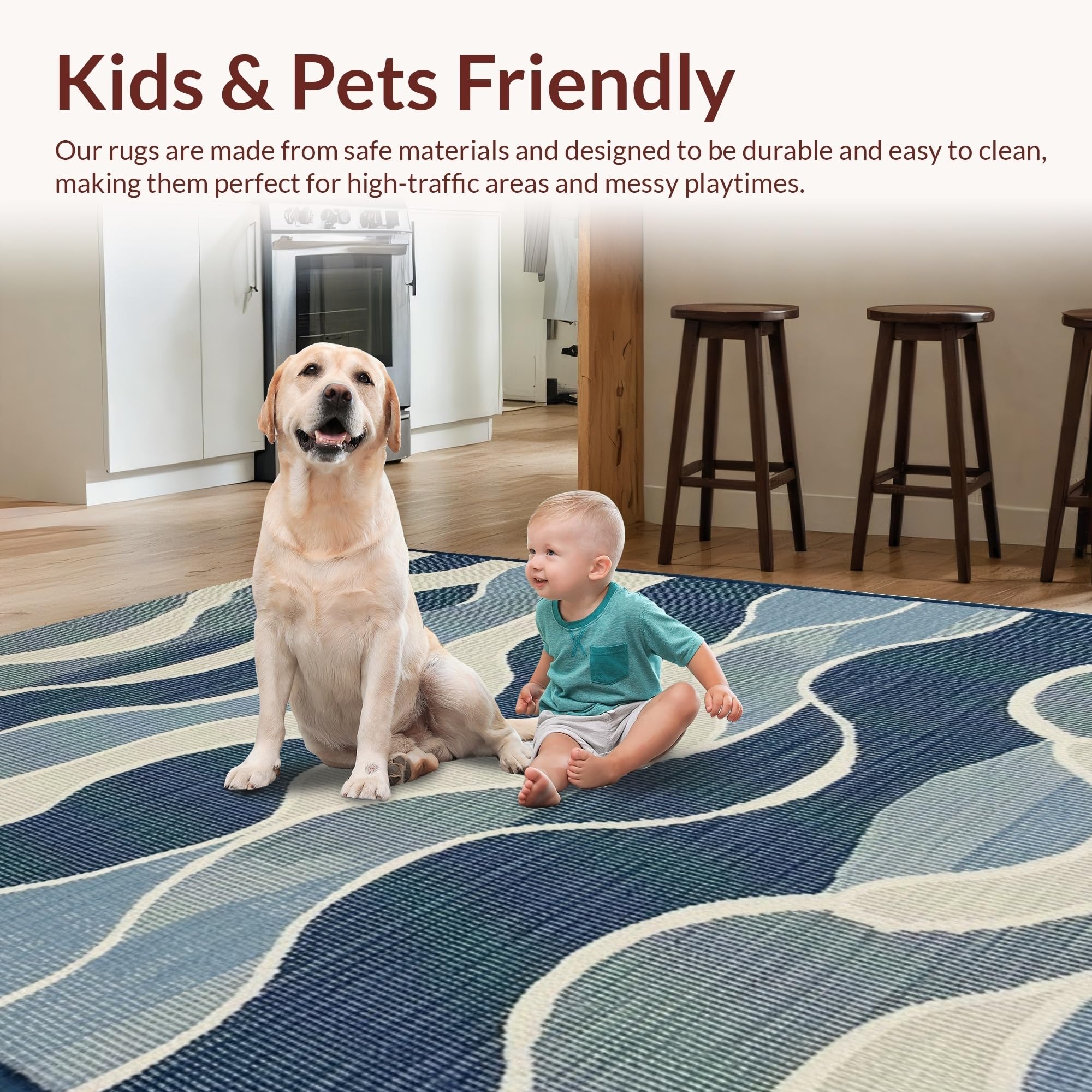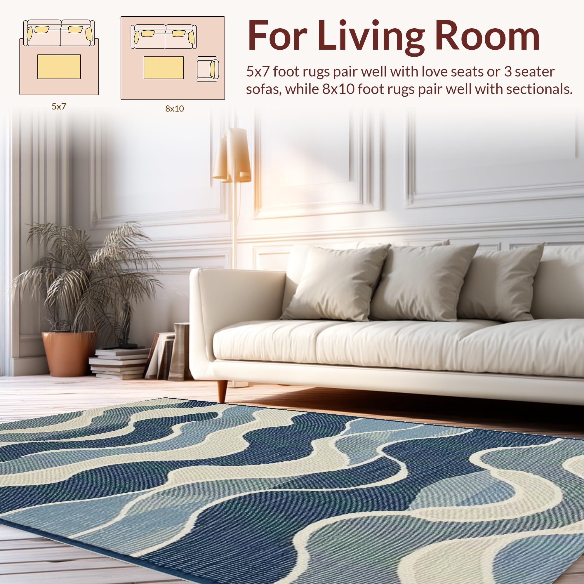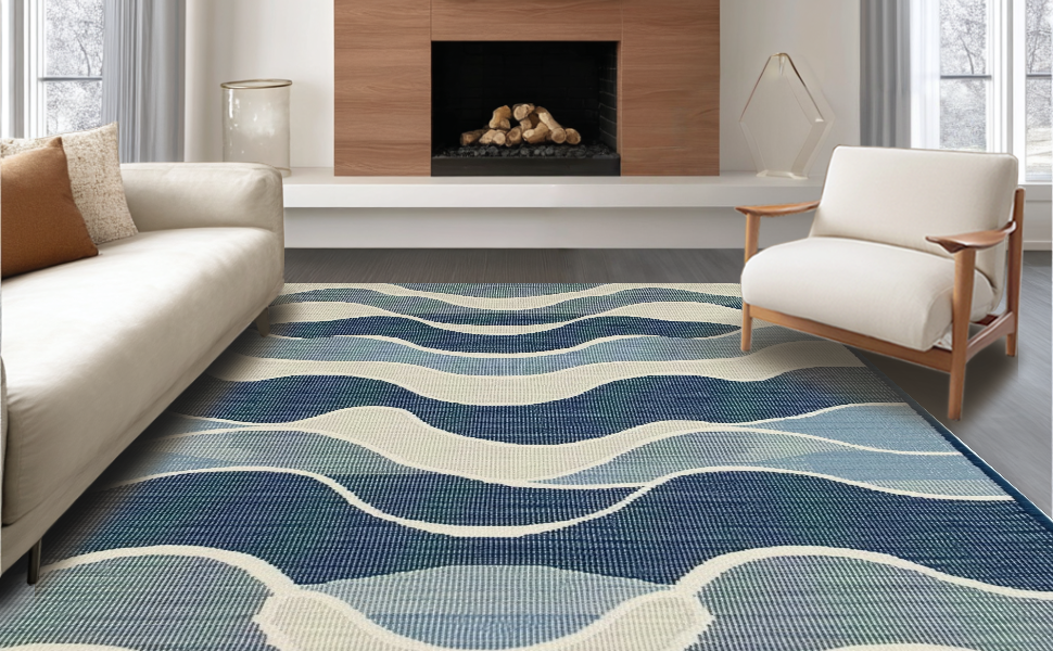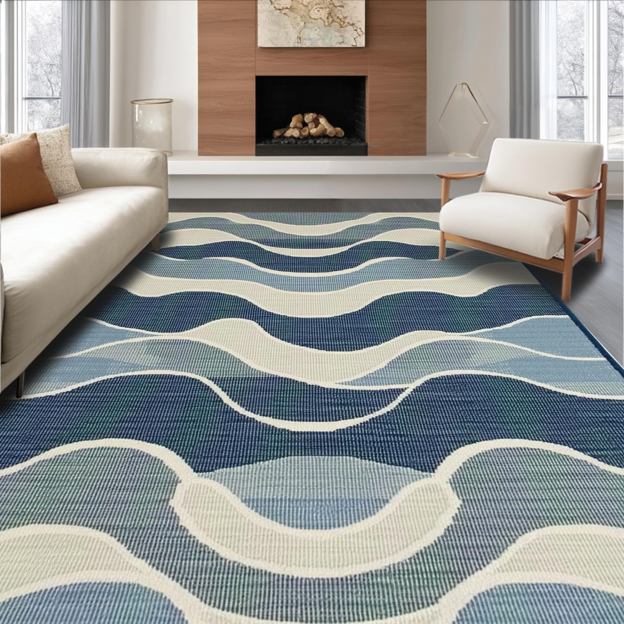 Ultra Soft Area Rug, Non Slip, Stain Resistant, Washable Area Rugs for Living Room, Bedroom, Artisan Scalloped Oceanic Palette(Blue) Overview: