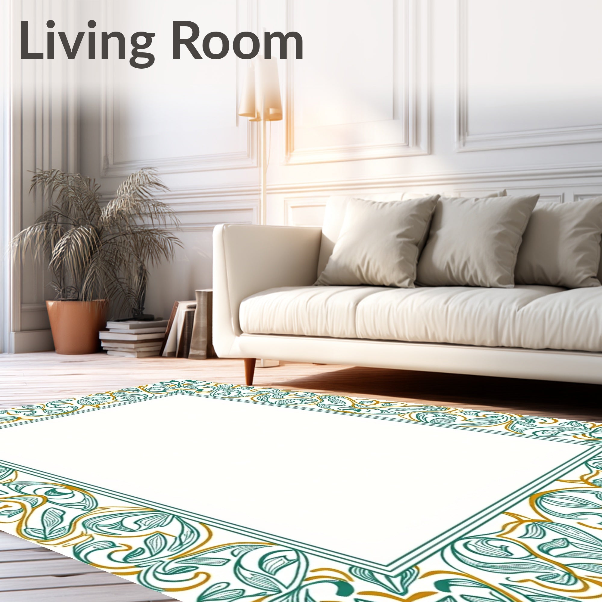 Ultra Soft Area Rug, Non Slip, Stain Resistant, Washable Area Rugs for Living Room, Bedroom, Artisan Scrollwork Interlocking Arabesque with Leaves(Green) Overview: