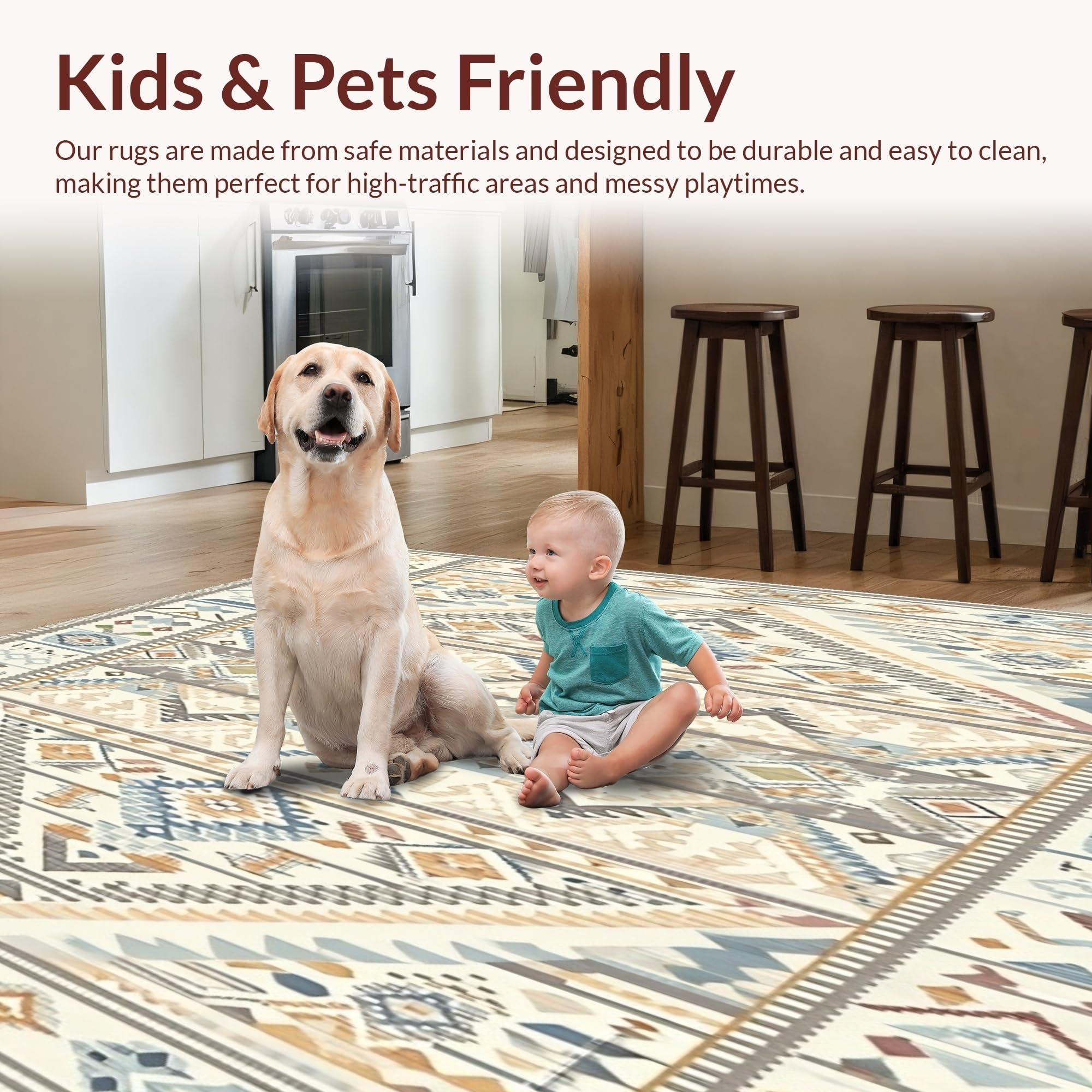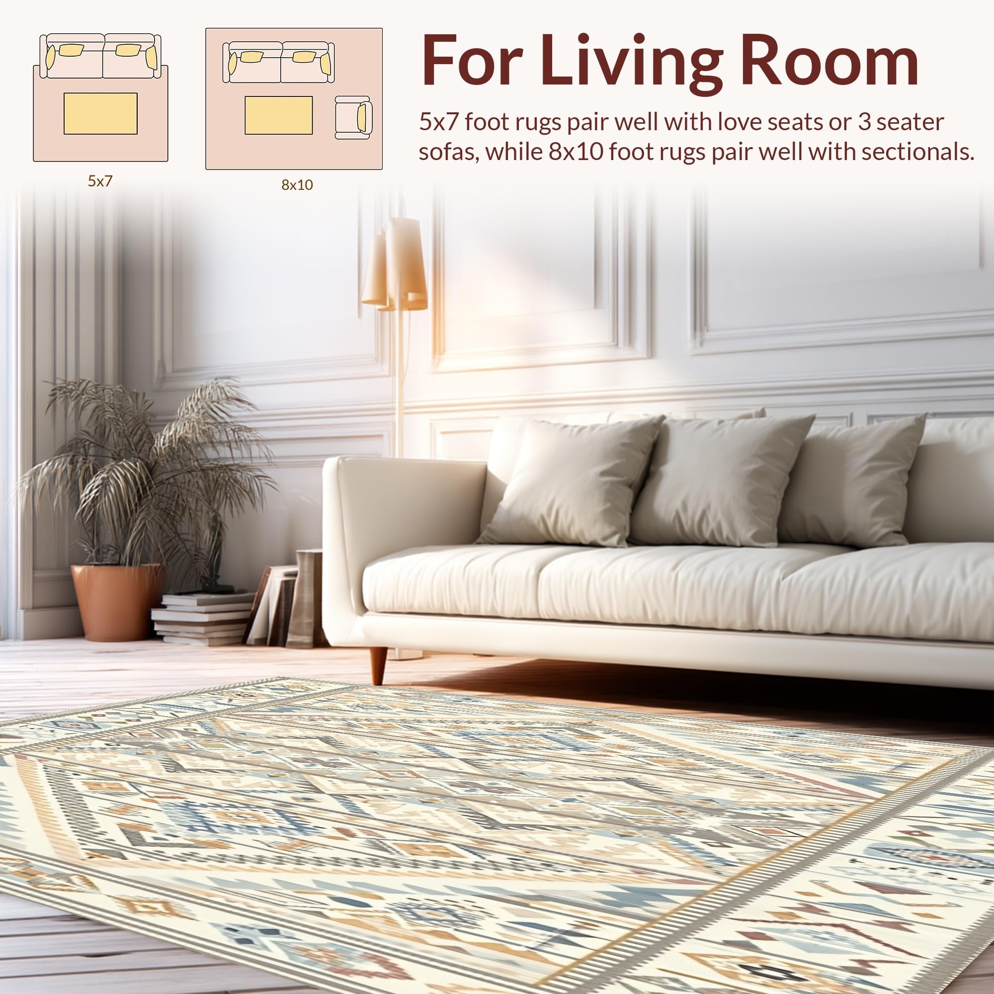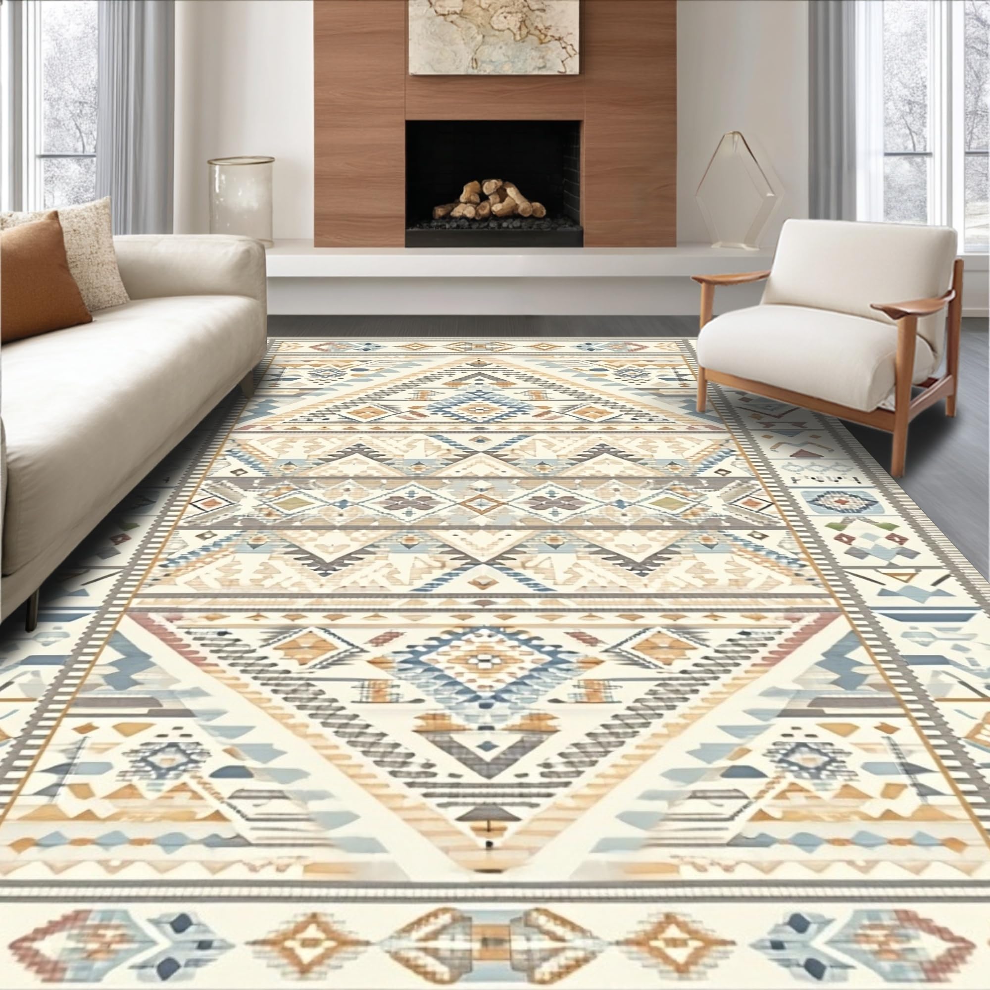 Ultra Soft Area Rug, Non Slip, Stain Resistant, Washable Area Rugs for Living Room, Bedroom, Artisan Tribal Medallion Area Showcasing Textured Layered Diamonds(Beige) Overview: