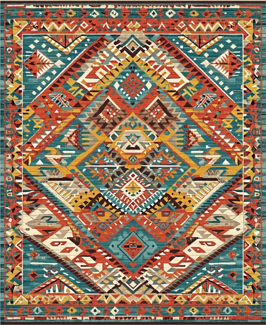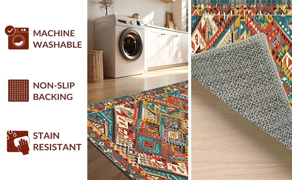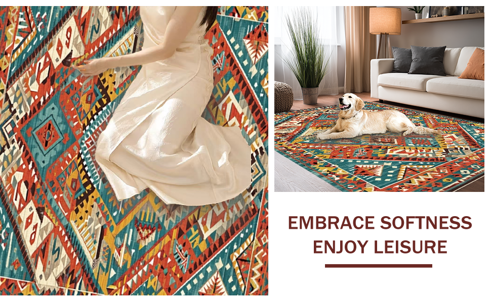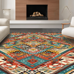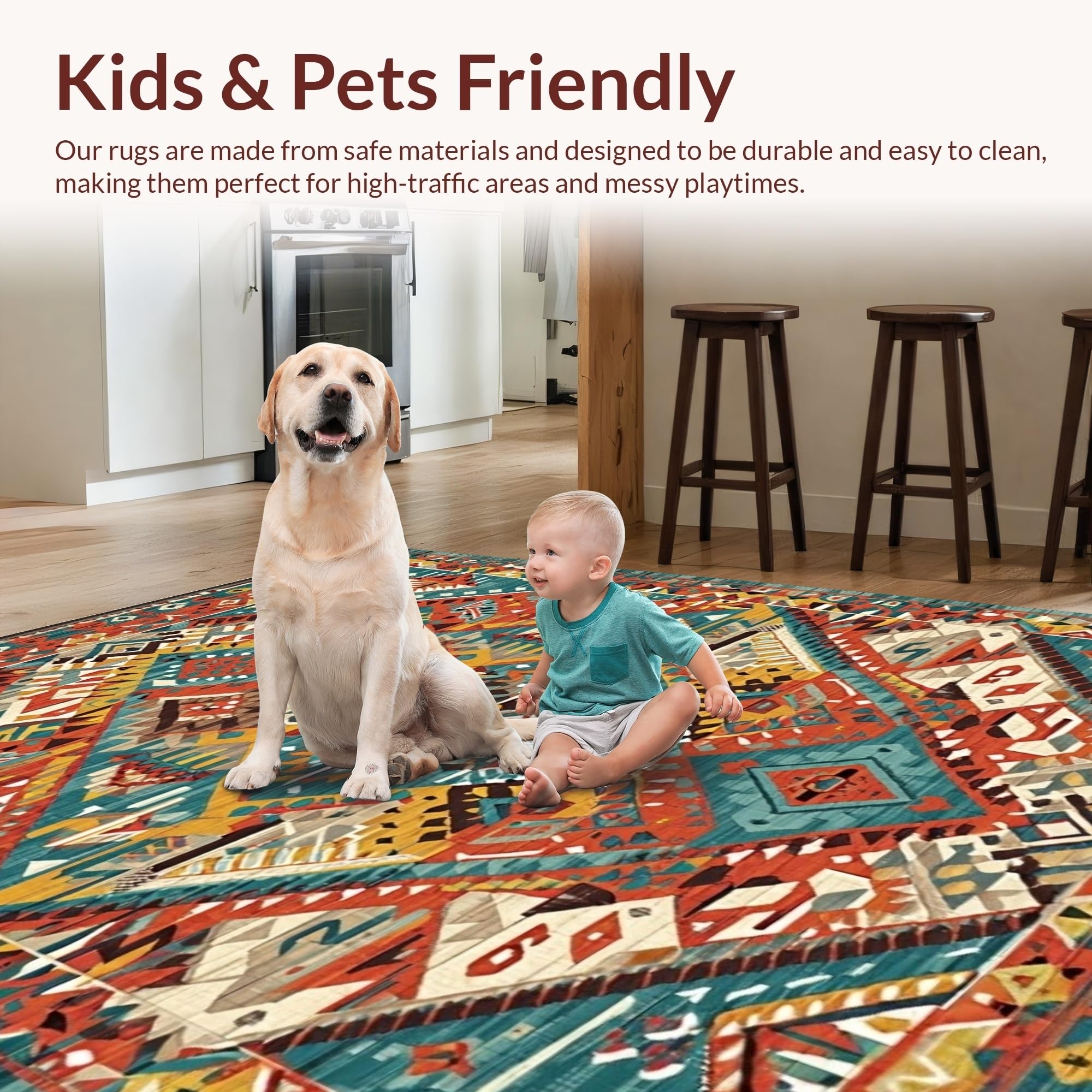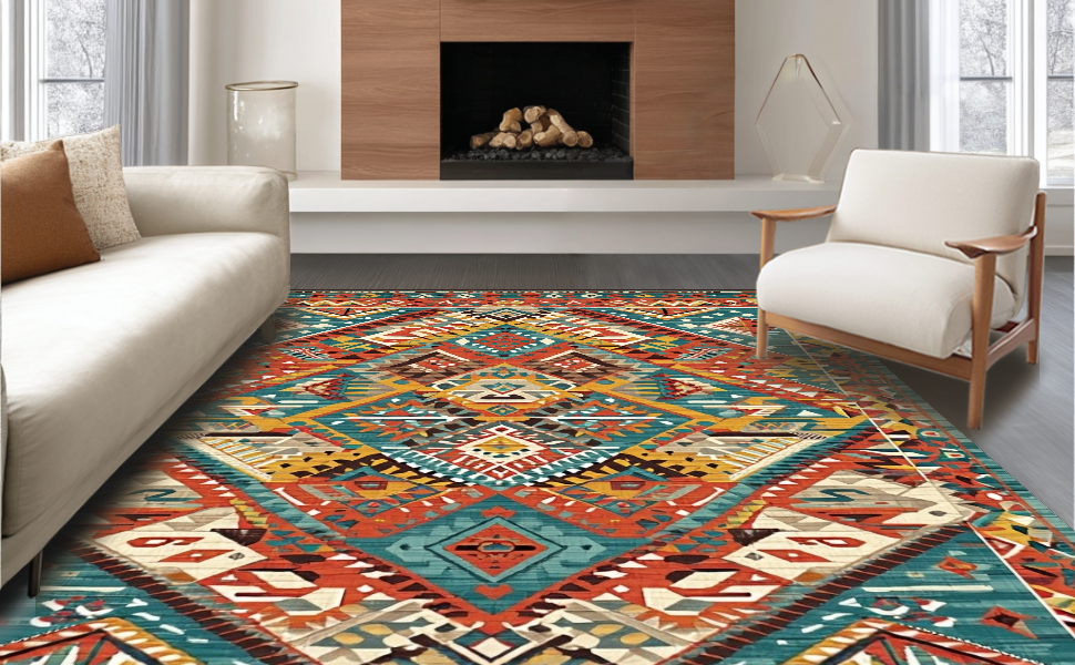 Ultra Soft Area Rug, Non Slip, Stain Resistant, Washable Area Rugs for Living Room, Bedroom, Artisan Tribal Print with Rich Hues(Orange) Overview: