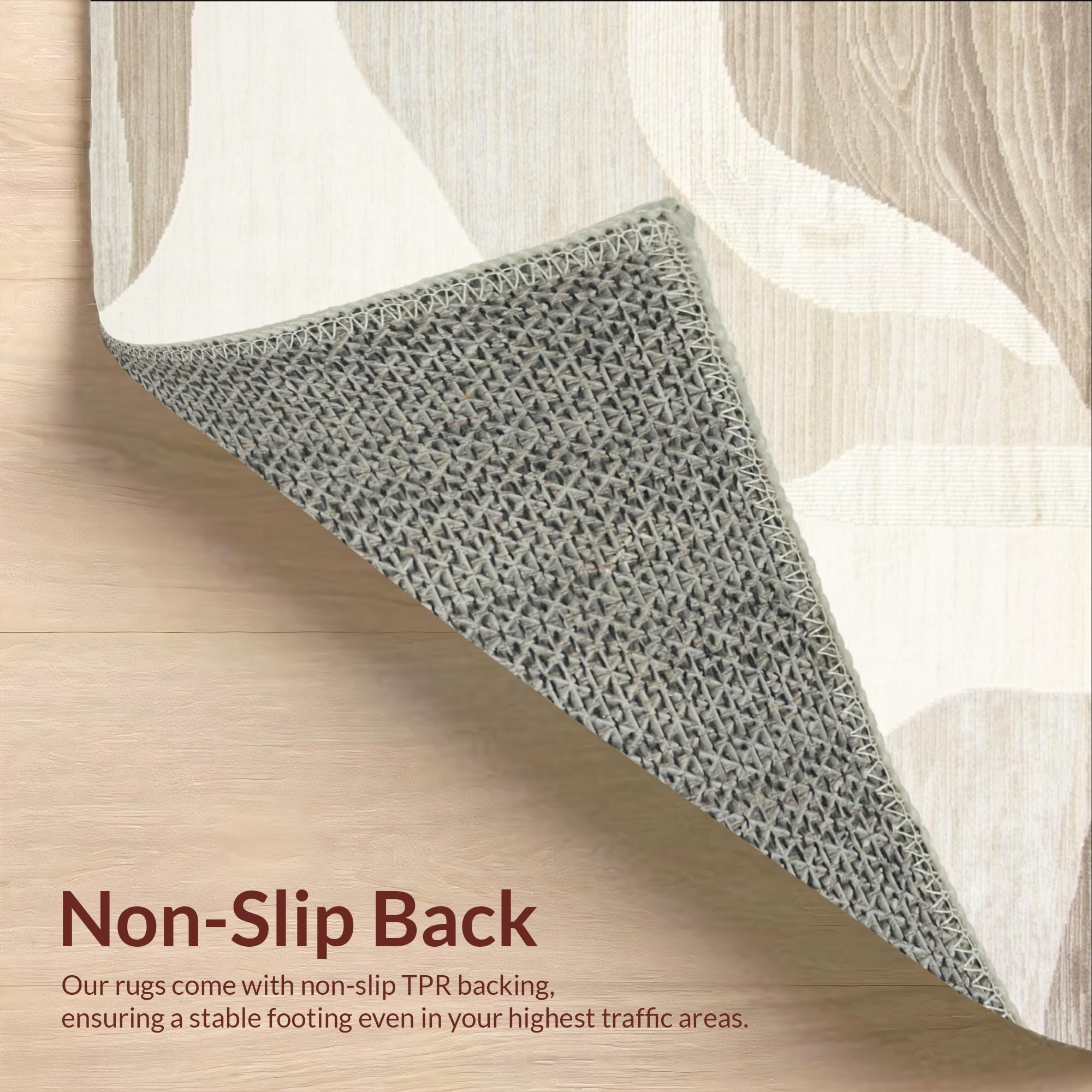 Ultra Soft Area Rug, Non Slip, Stain Resistant, Washable Area Rugs for Living Room, Bedroom, Artisan Weave Area Ivory & Beige Abstract Swirls Design(Beige) Overview: