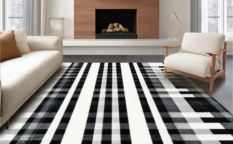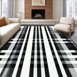 Ultra Soft Area Rug, Non Slip, Stain Resistant, Washable Area Rugs for Living Room, Bedroom, Artisan Woven Graphic Linear Rug with Contemporary Stripe Pattern(White) Overview: