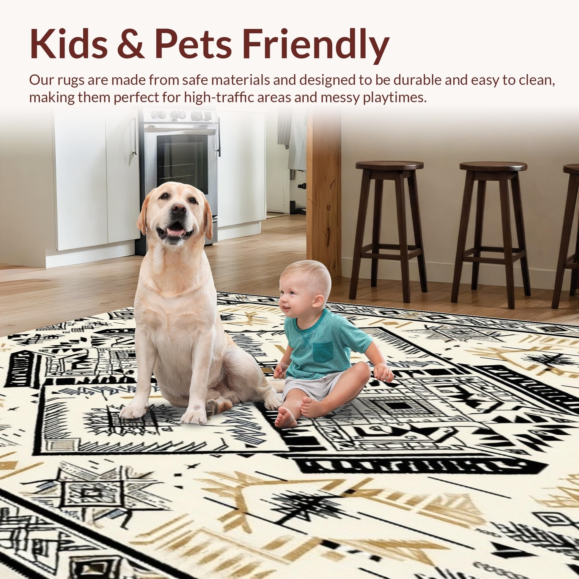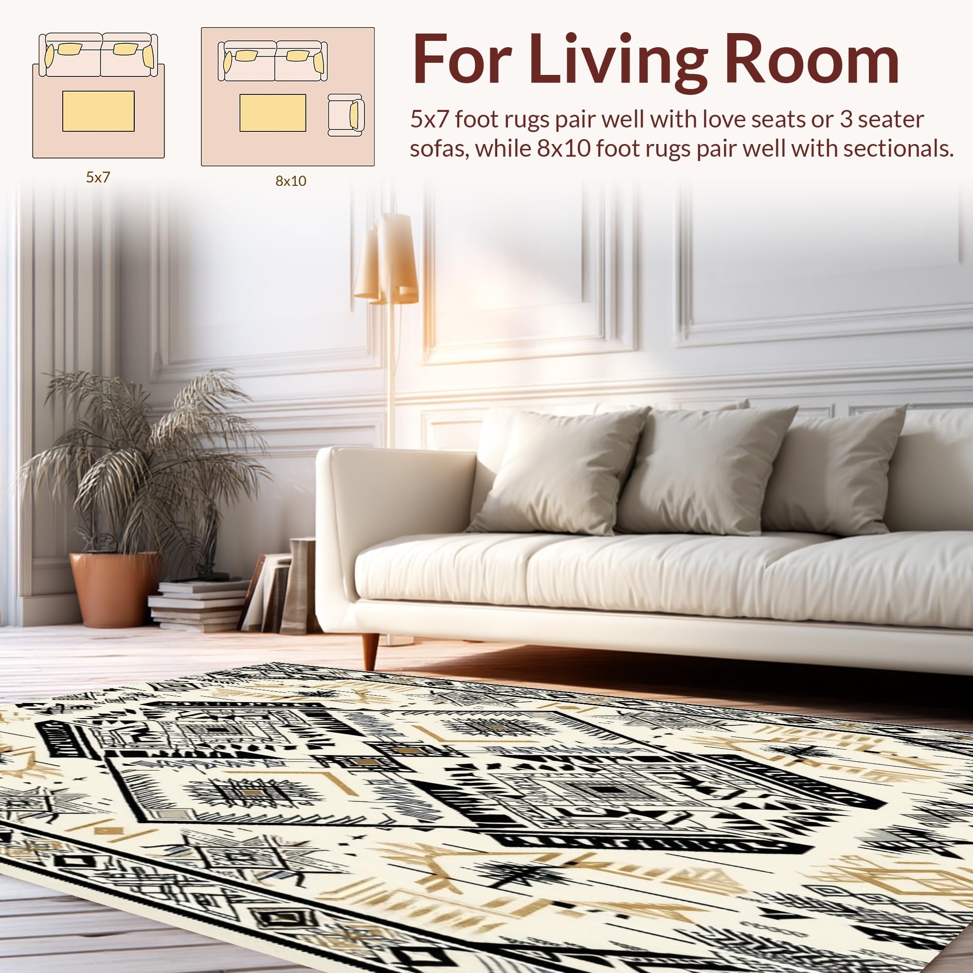 Ultra Soft Area Rug, Non Slip, Stain Resistant, Washable Area Rugs for Living Room, Bedroom, Artisan Woven Hallway Runner With Authentic Tribal Design Elements(Beige) Overview: