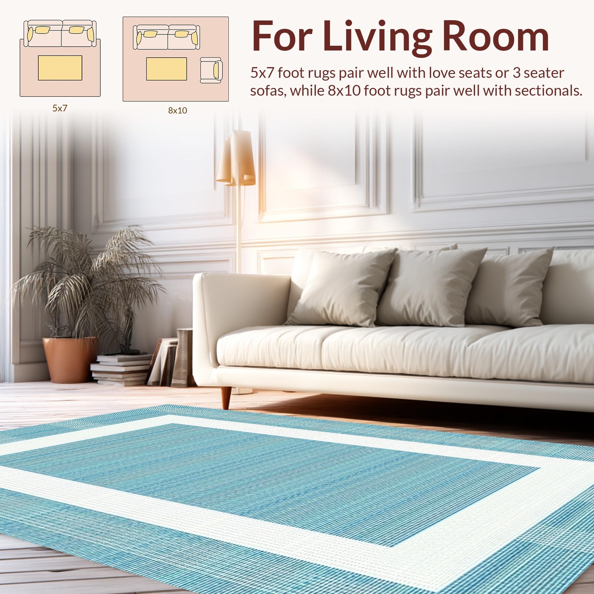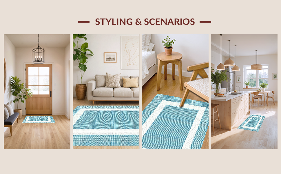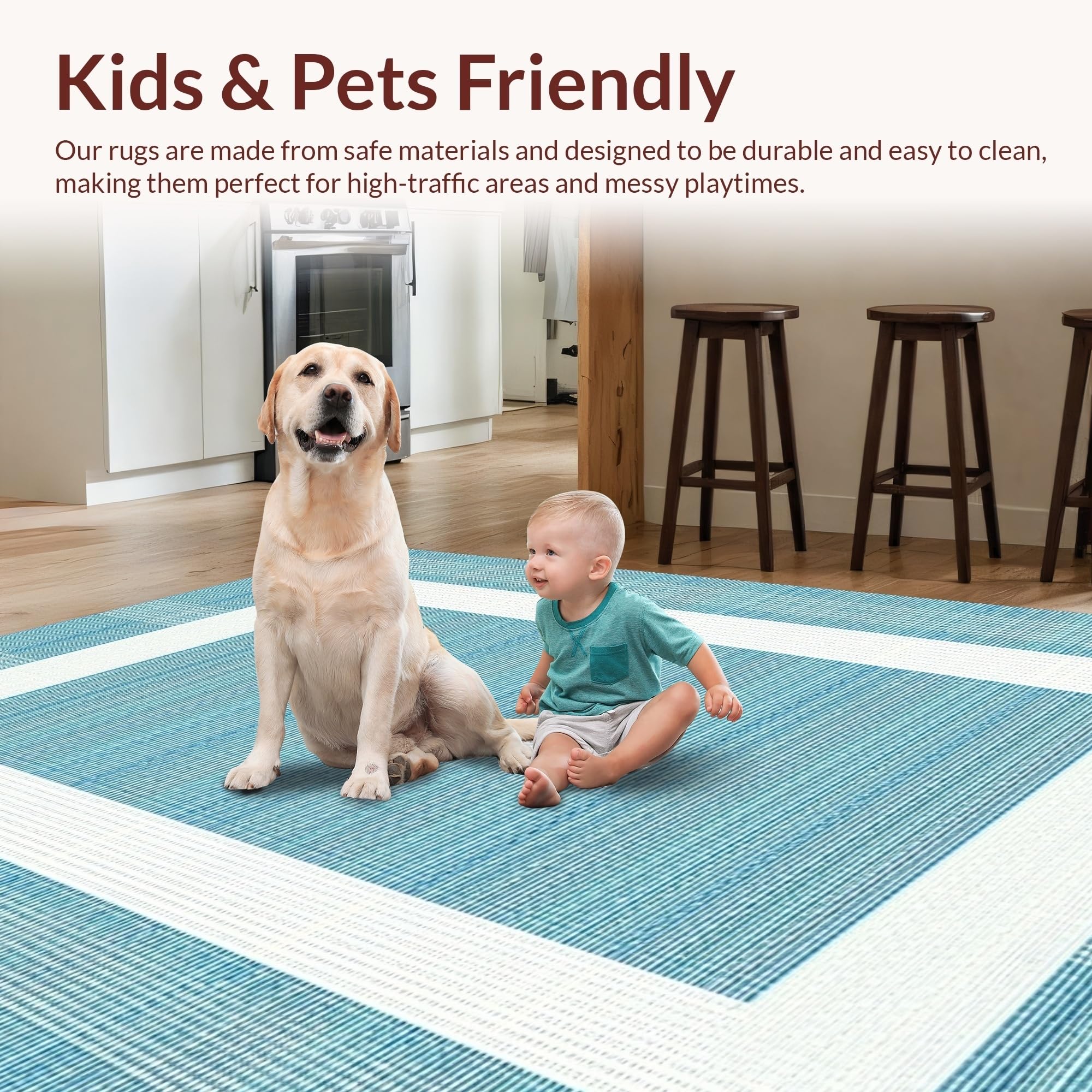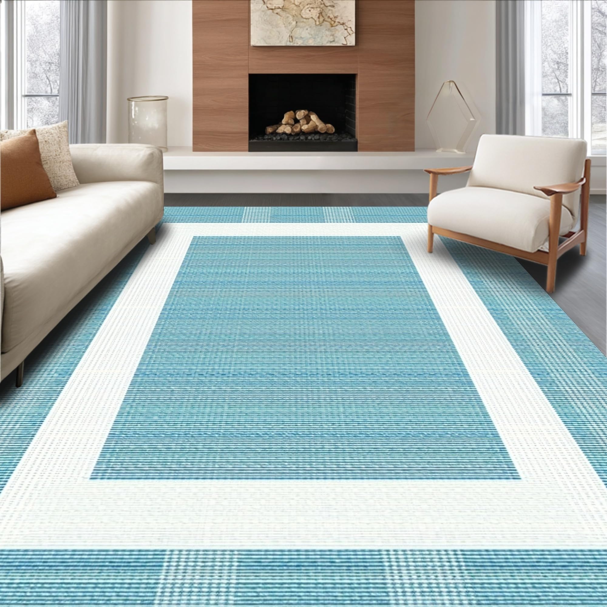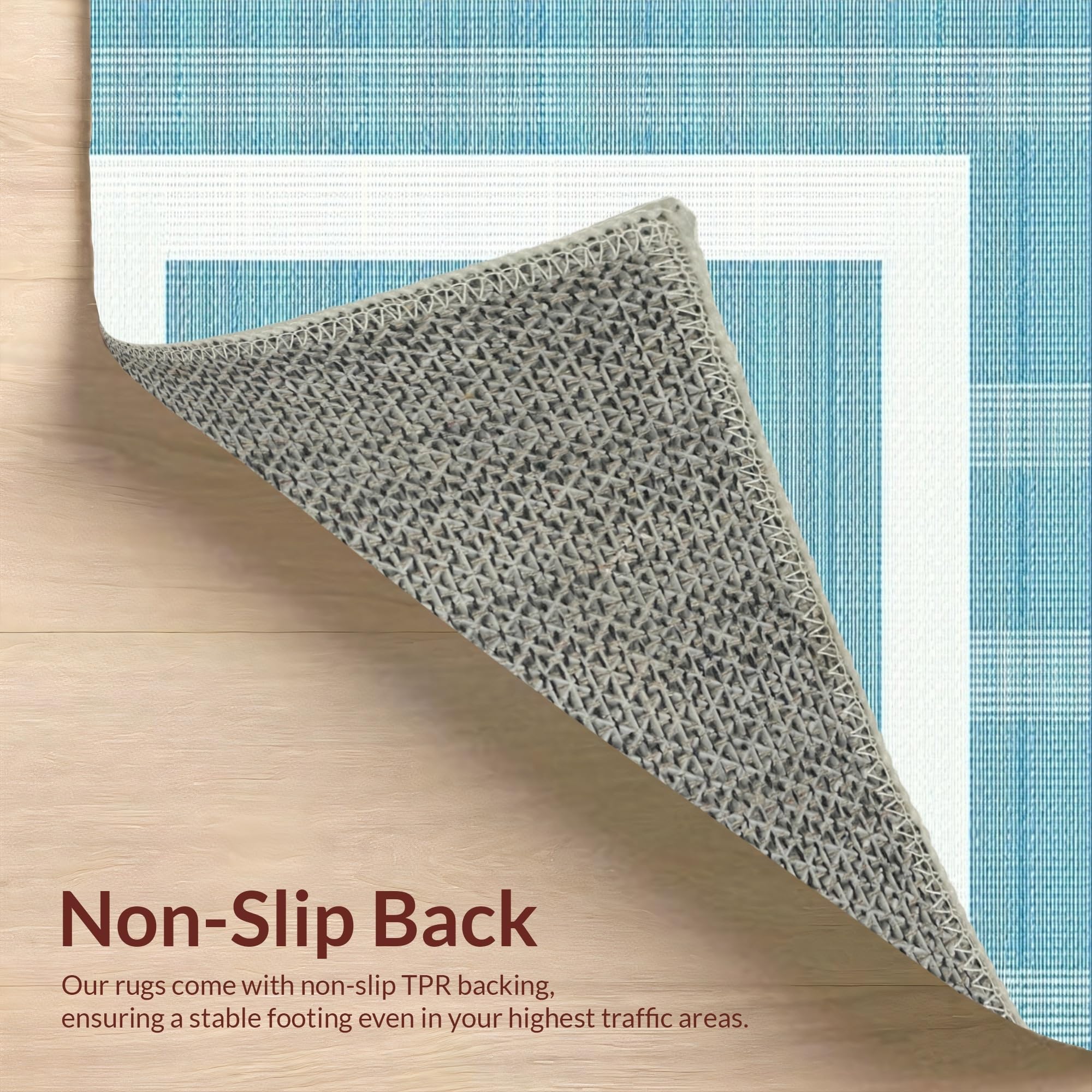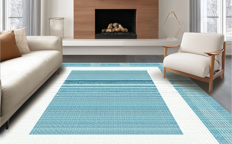 Ultra Soft Area Rug, Non Slip, Stain Resistant, Washable Area Rugs for Living Room, Bedroom, Artisanal Blue Wave Motif(Blue) Overview: