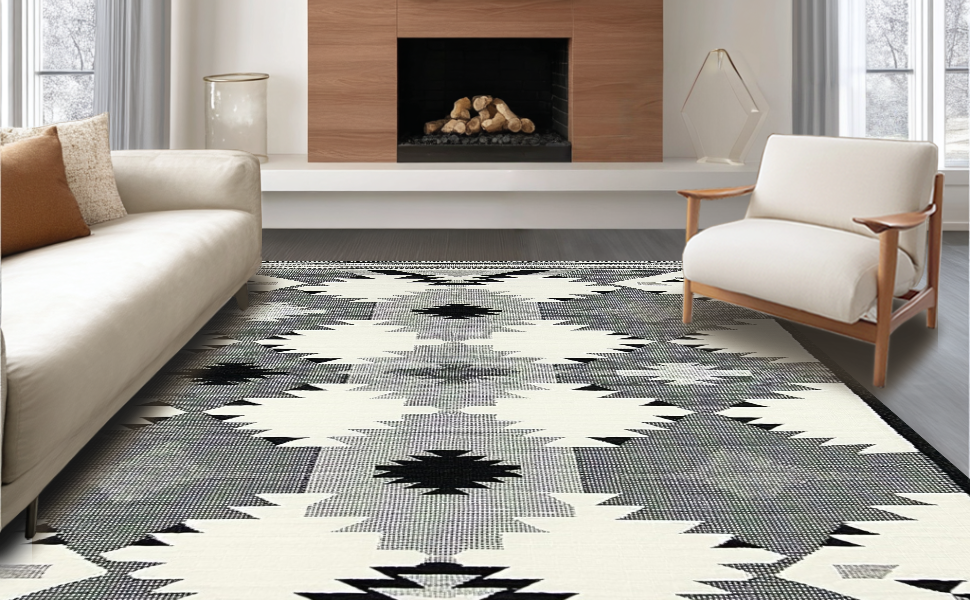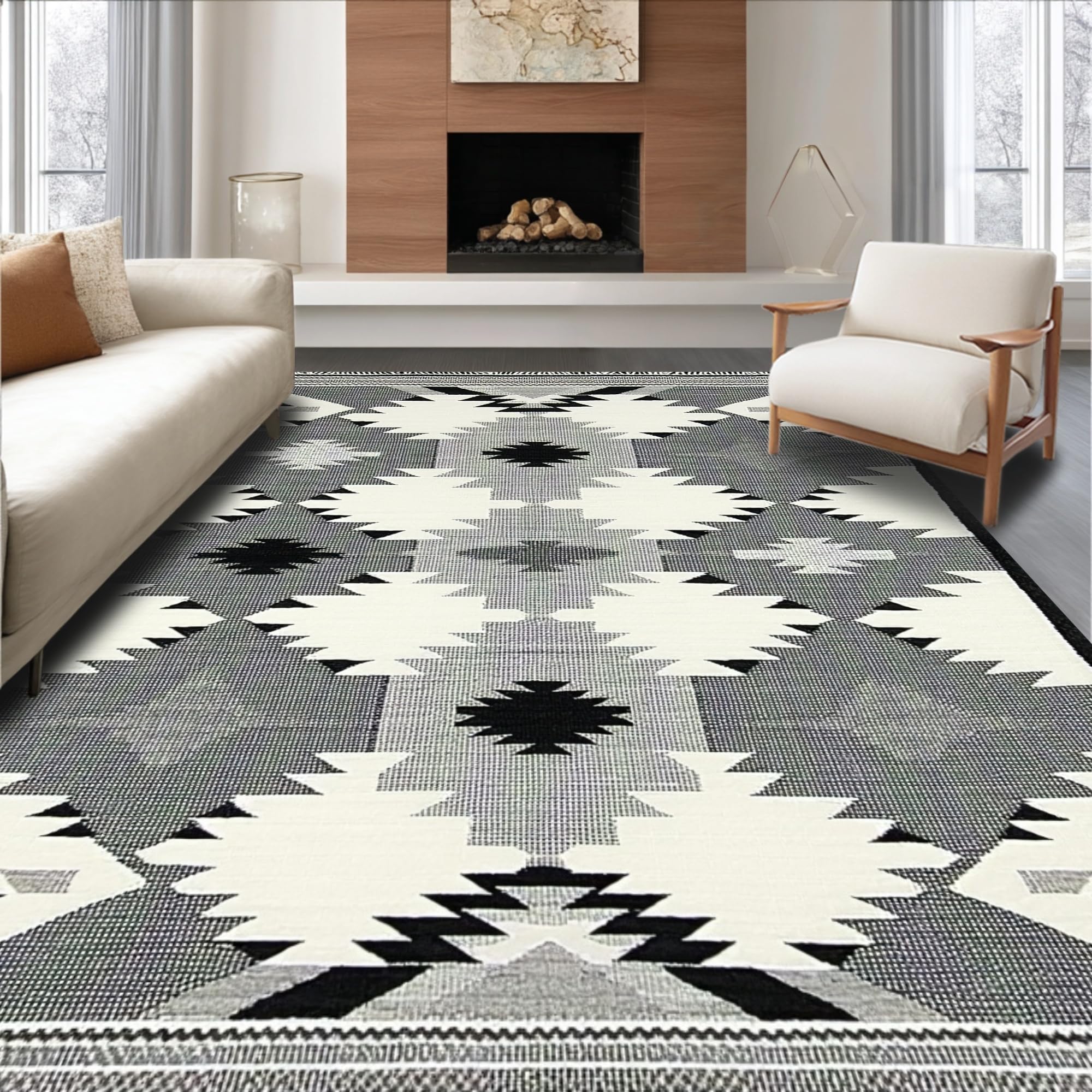 Ultra Soft Area Rug, Non Slip, Stain Resistant, Washable Area Rugs for Living Room, Bedroom, Artisanal Global Inspired Design(Gray) Overview: