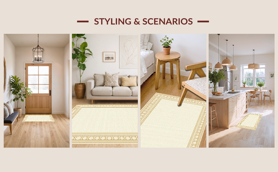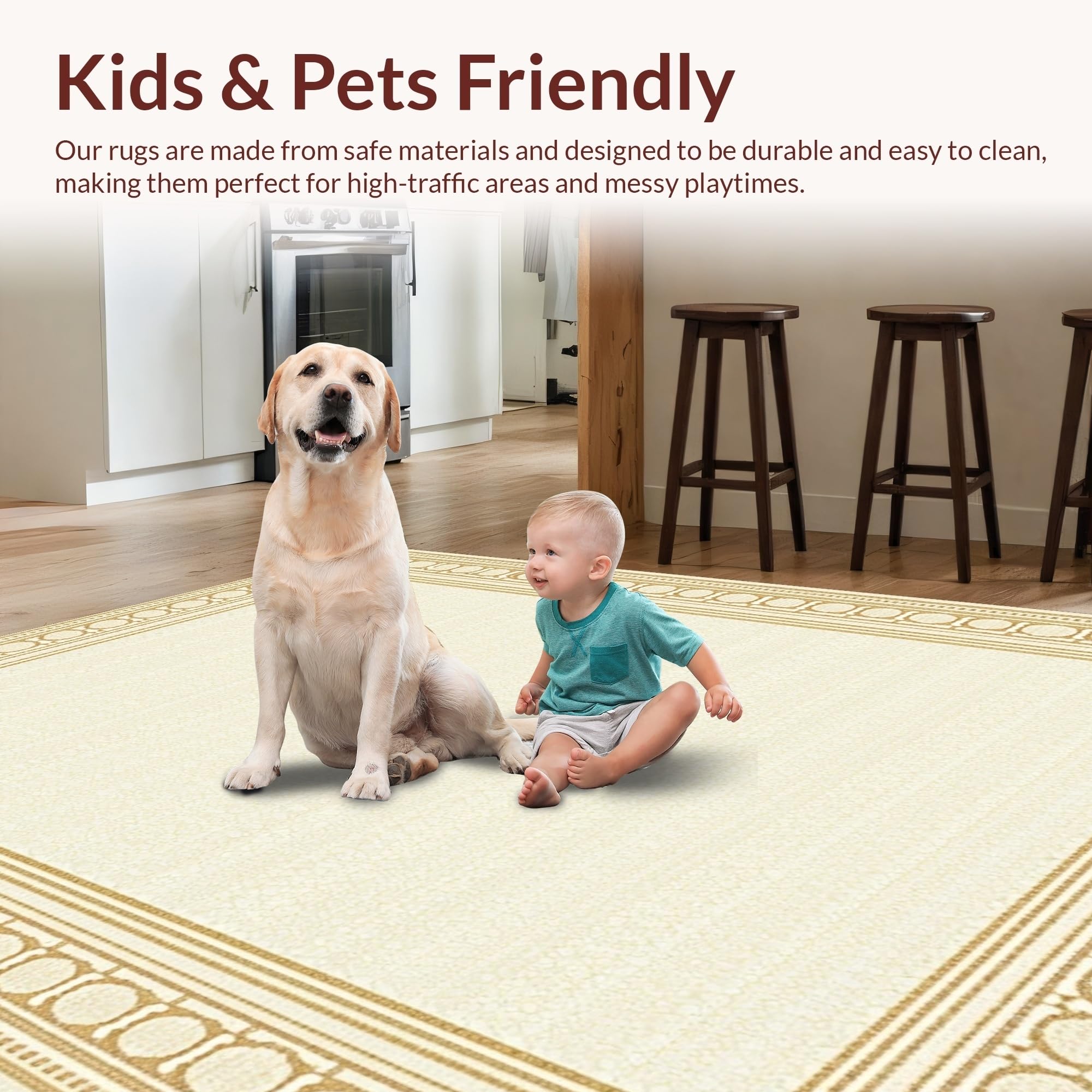 Ultra Soft Area Rug, Non Slip, Stain Resistant, Washable Area Rugs for Living Room, Bedroom, Artisanal Handcrafted Rustic Charm(Beige) Overview: