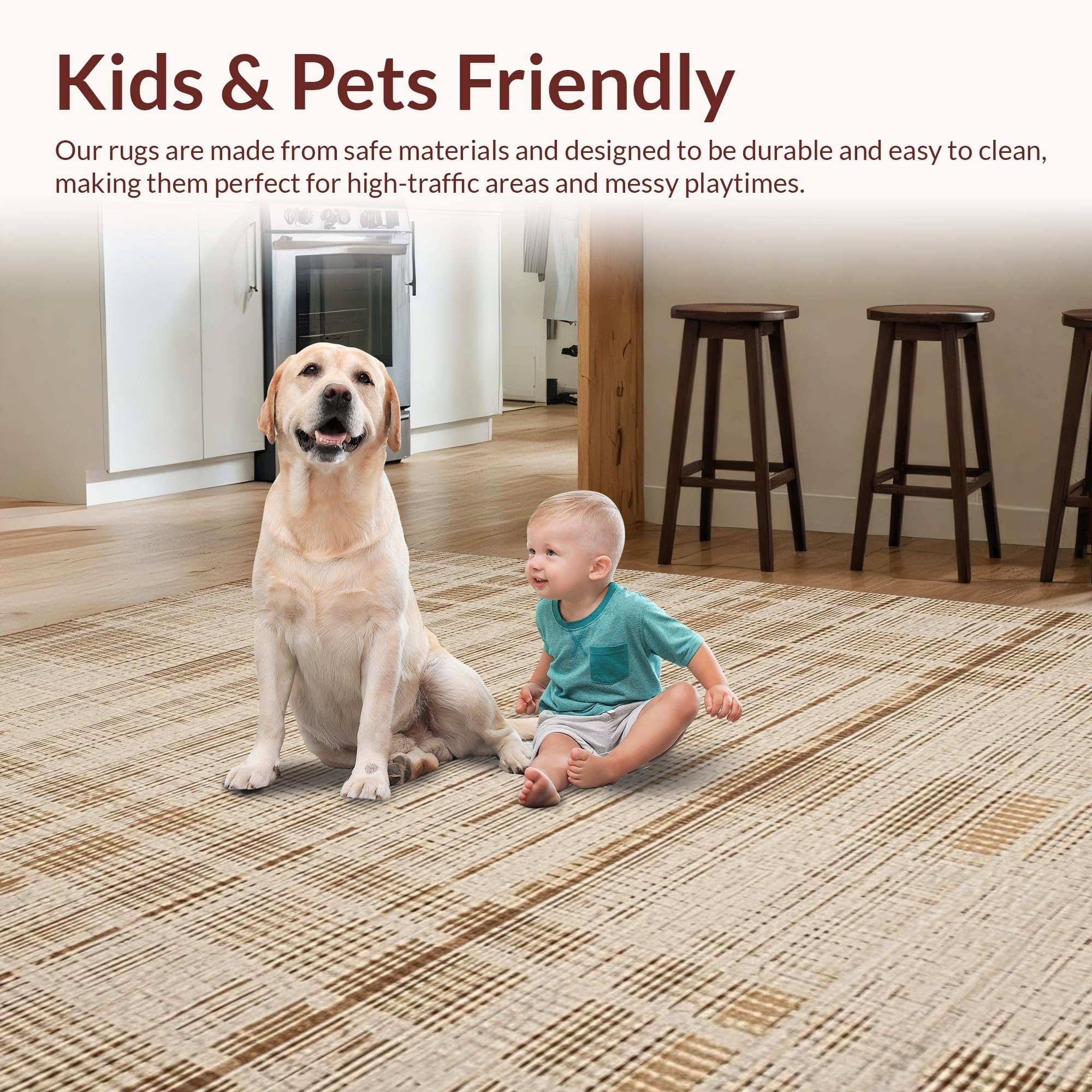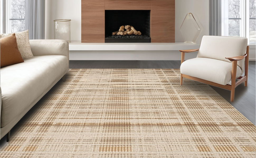 Ultra Soft Area Rug, Non Slip, Stain Resistant, Washable Area Rugs for Living Room, Bedroom, Artisanal Handwoven Rustic Charm(Beige) Overview: