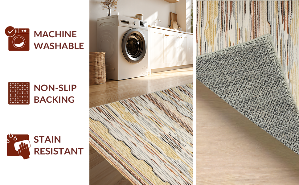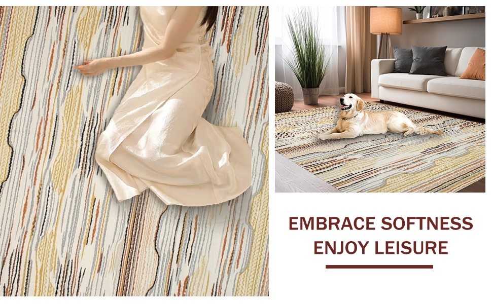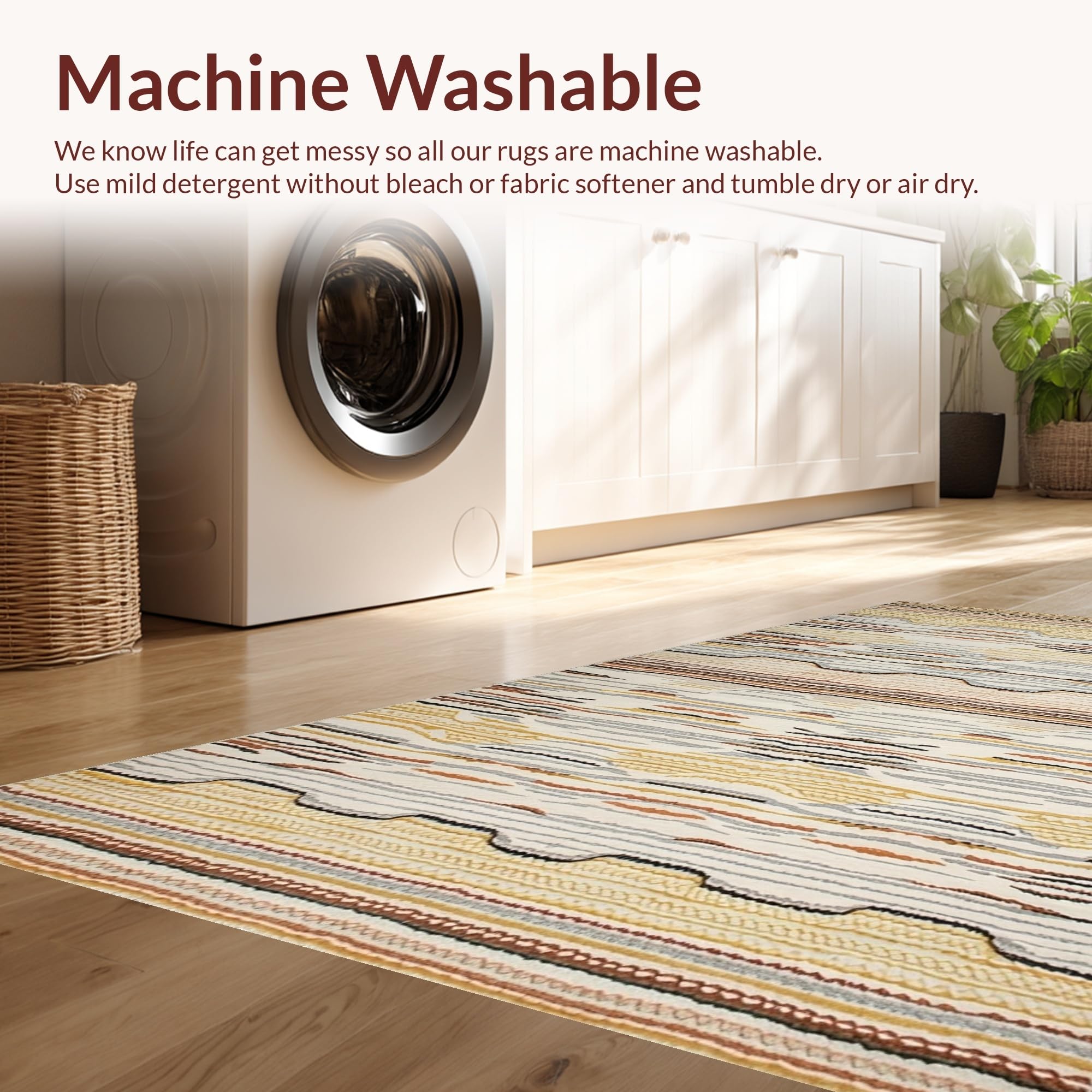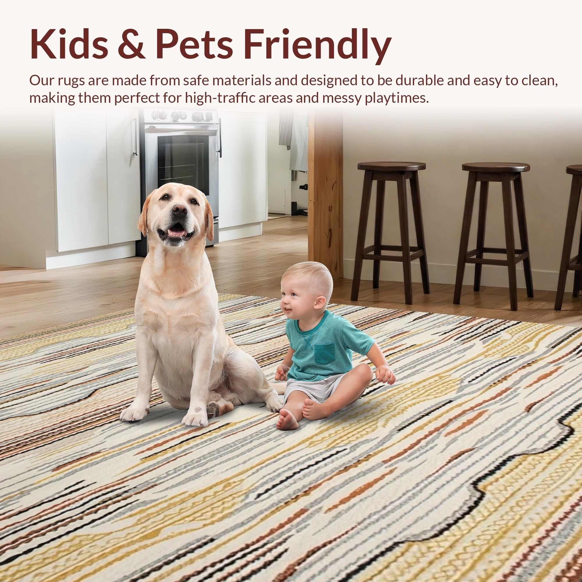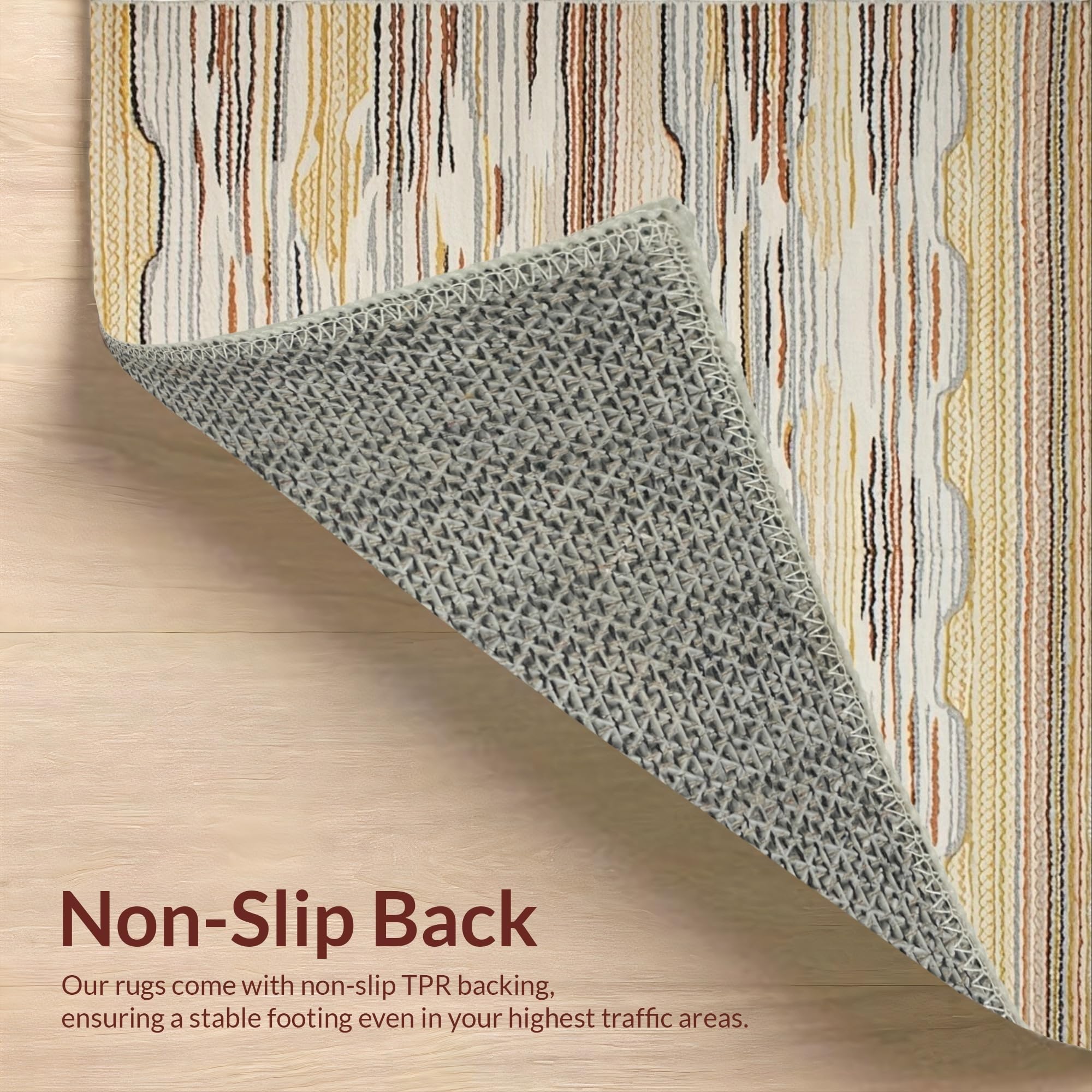 Ultra Soft Area Rug, Non Slip, Stain Resistant, Washable Area Rugs for Living Room, Bedroom, Artisanal Layered Linear Arrangement(Beige) Overview: