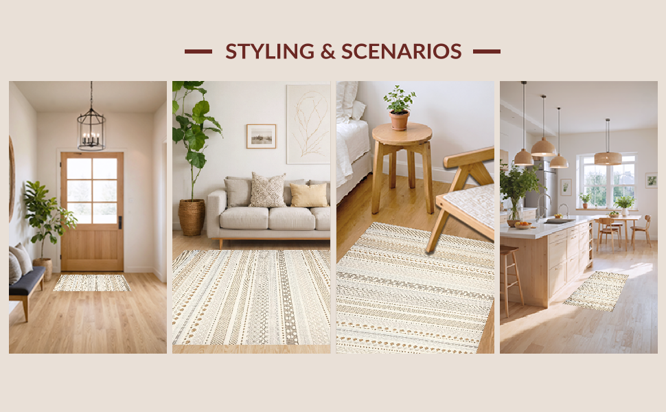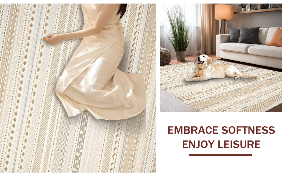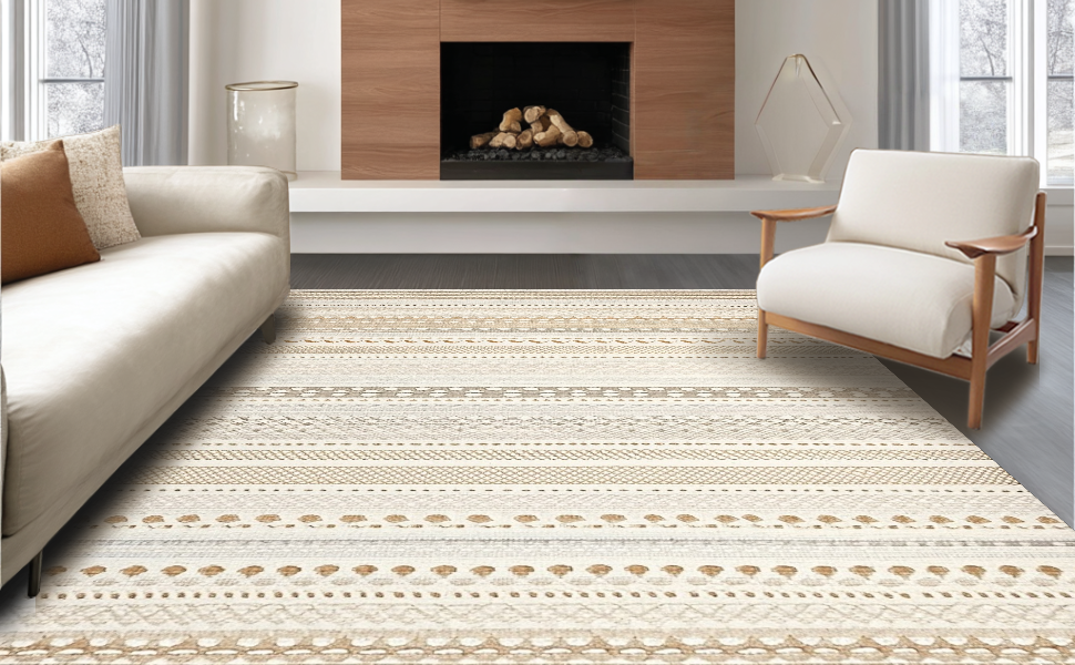 Ultra Soft Area Rug, Non Slip, Stain Resistant, Washable Area Rugs for Living Room, Bedroom, Artisanal Light Brown Pattern(Beige) Overview: