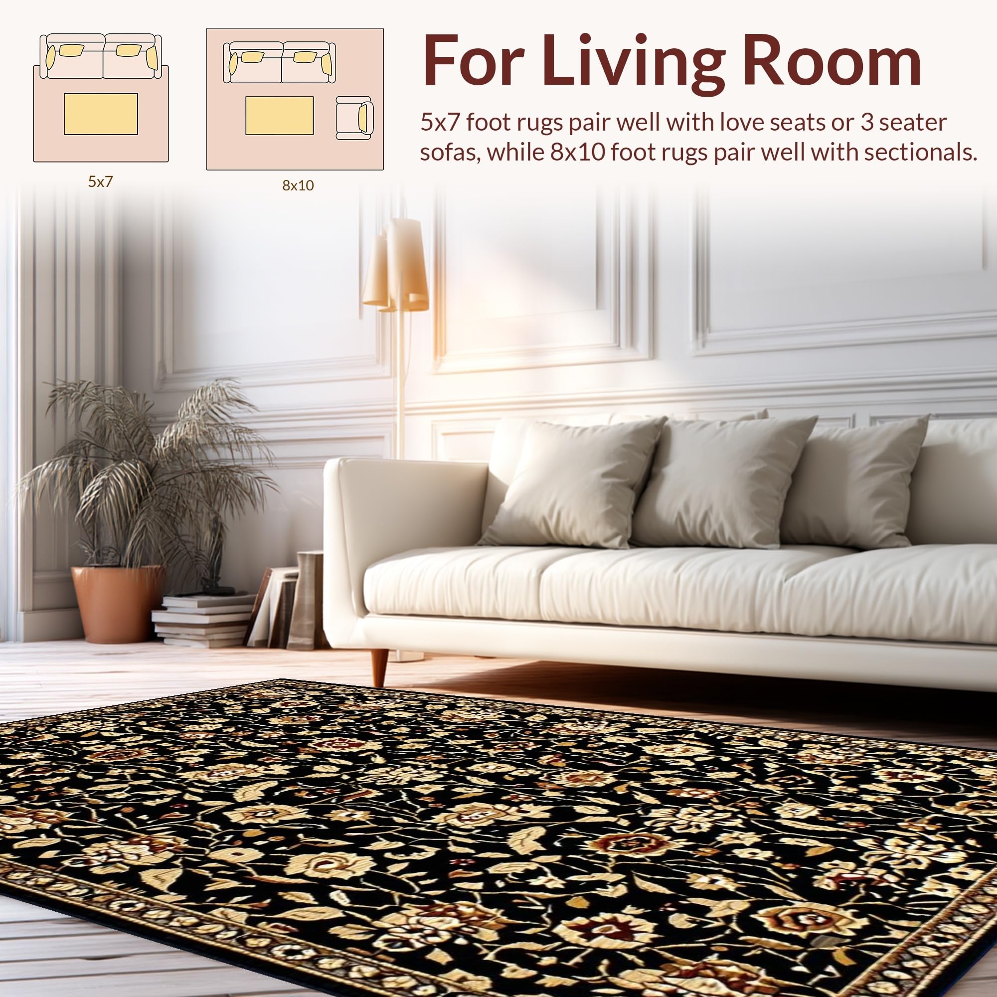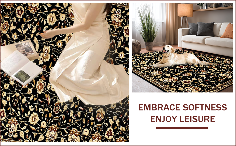 Ultra Soft Area Rug, Non Slip, Stain Resistant, Washable Area Rugs for Living Room, Bedroom, Artisanal Multicolor Patterned Innovation(Black) Overview: