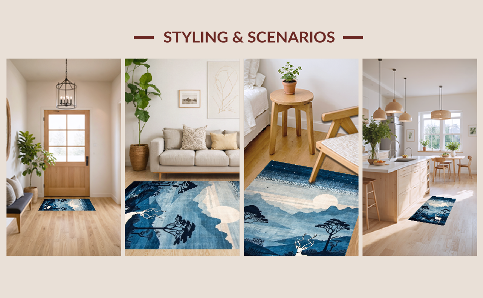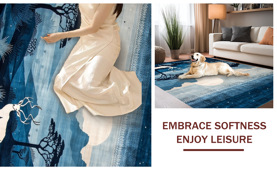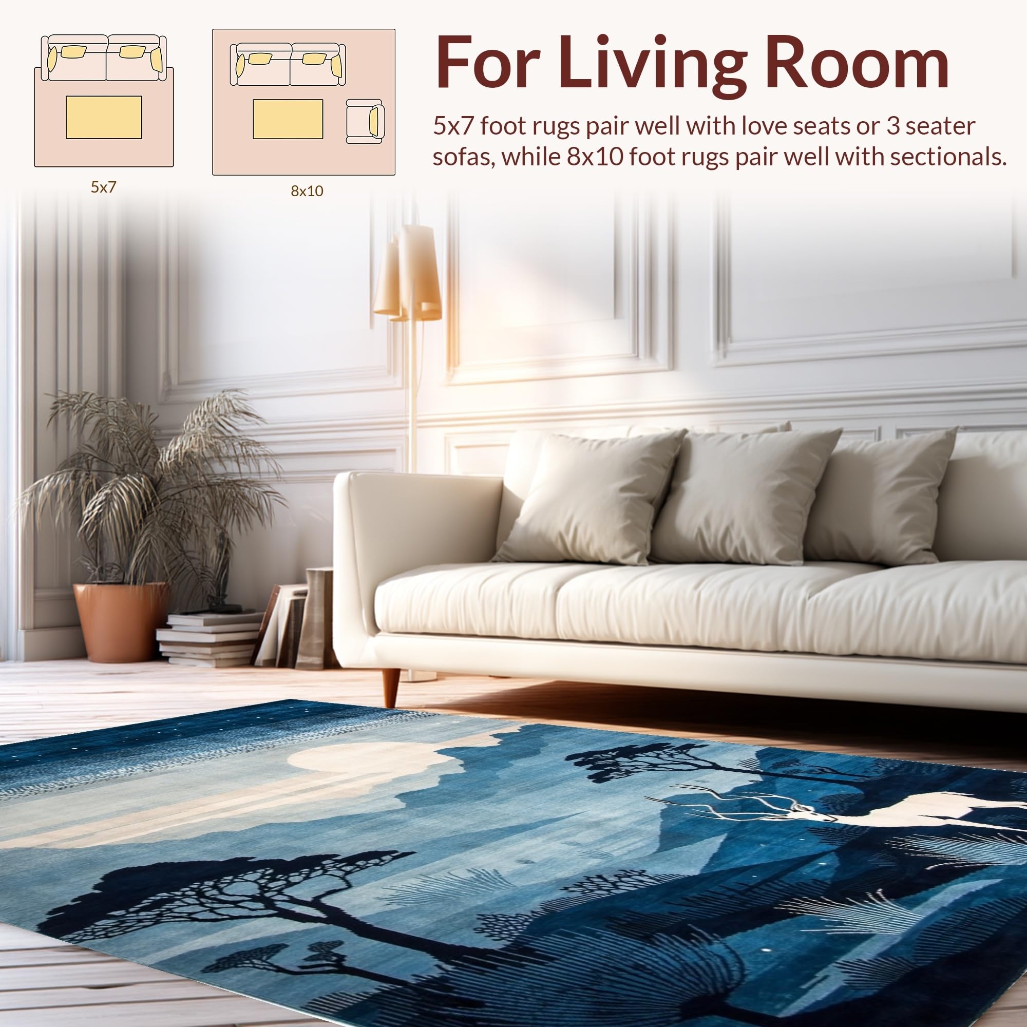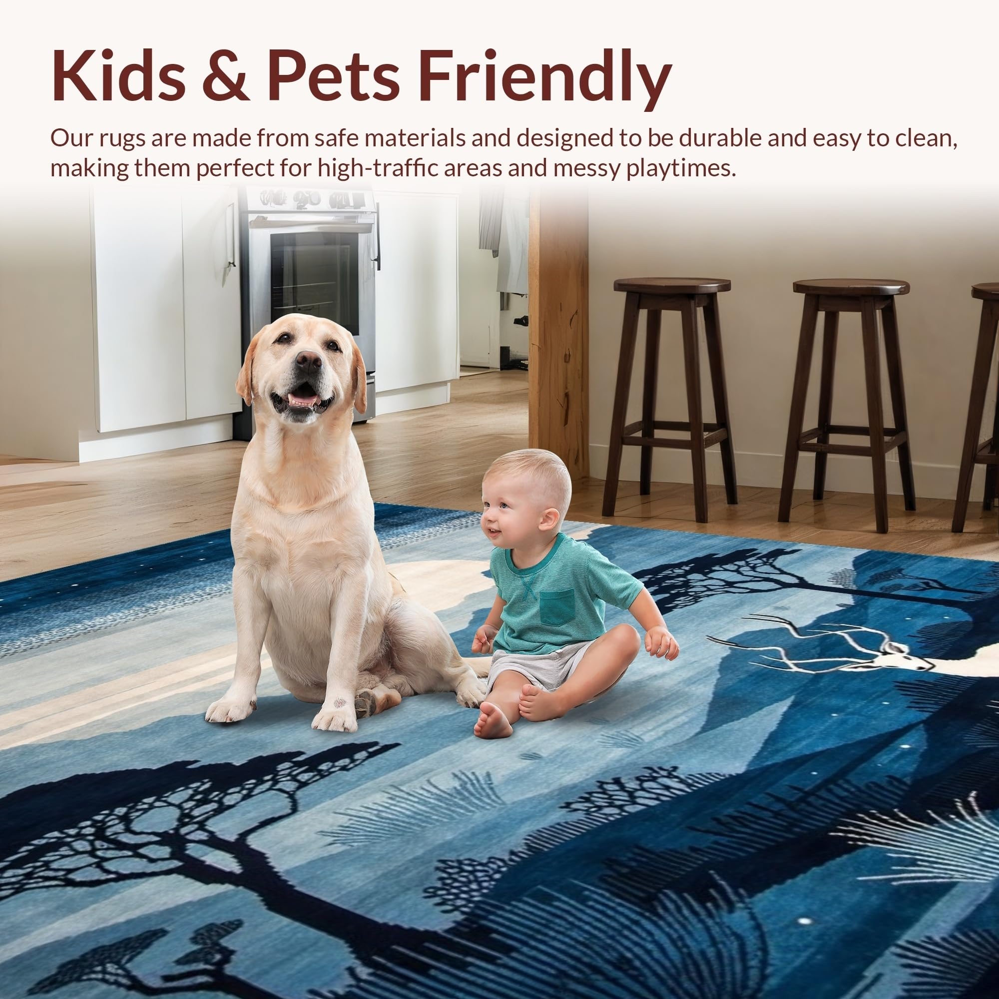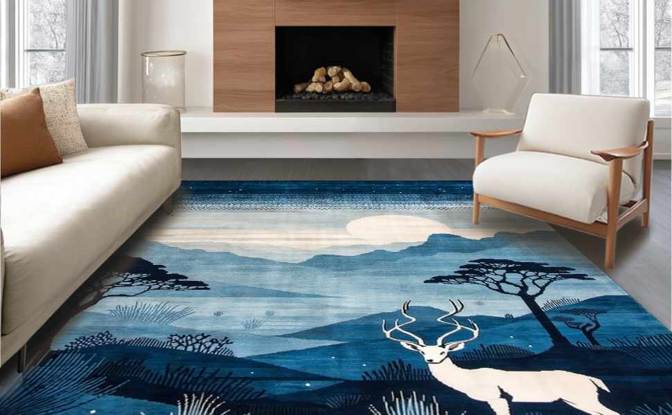 Ultra Soft Area Rug, Non Slip, Stain Resistant, Washable Area Rugs for Living Room, Bedroom, Artistic Abstract Animal Pattern(Blue) Overview: