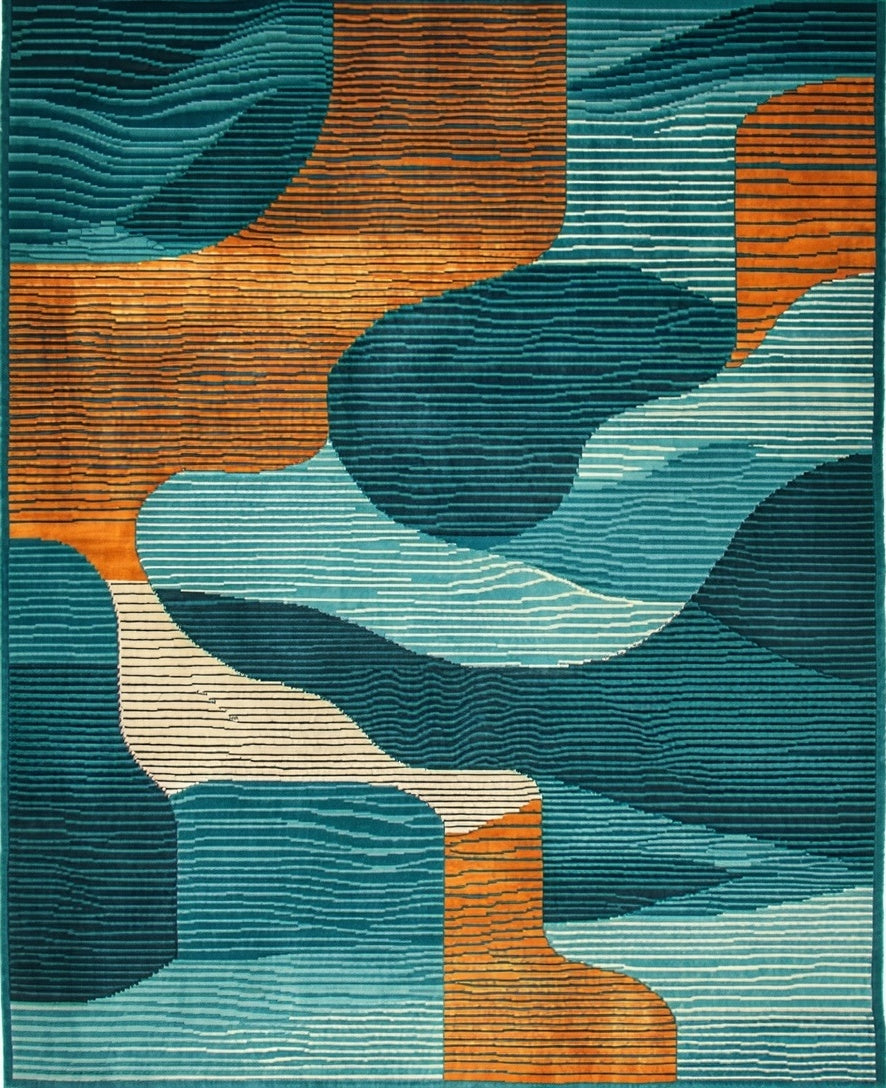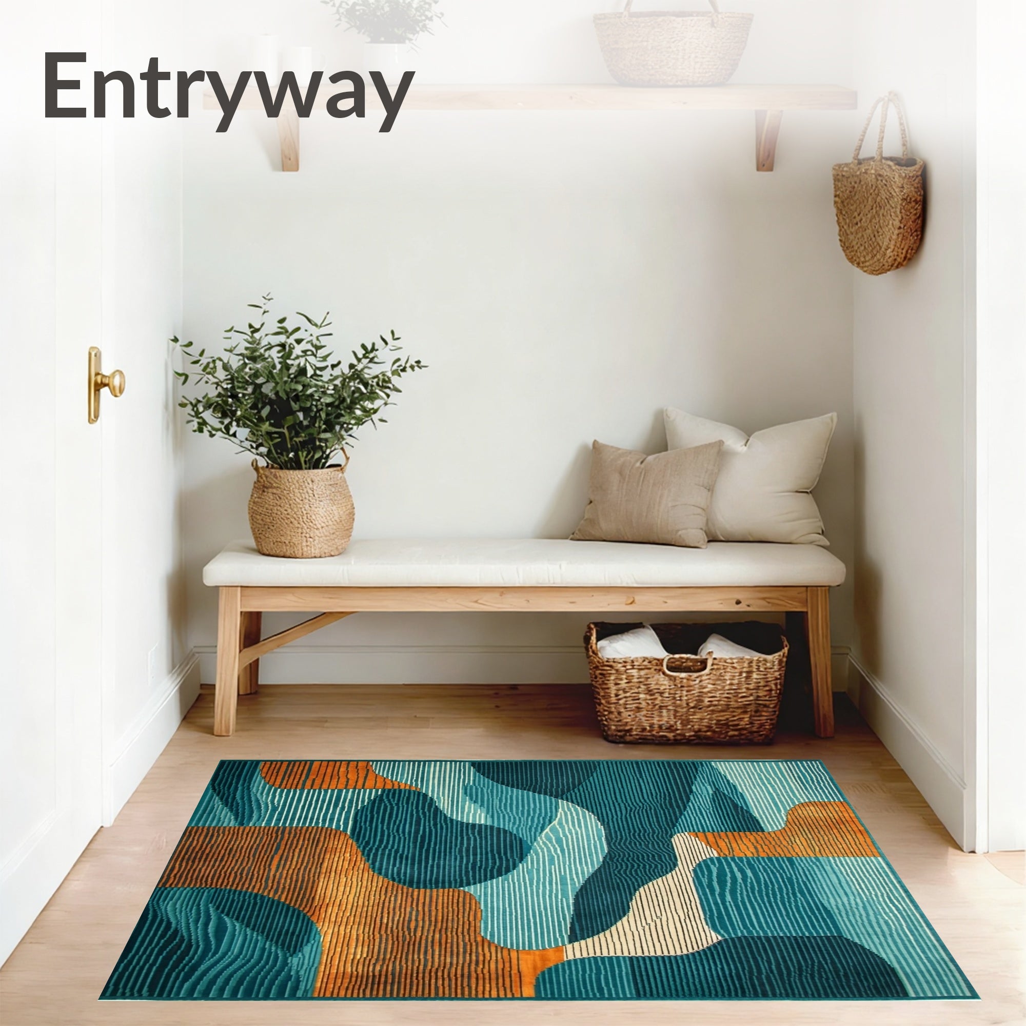 Flatwoven High Traffic Area Rug, Artistic Abstract With Deep Teal And Burnt Orange Flowing Design, Non Slip, Stain Resistant, Washable Area Rugs for Living Room, Bedroom (Blue) Overview:
