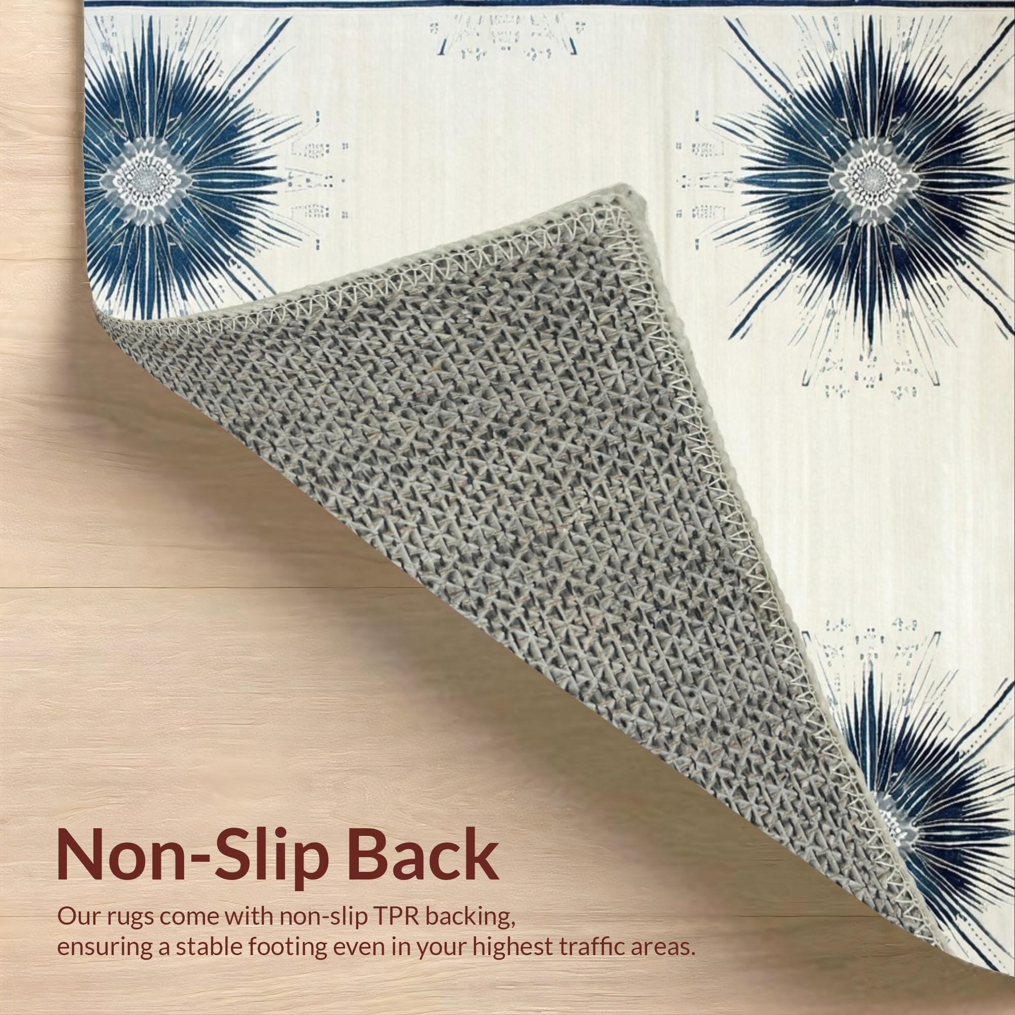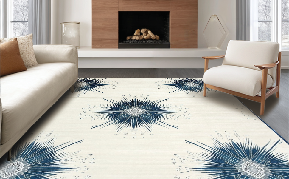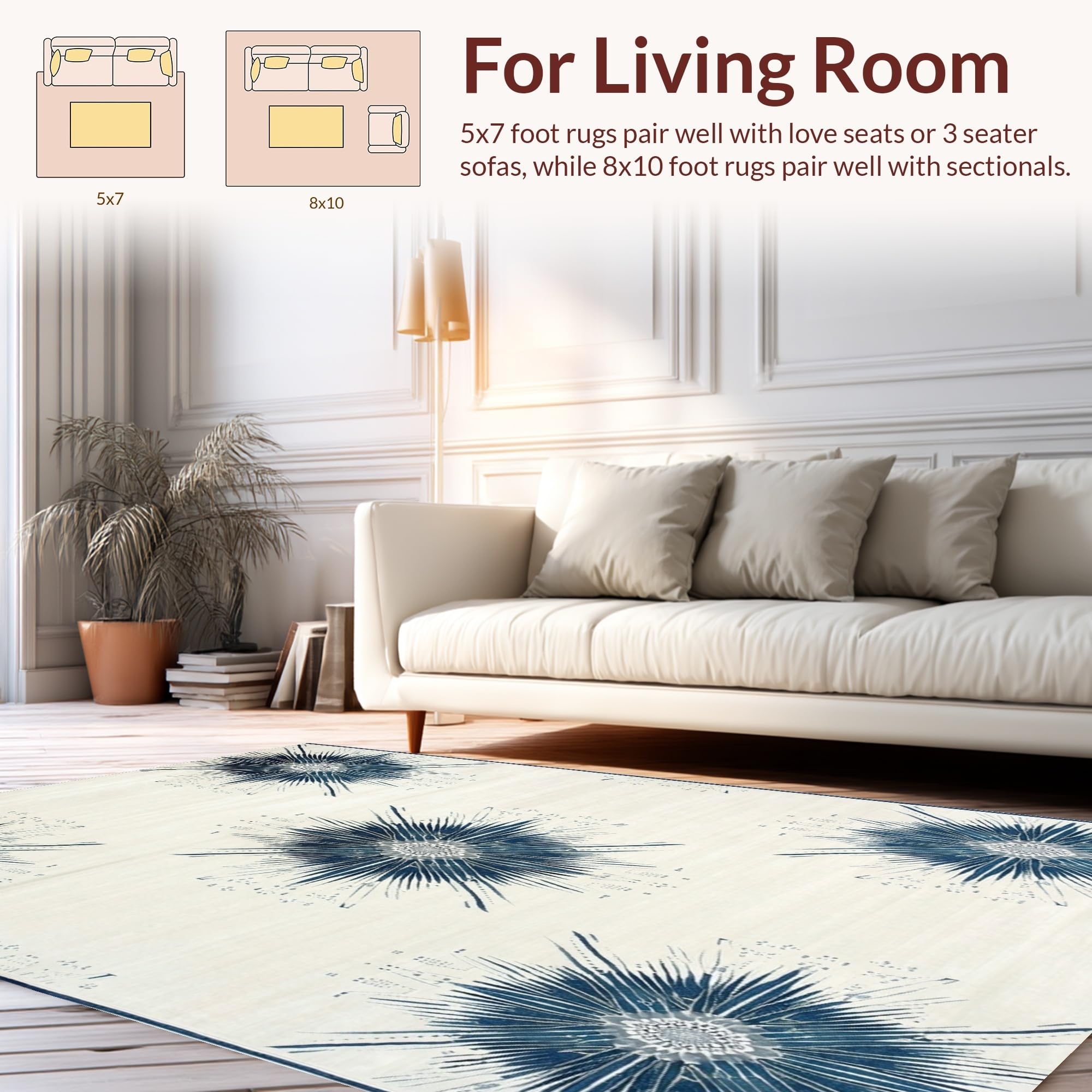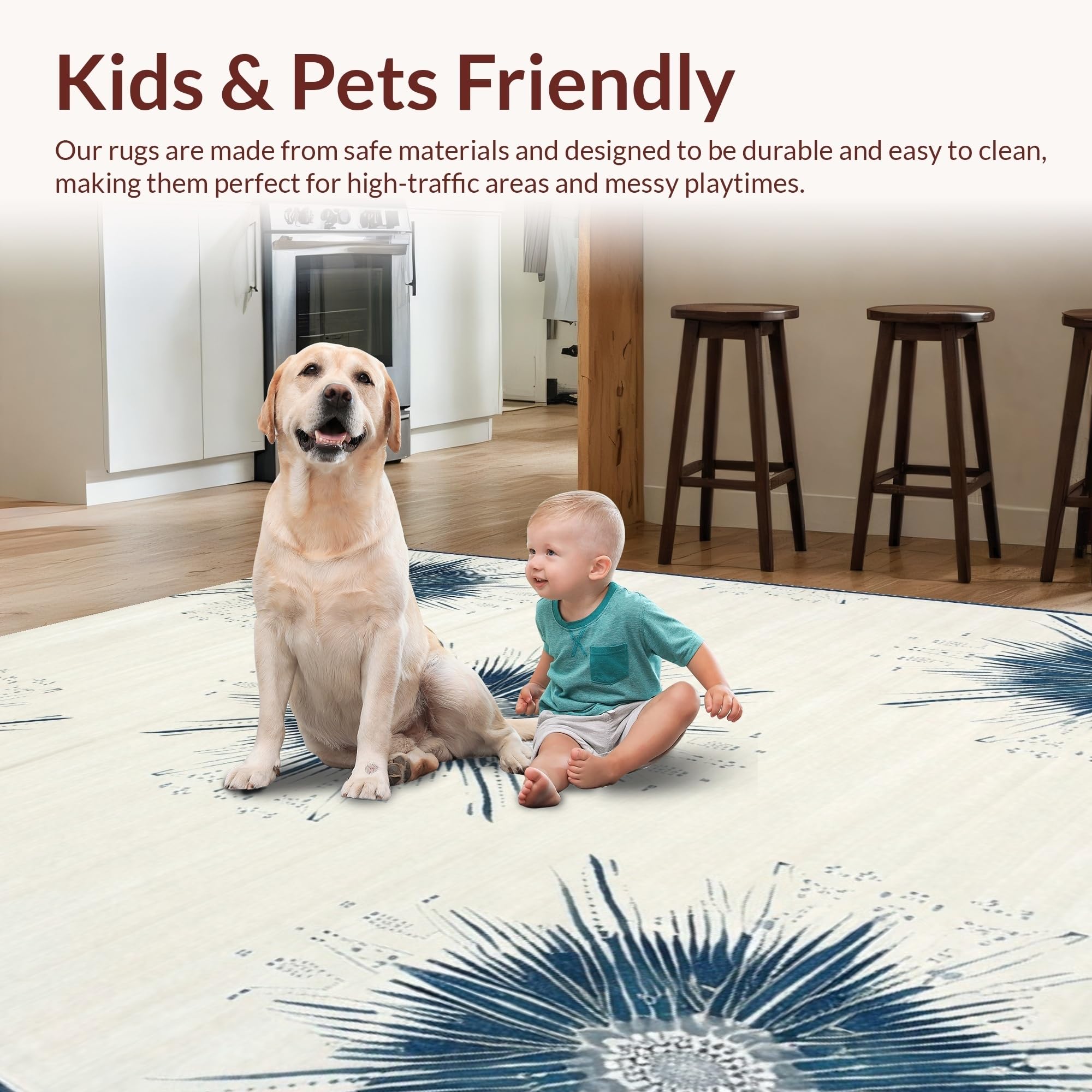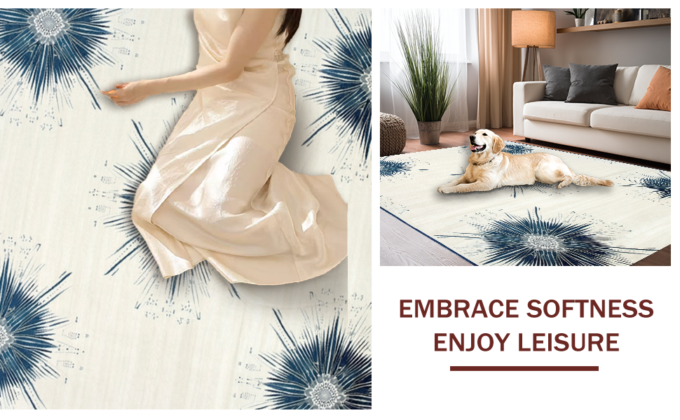 Ultra Soft Area Rug, Non Slip, Stain Resistant, Washable Area Rugs for Living Room, Bedroom, Artistic Abstract Circle Arrangement(Blue) Overview: