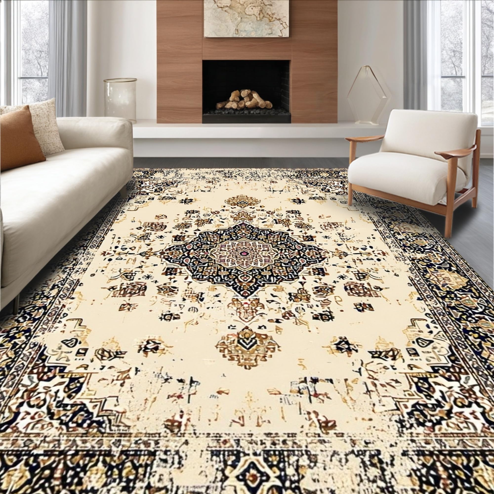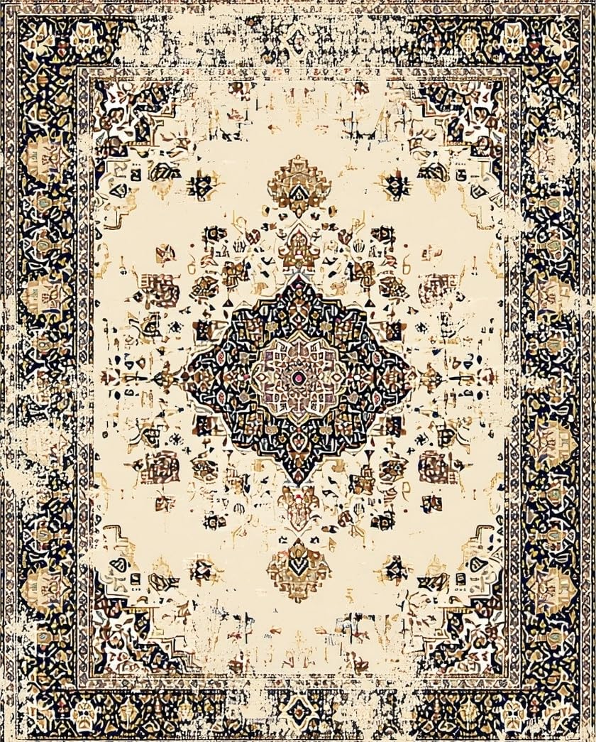 Ultra Soft Area Rug, Non Slip, Stain Resistant, Washable Area Rugs for Living Room, Bedroom, Artistic Abstract Circular Composition(Beige) Overview: