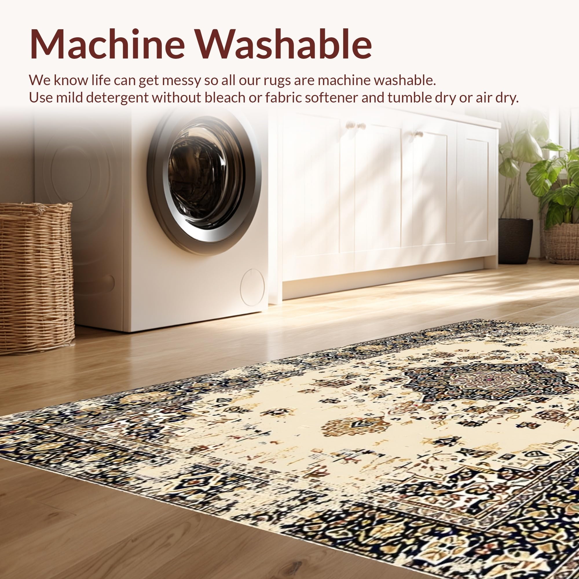 - Machine Washable: Our rugs can be easily thrown in the wash machine.