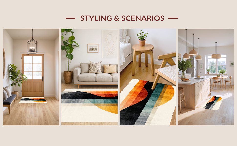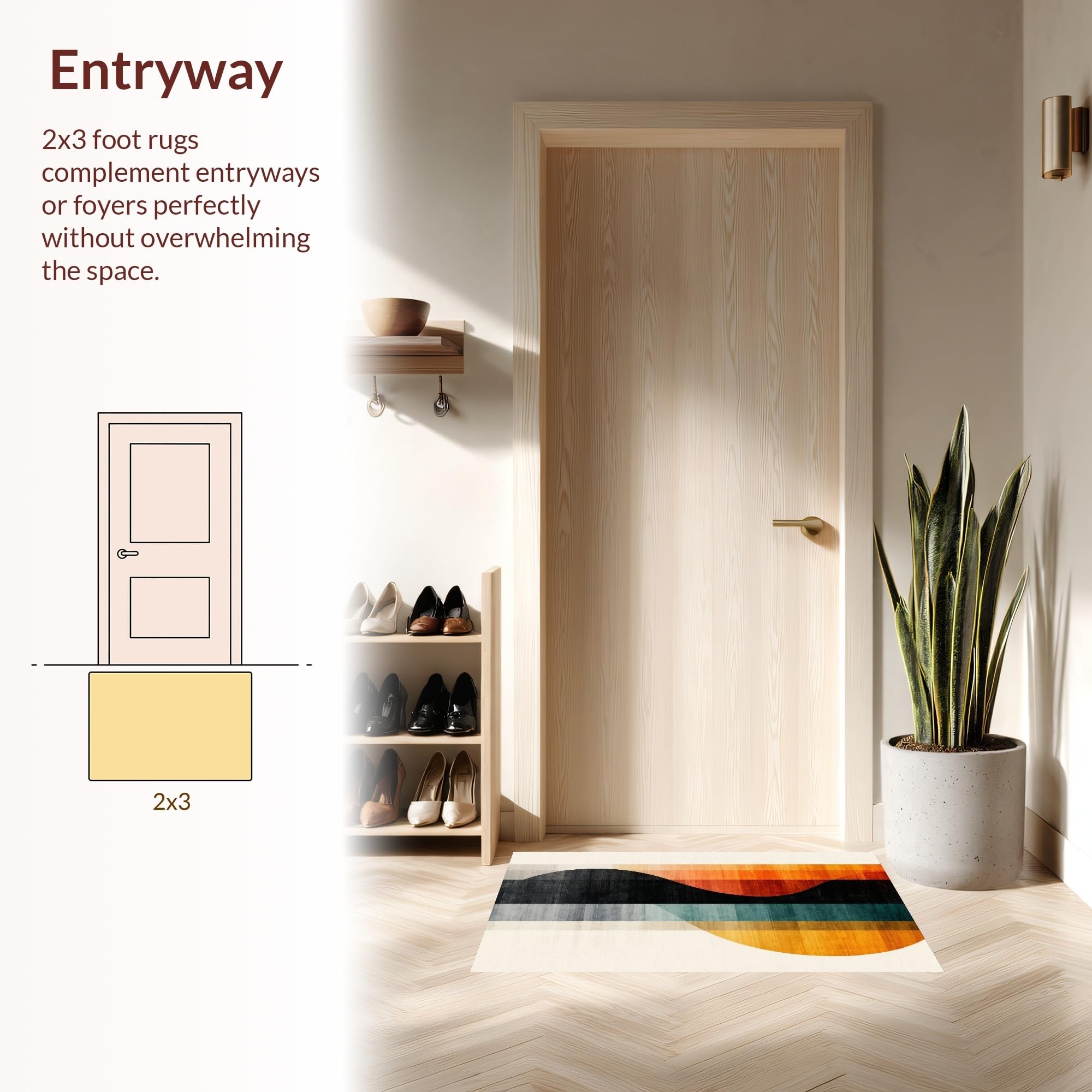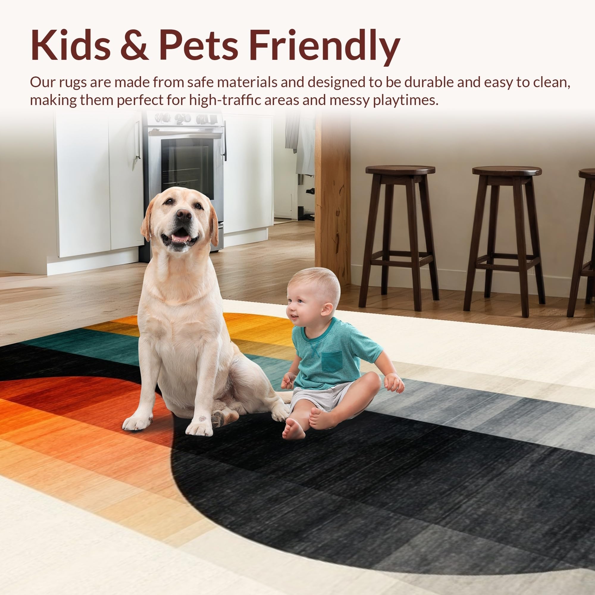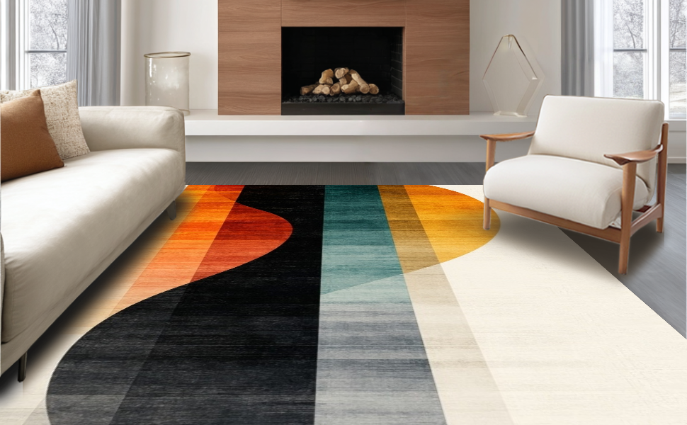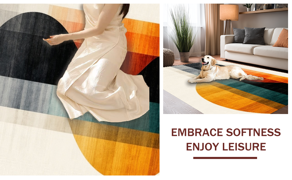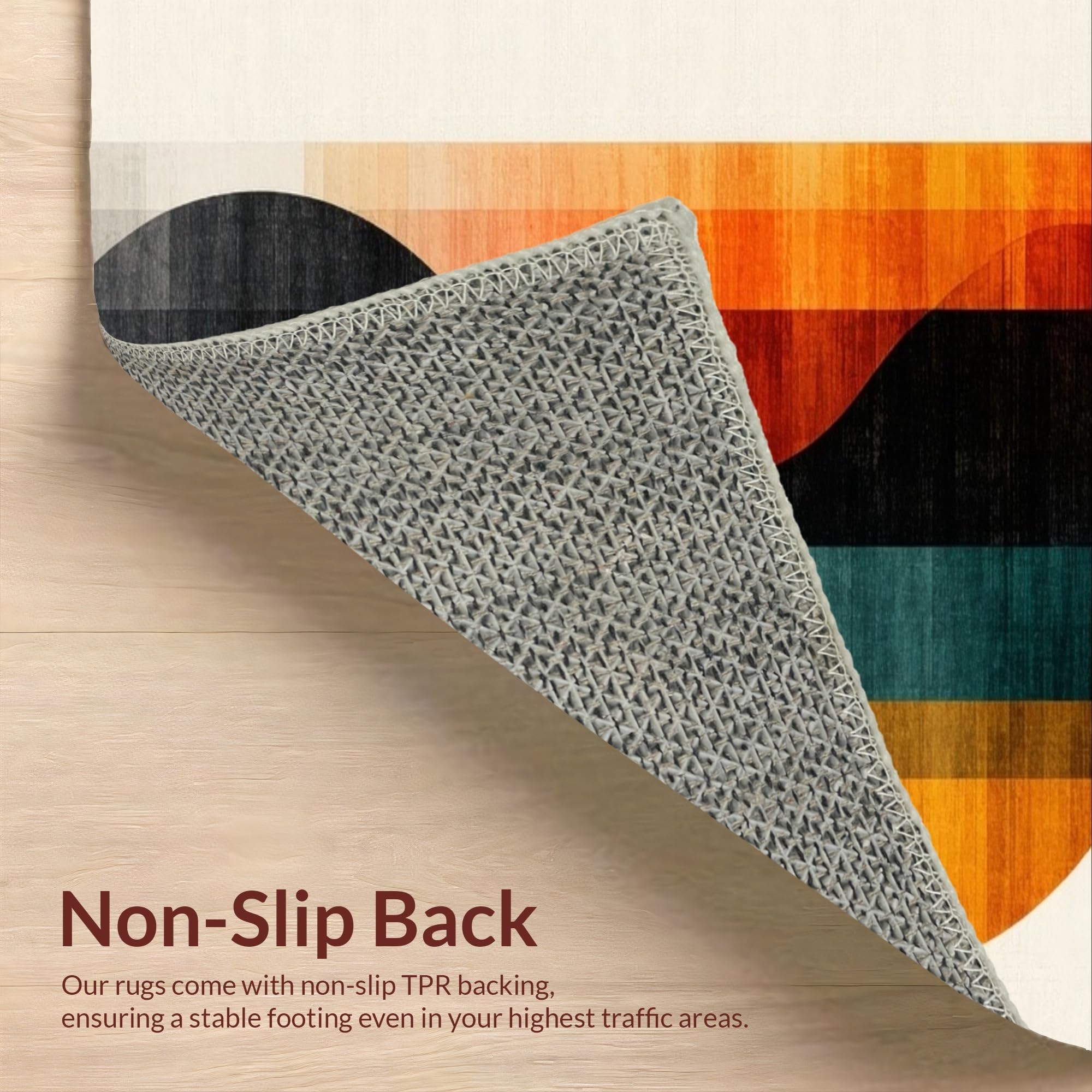 Ultra Soft Area Rug, Non Slip, Stain Resistant, Washable Area Rugs for Living Room, Bedroom, Artistic Abstract Circular Motif(Orange) Overview: