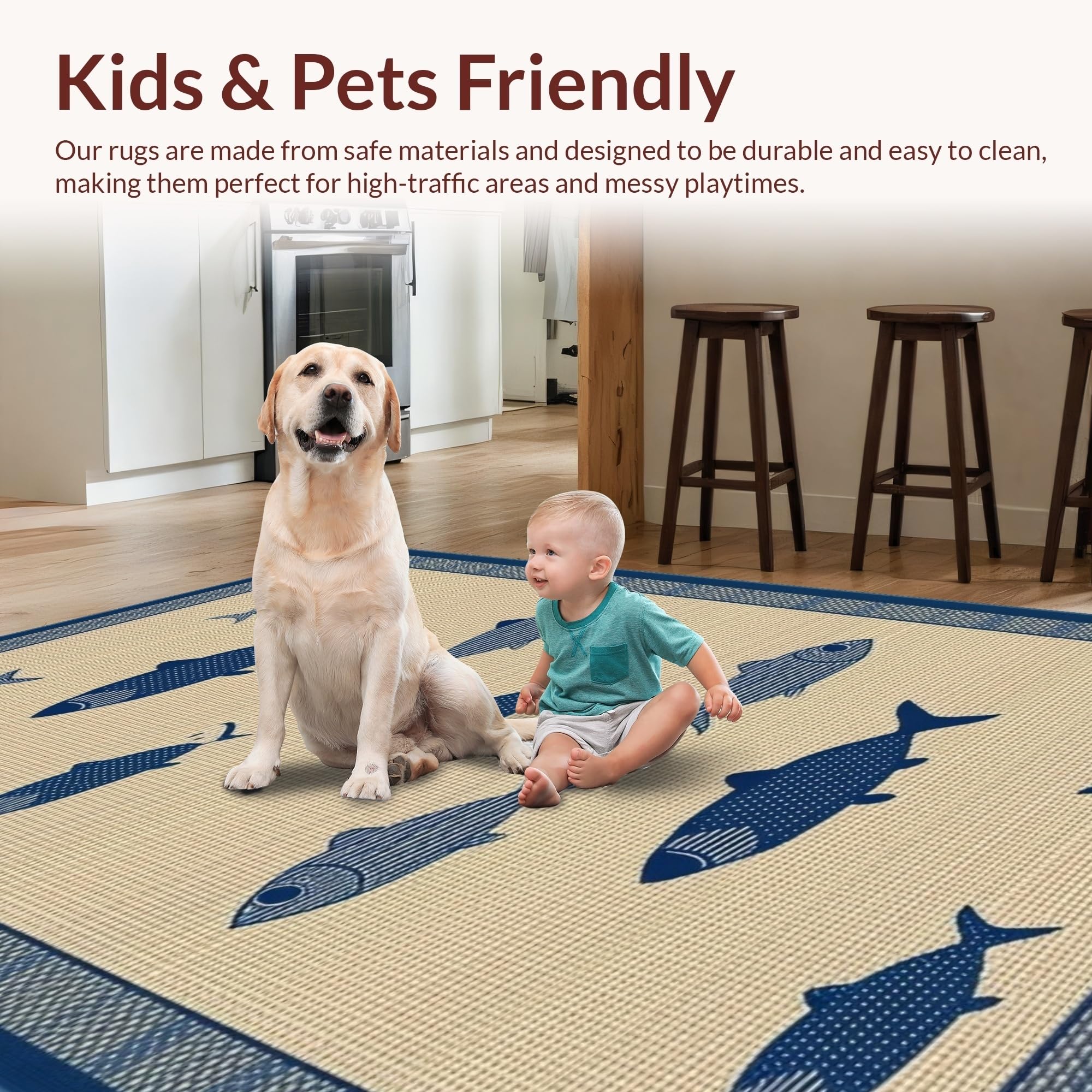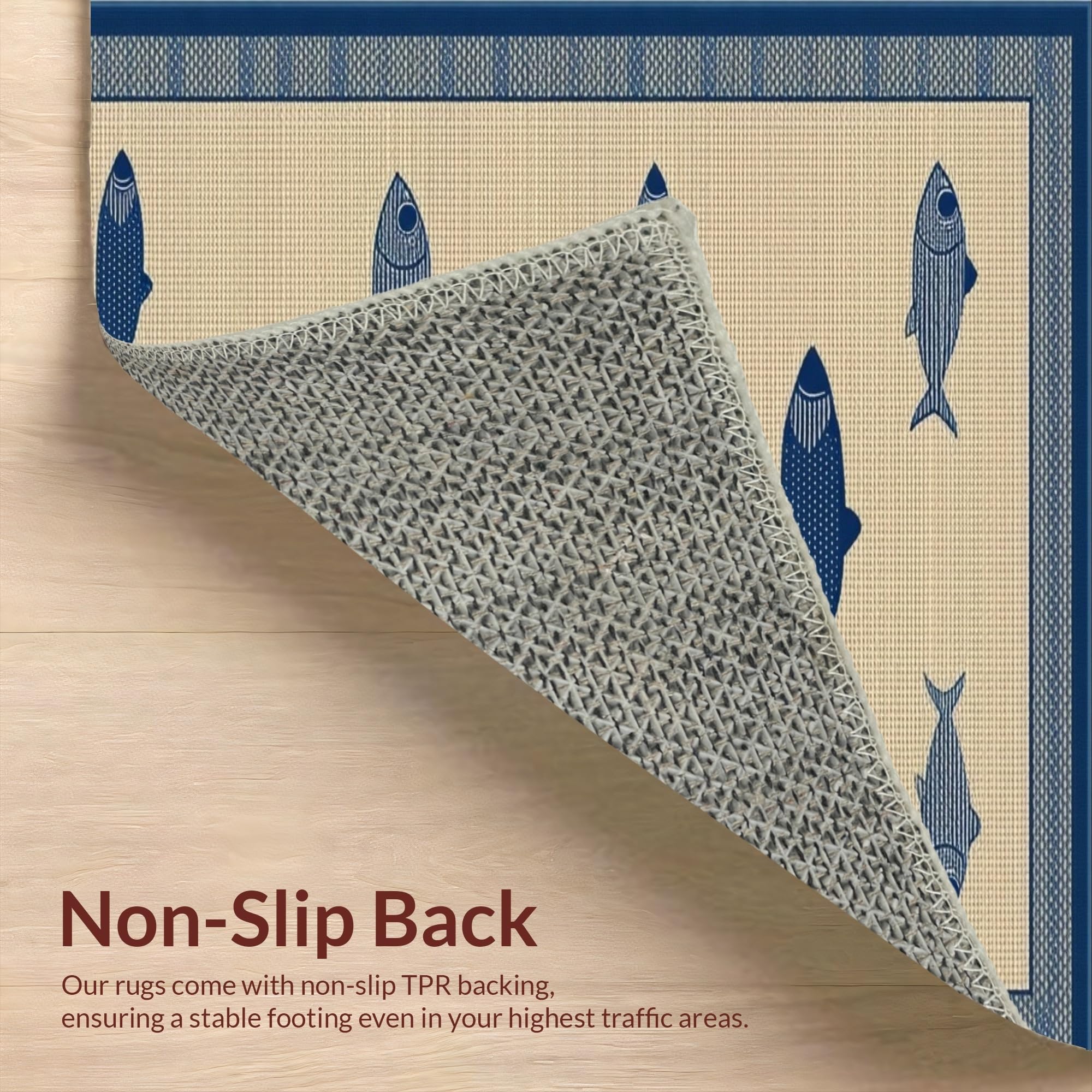 Ultra Soft Area Rug, Non Slip, Stain Resistant, Washable Area Rugs for Living Room, Bedroom, Artistic Abstract Fish Pattern(Beige) Overview: