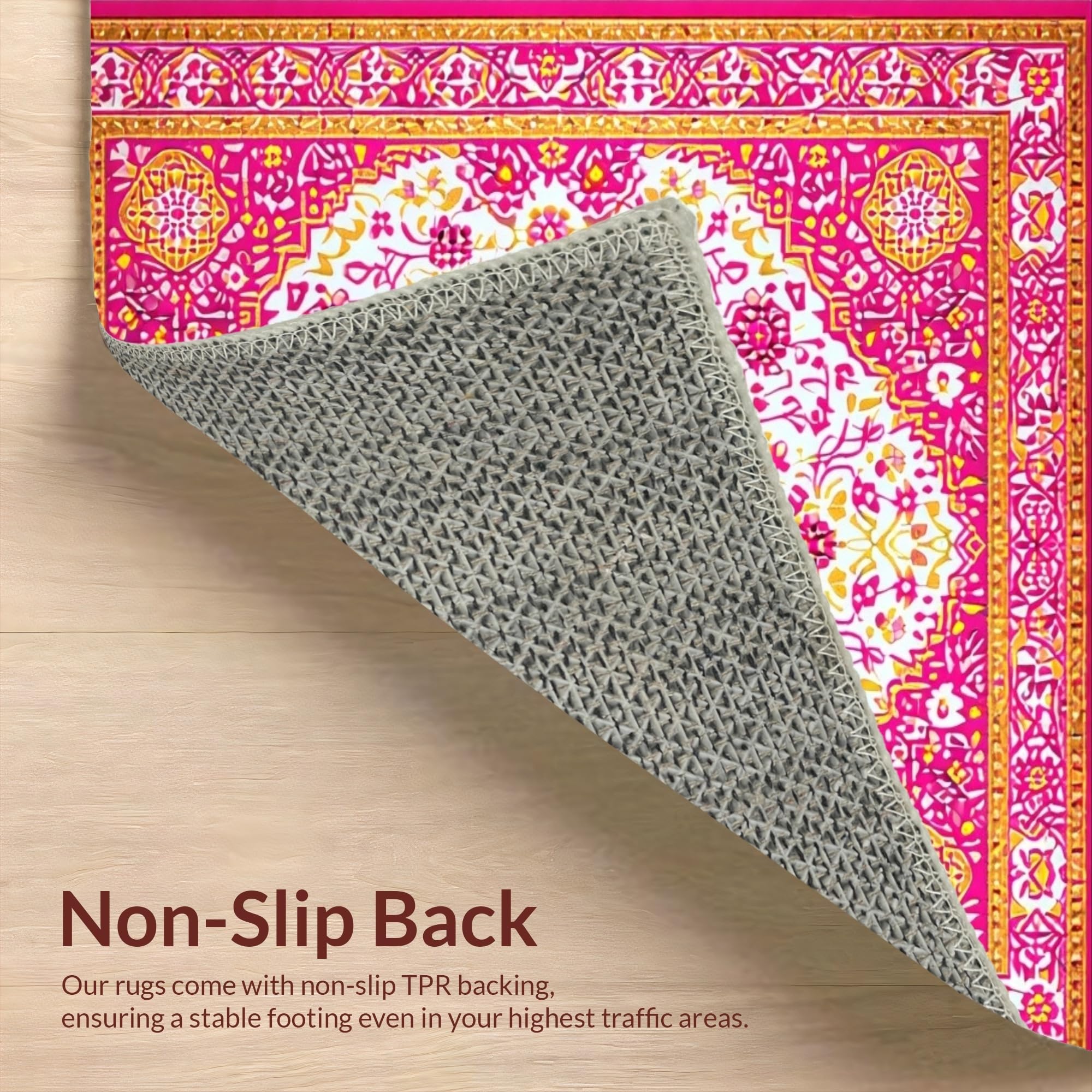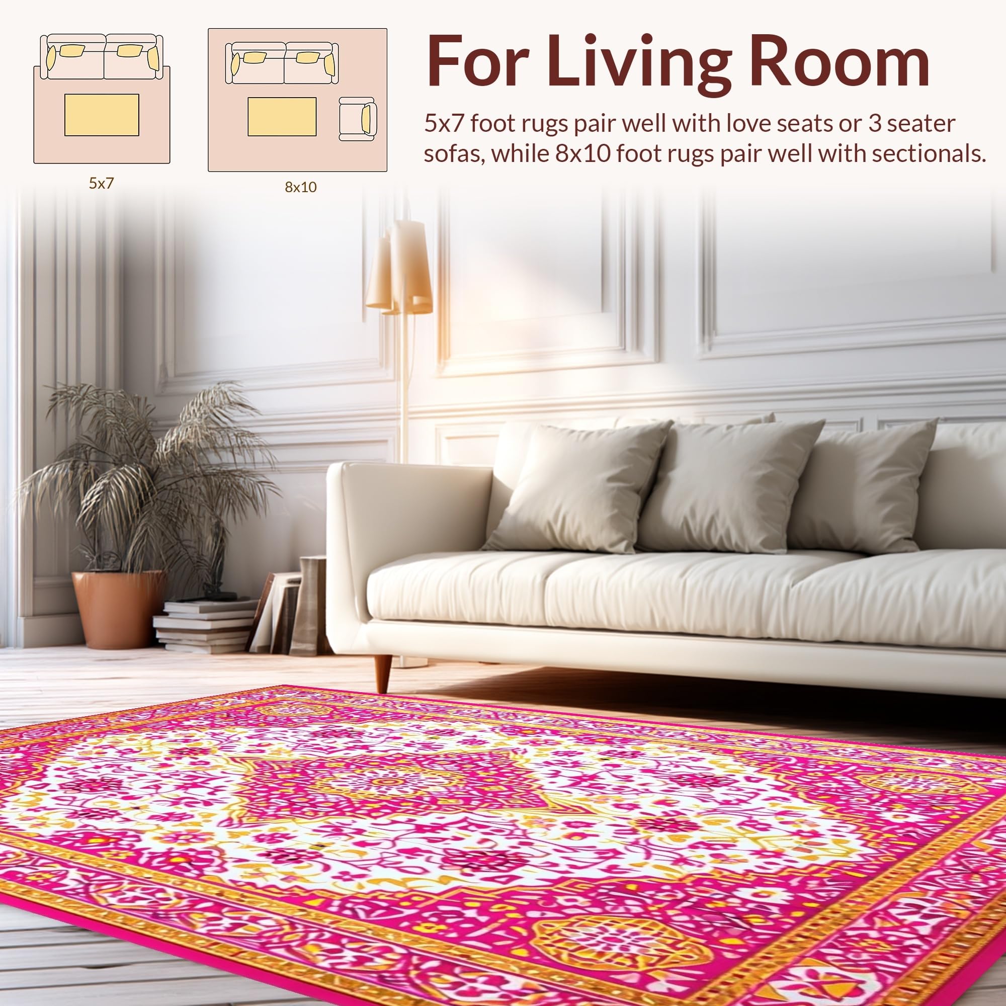 Ultra Soft Area Rug, Non Slip, Stain Resistant, Washable Area Rugs for Living Room, Bedroom, Artistic Abstract Floral Arrangement(Pink) Overview: