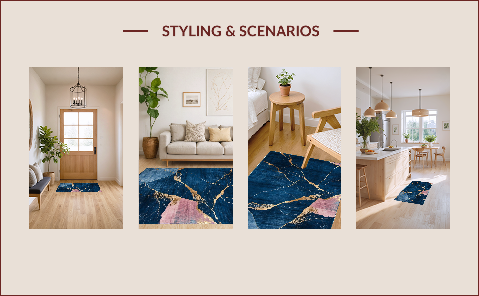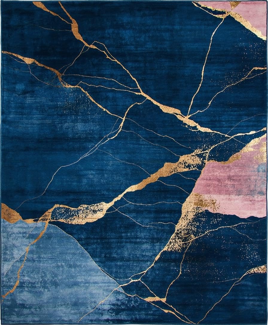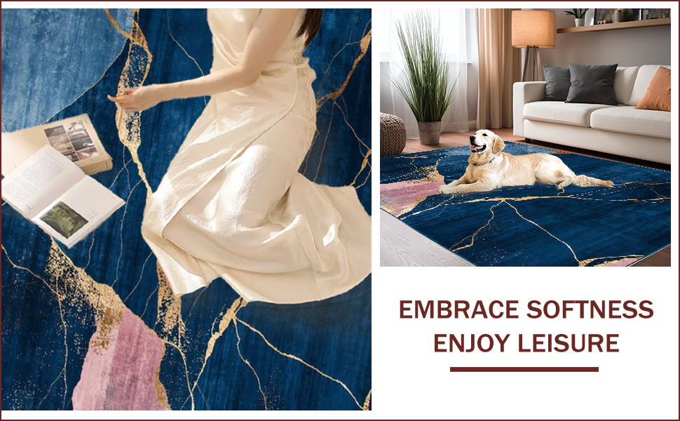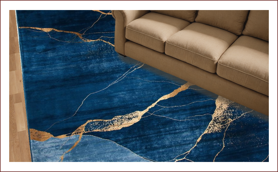 Ultra Soft Area Rug, Non Slip, Stain Resistant, Washable Area Rugs for Living Room, Bedroom, Artistic Abstract Marble Fusion(Blue) Overview: