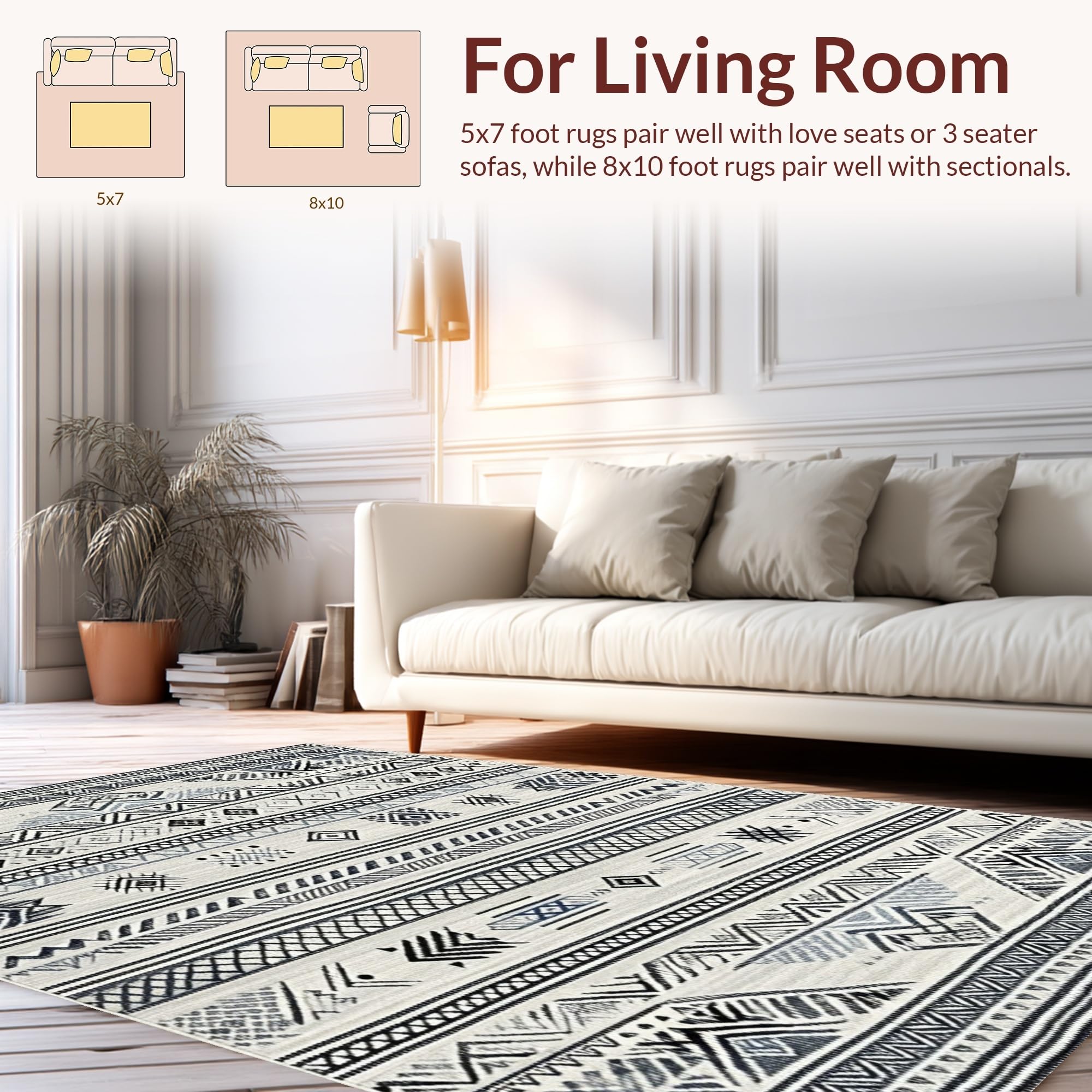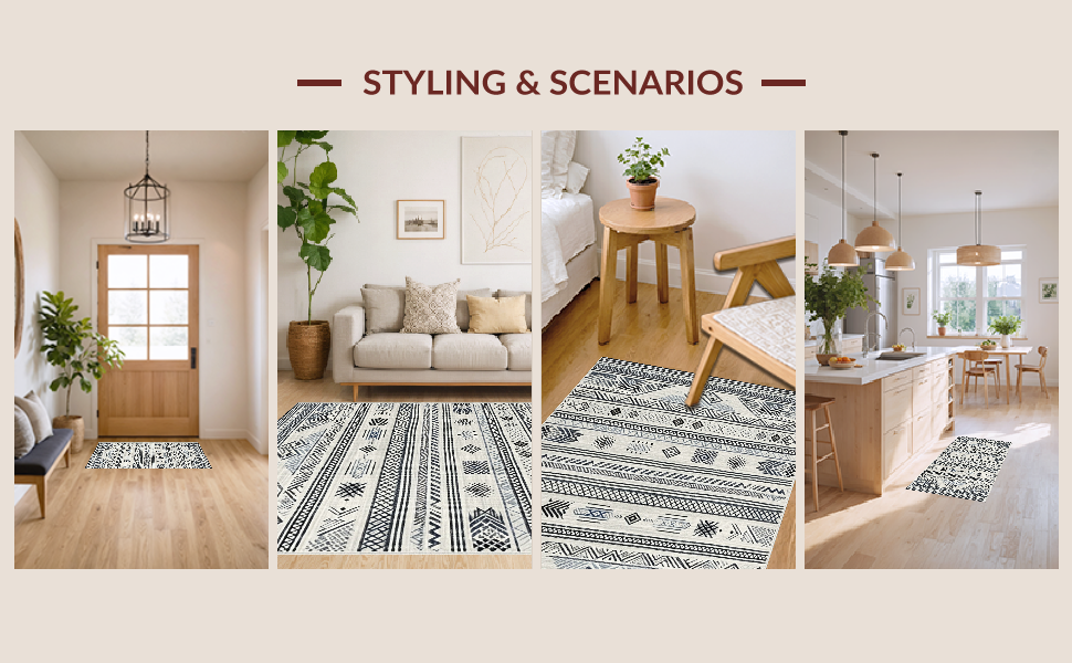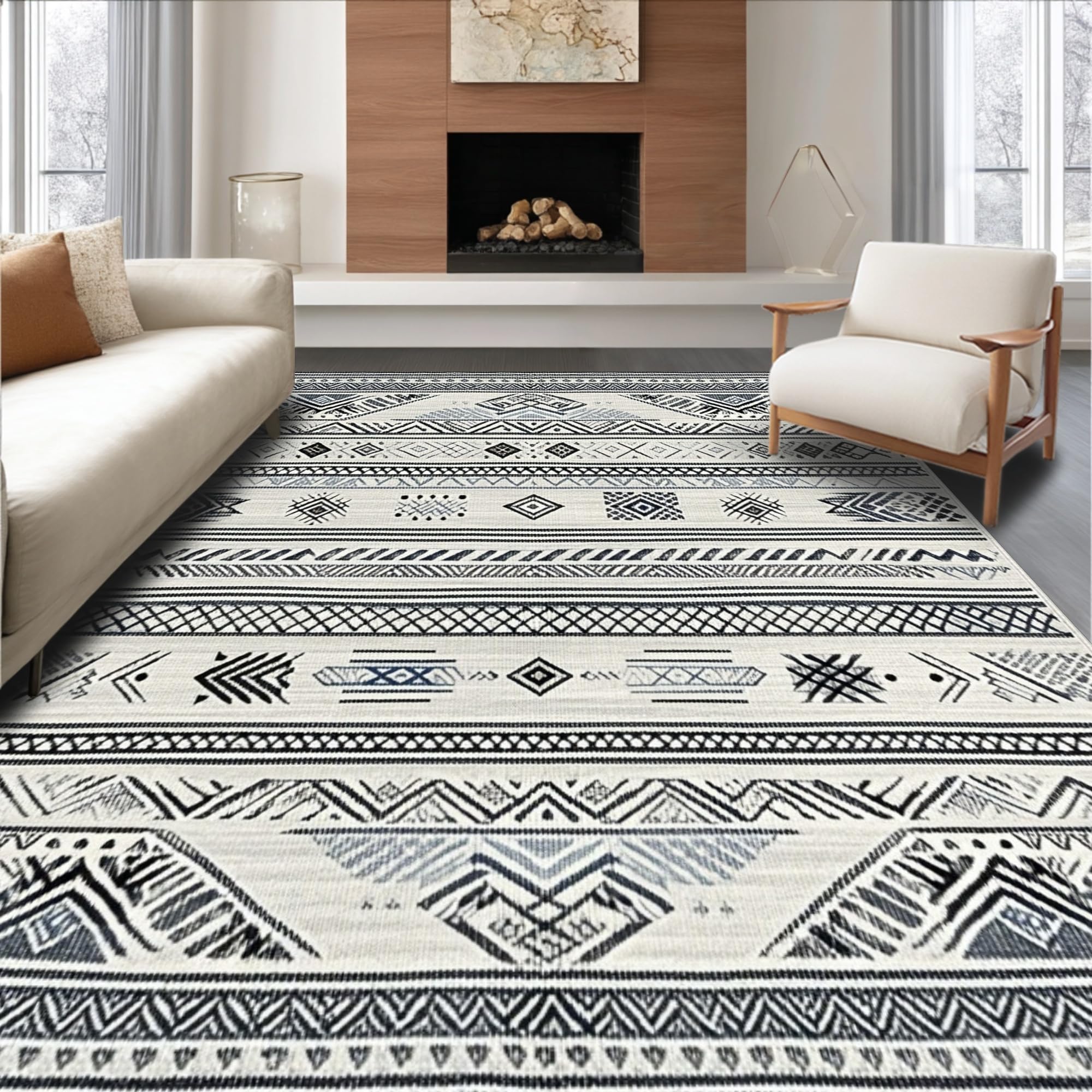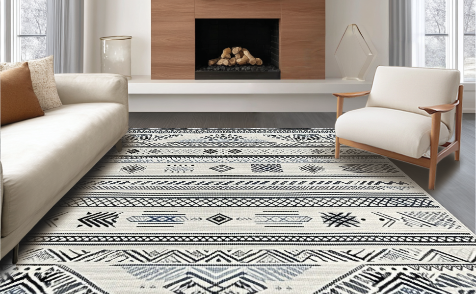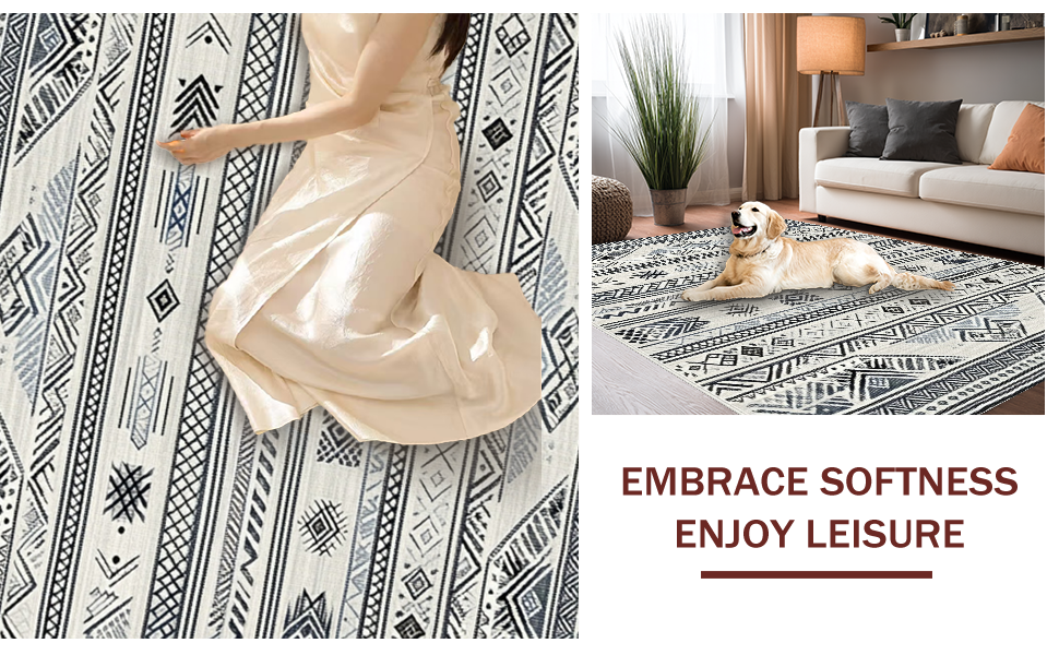 Ultra Soft Area Rug, Non Slip, Stain Resistant, Washable Area Rugs for Living Room, Bedroom, Artistic Abstract Monochrome Motif(Black) Overview: