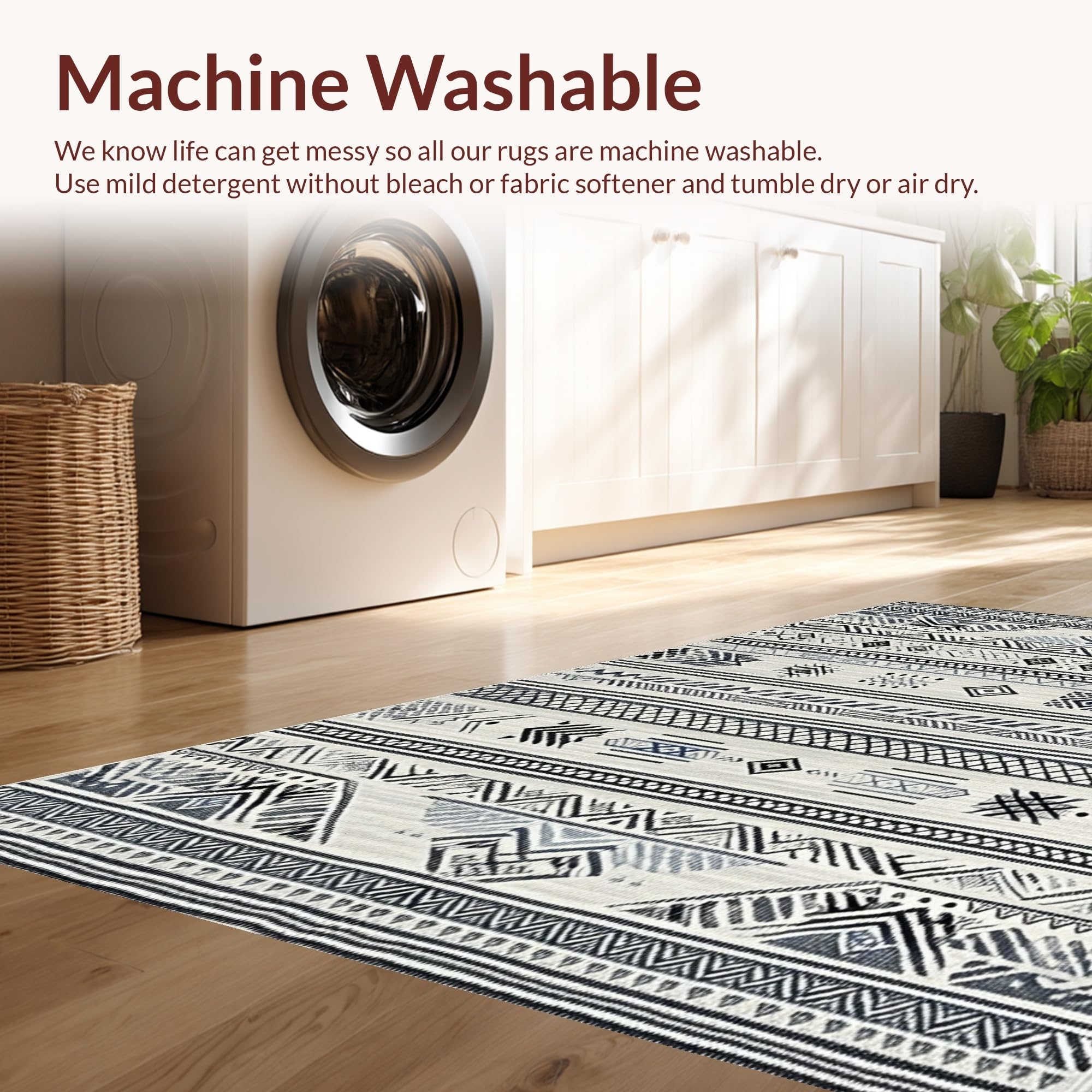 - Machine Washable: Our rugs can be easily thrown in the wash machine.