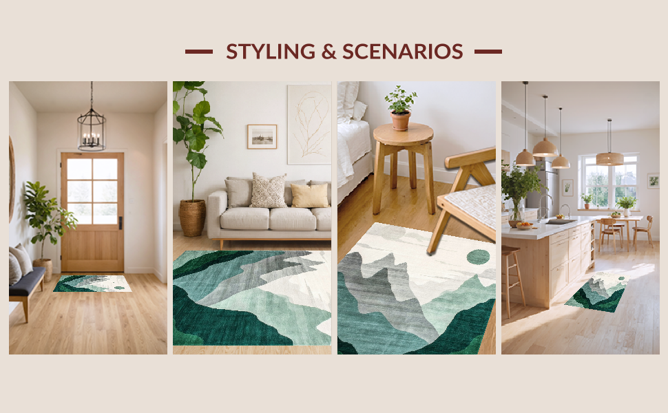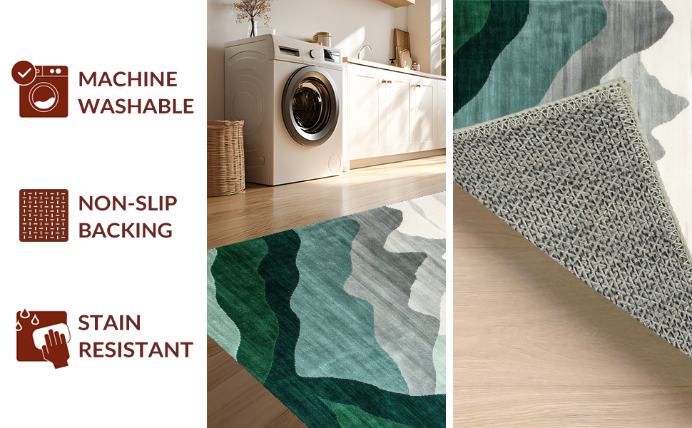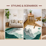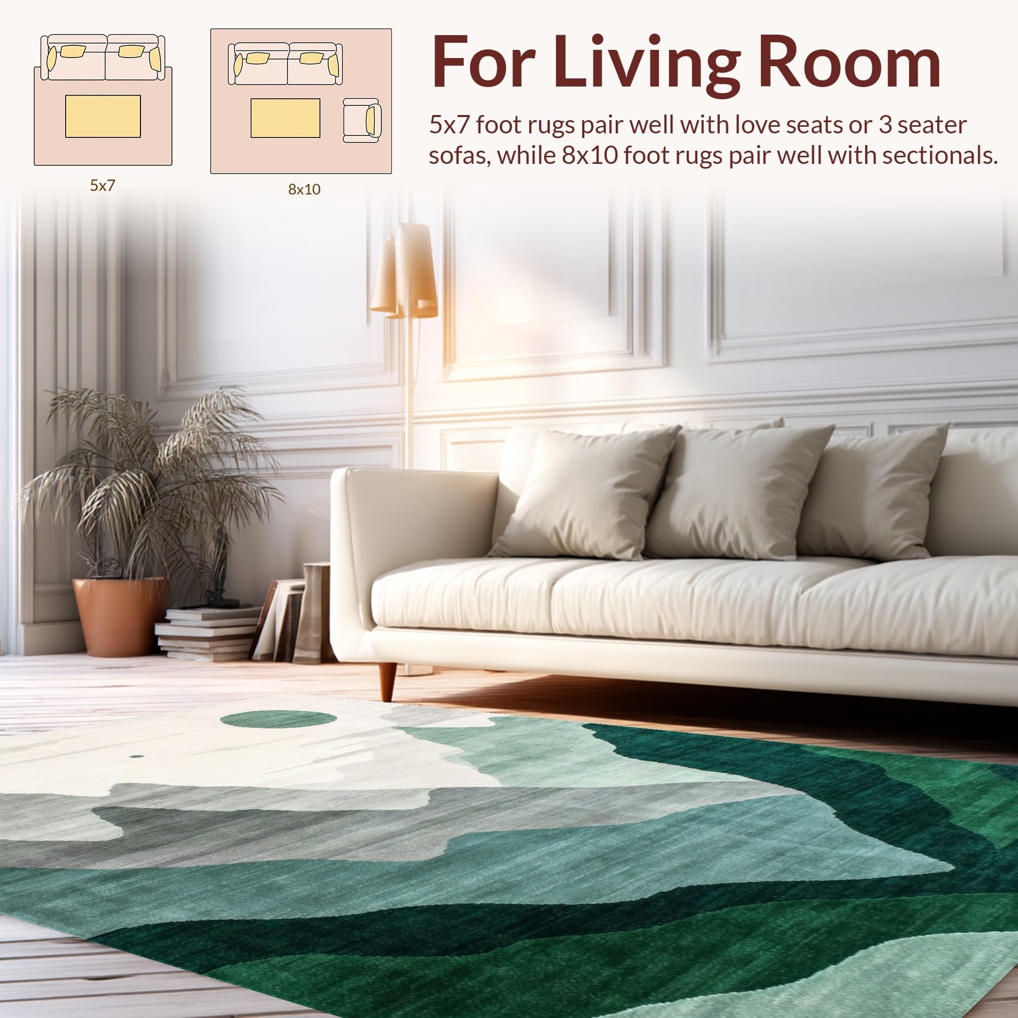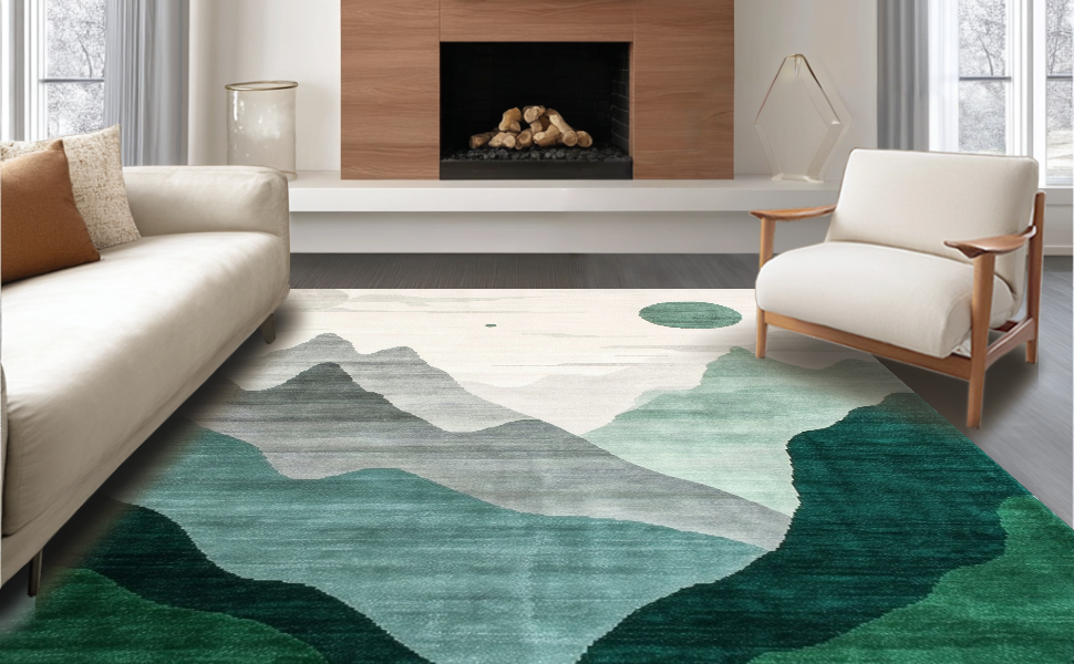 Ultra Soft Area Rug, Non Slip, Stain Resistant, Washable Area Rugs for Living Room, Bedroom, Artistic Abstract Mountain Silhouette(Green) Overview: