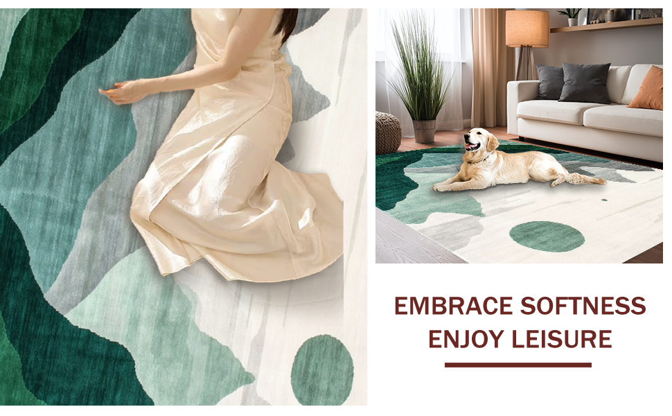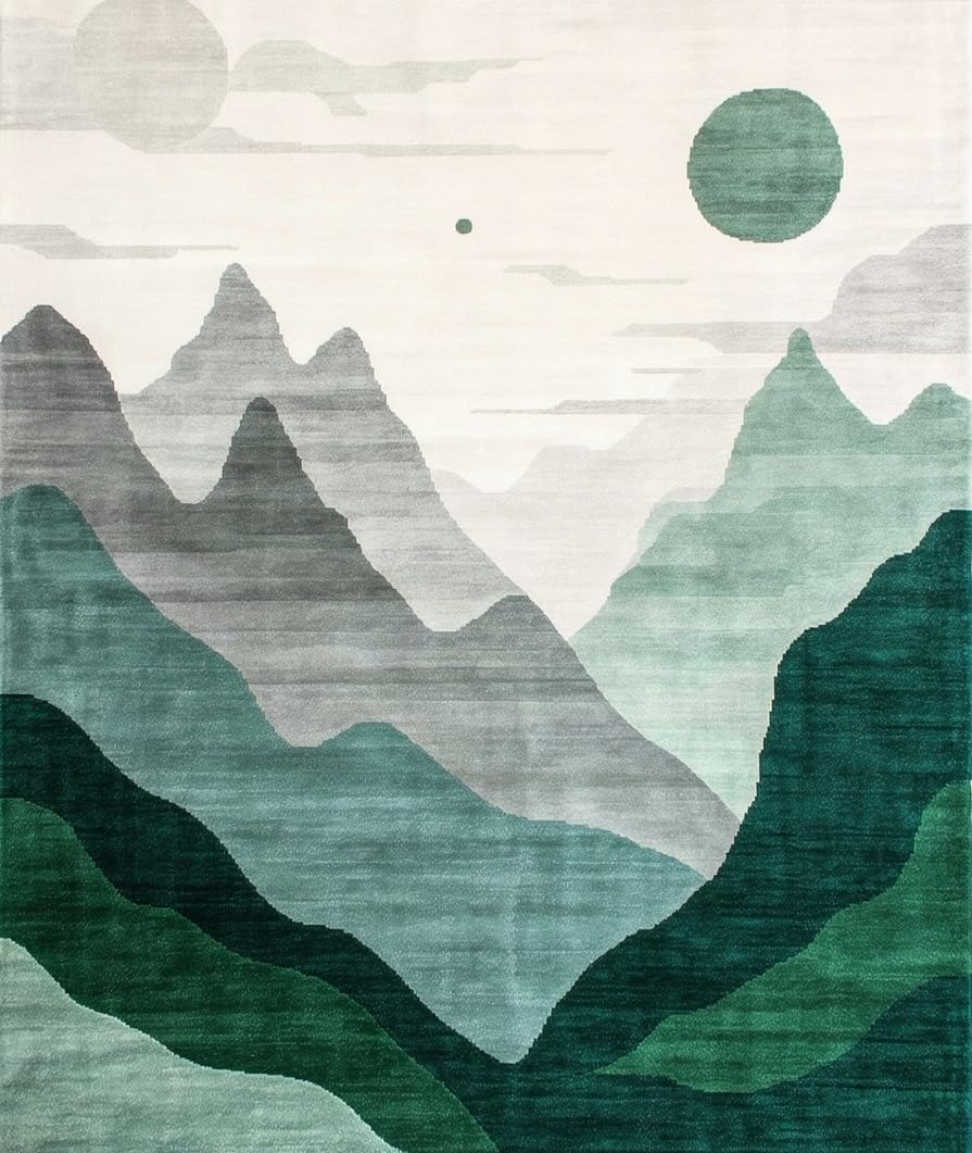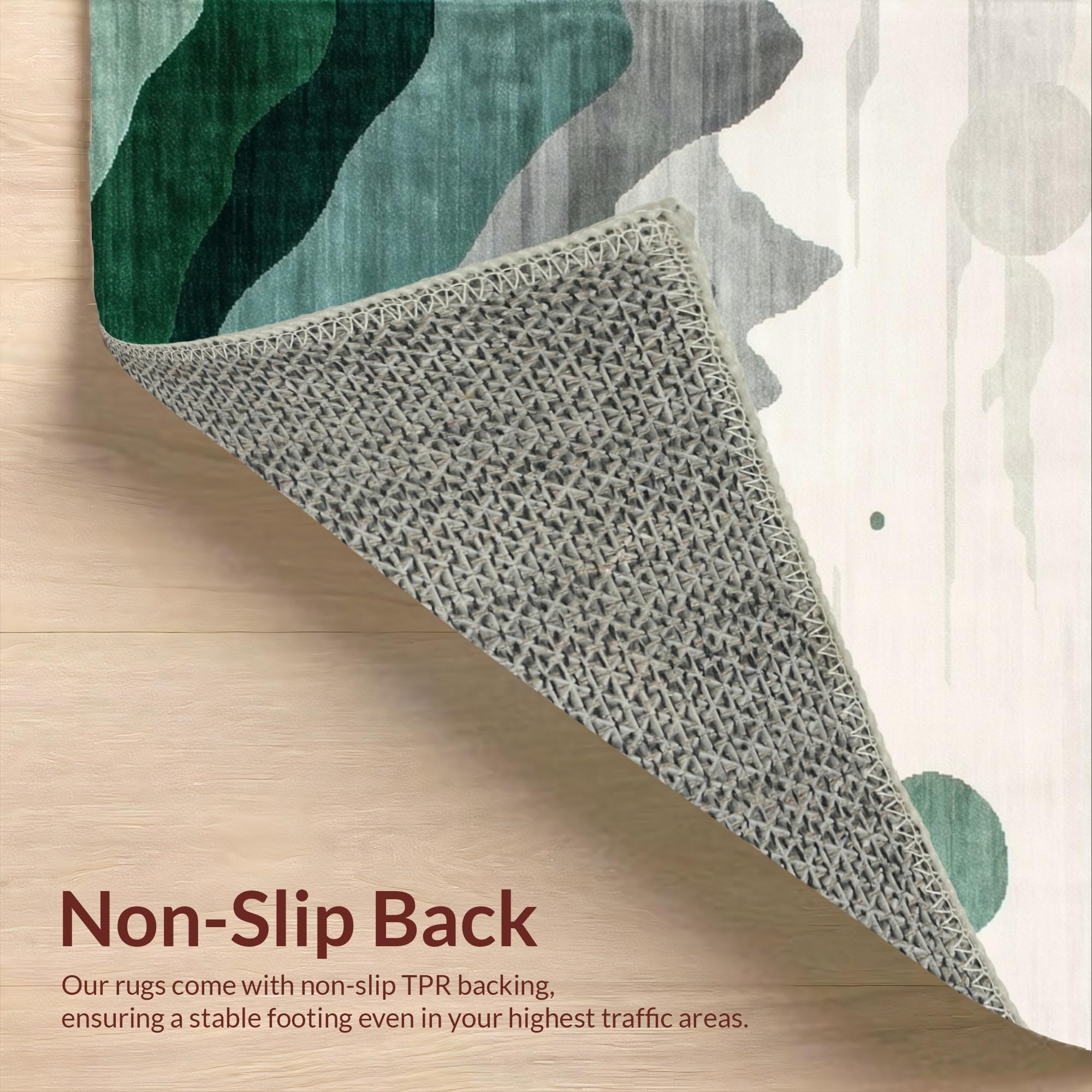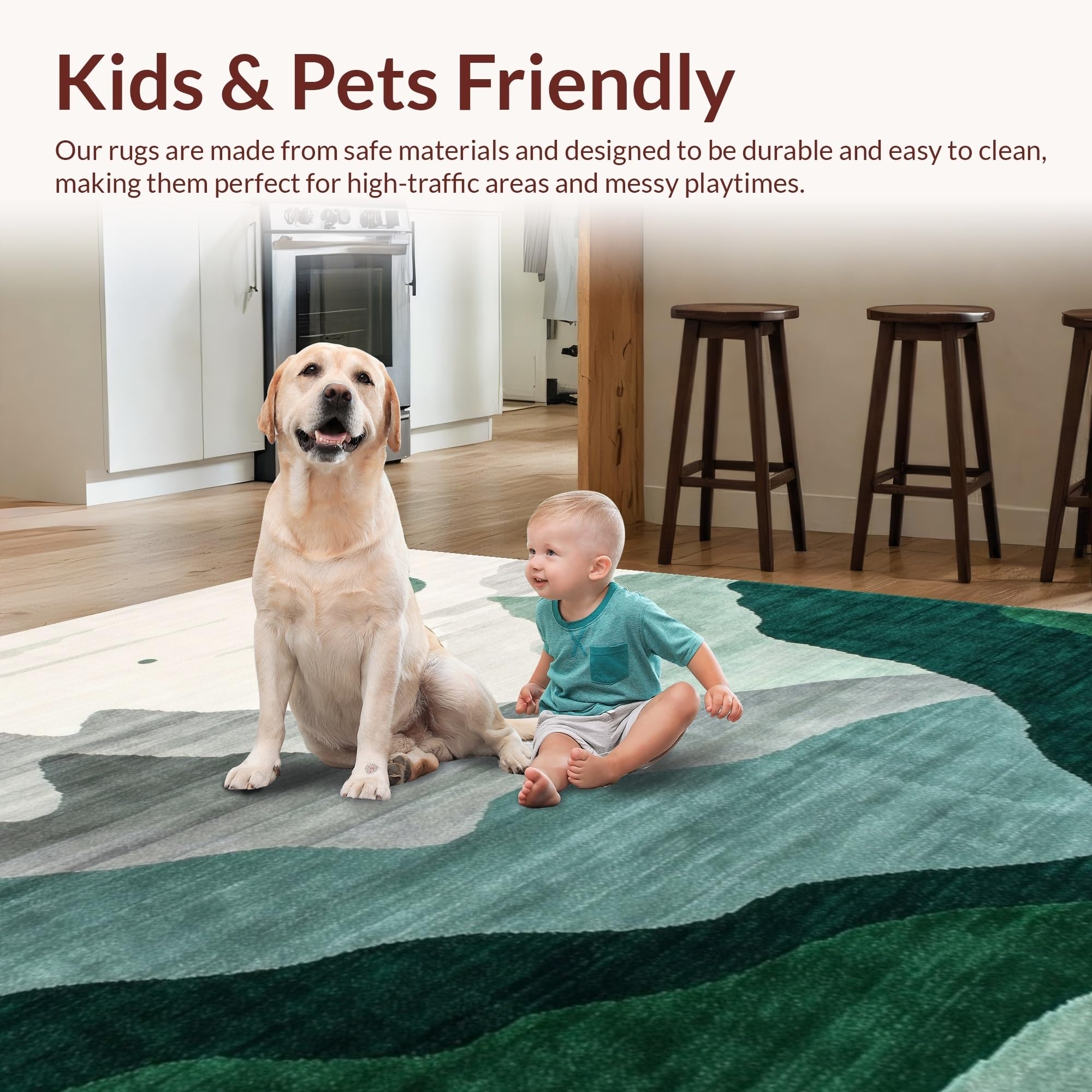 Ultra Soft Area Rug, Non Slip, Stain Resistant, Washable Area Rugs for Living Room, Bedroom, Artistic Abstract Mountain Silhouette(Green) Overview: