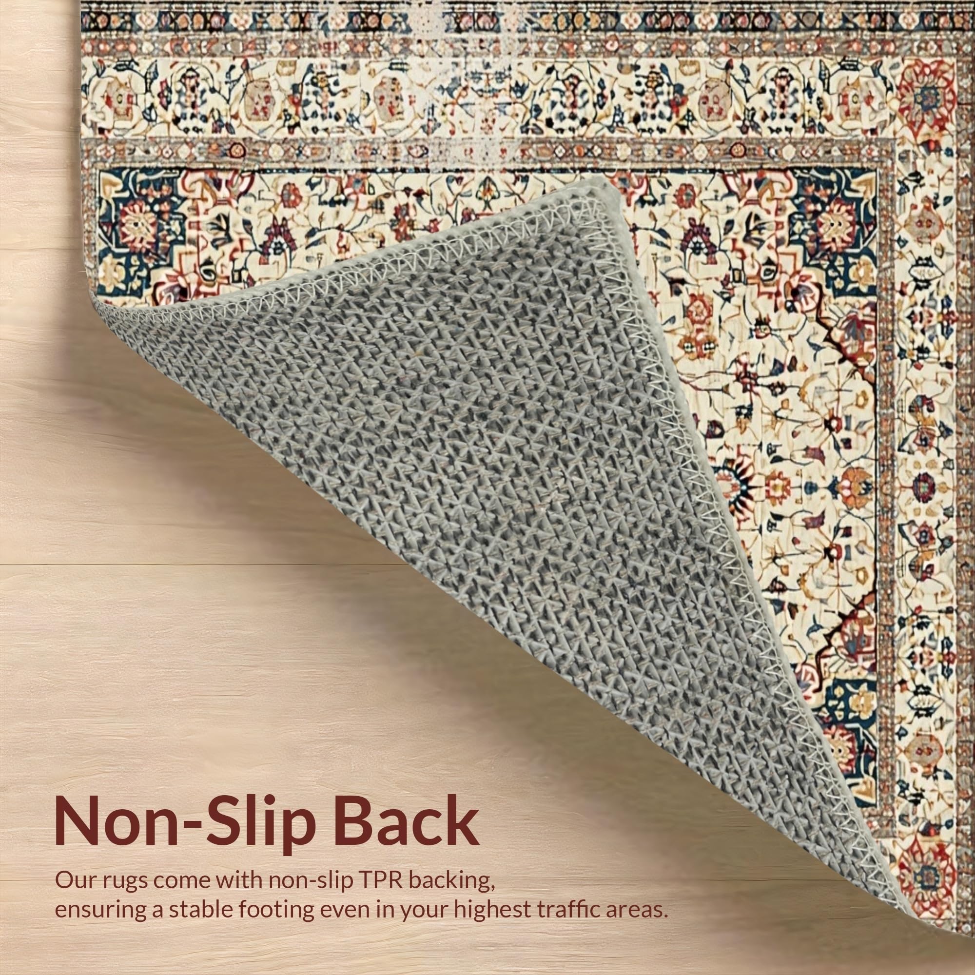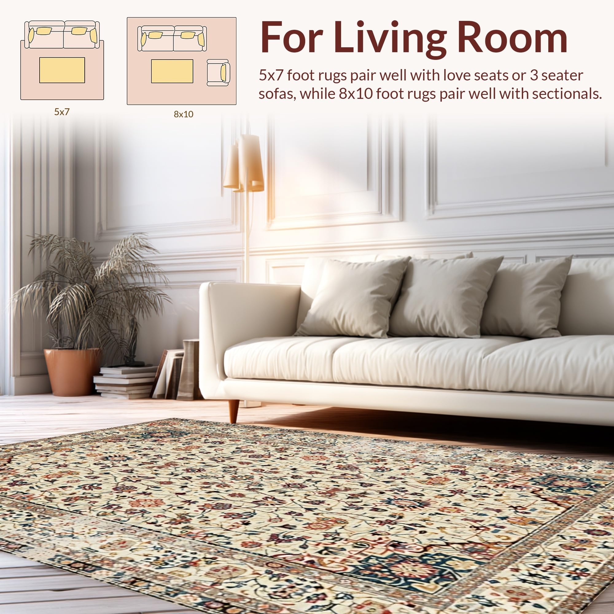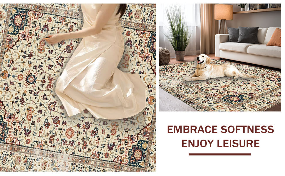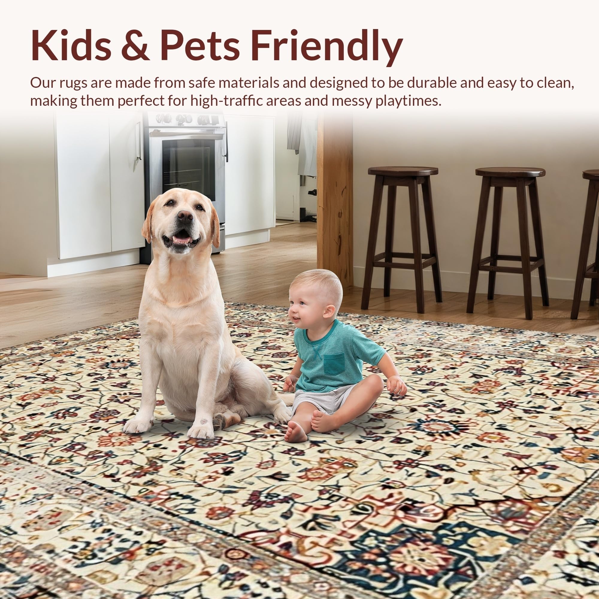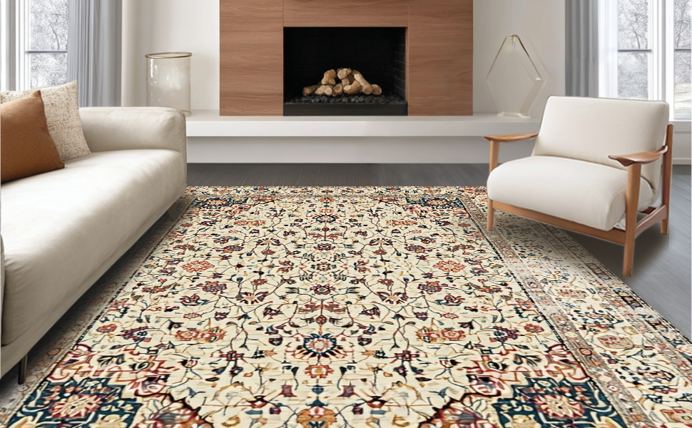 Ultra Soft Area Rug, Non Slip, Stain Resistant, Washable Area Rugs for Living Room, Bedroom, Artistic Abstract Ogee Arrangement(Beige) Overview: