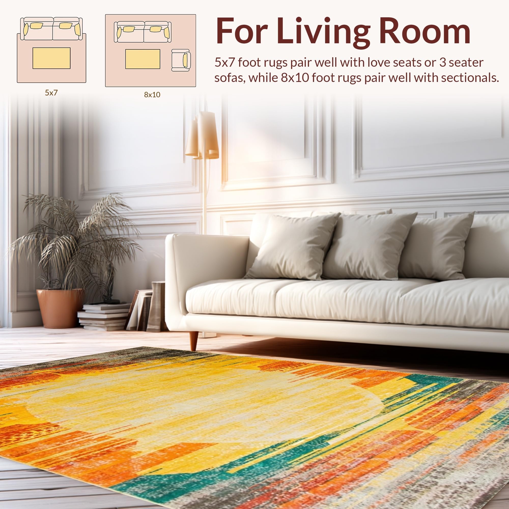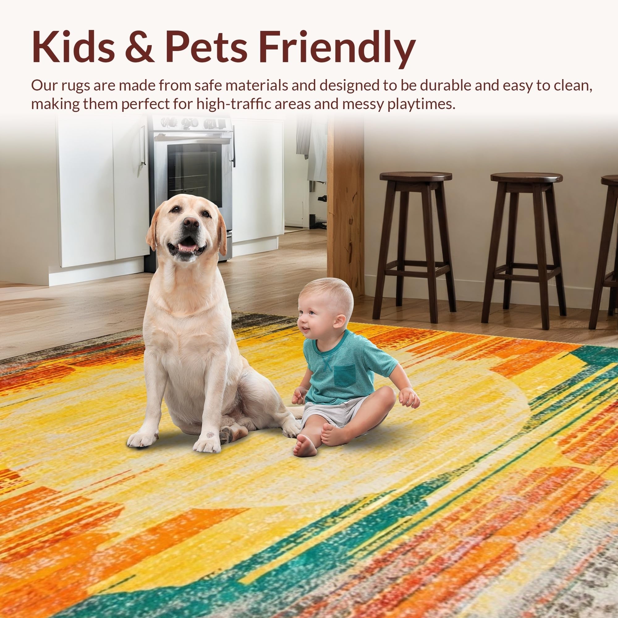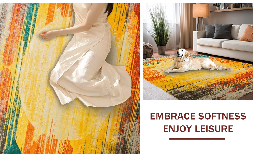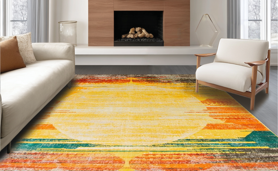 Ultra Soft Area Rug, Non Slip, Stain Resistant, Washable Area Rugs for Living Room, Bedroom, Artistic Abstract Round Pattern(Yellow) Overview:
