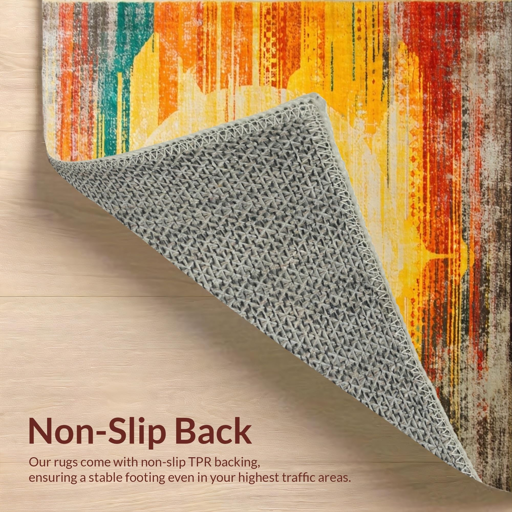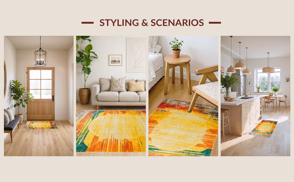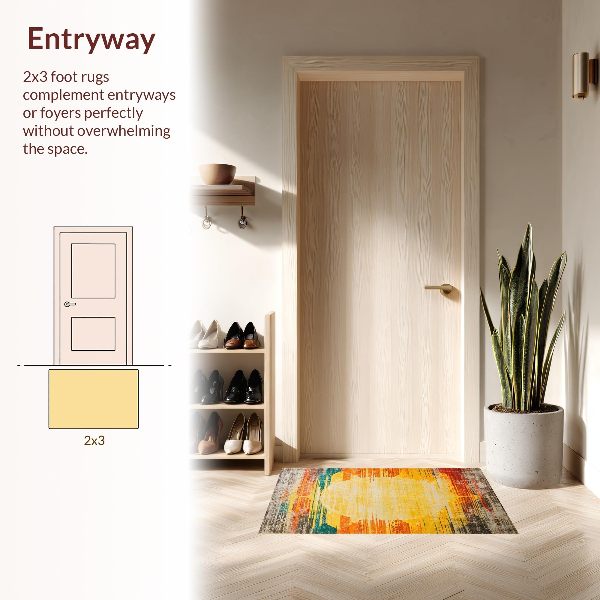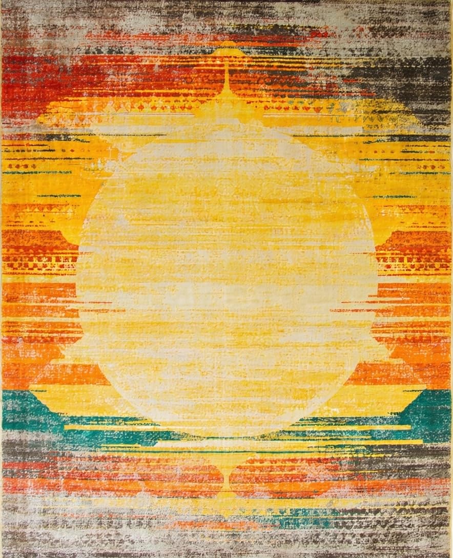 Ultra Soft Area Rug, Non Slip, Stain Resistant, Washable Area Rugs for Living Room, Bedroom, Artistic Abstract Round Pattern(Yellow) Overview: