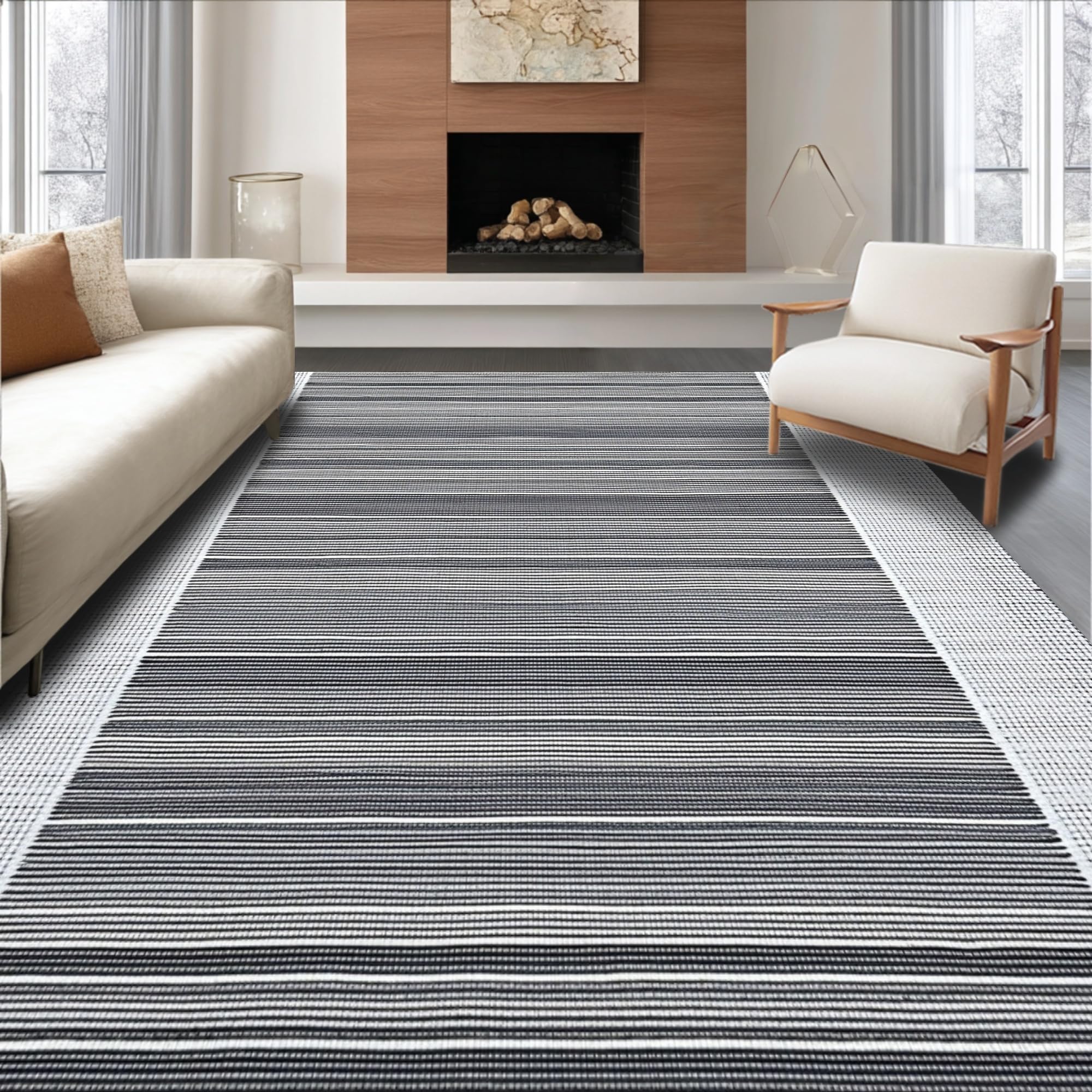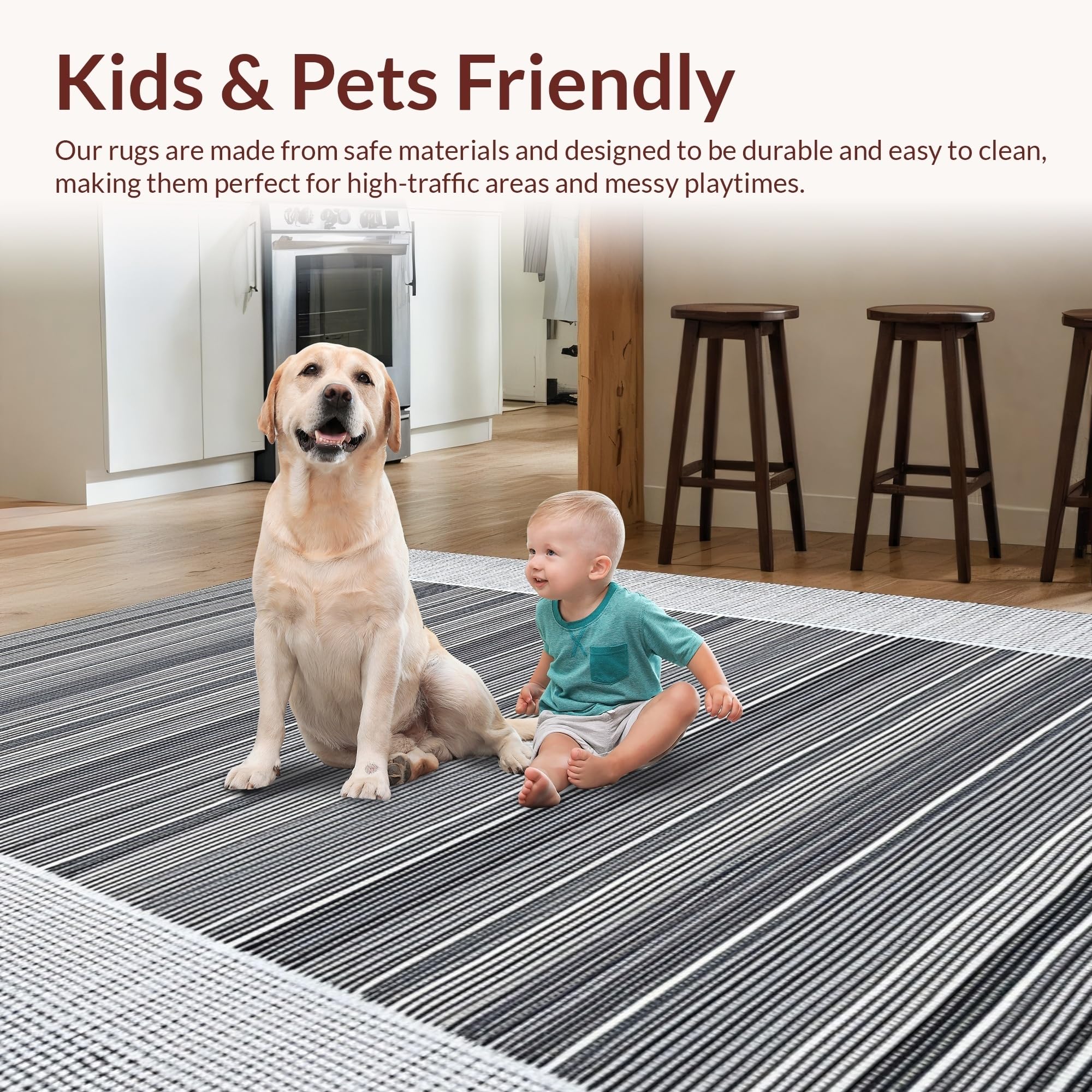 Ultra Soft Area Rug, Non Slip, Stain Resistant, Washable Area Rugs for Living Room, Bedroom, Artistic Abstract Scalloped Features(Black) Overview:
