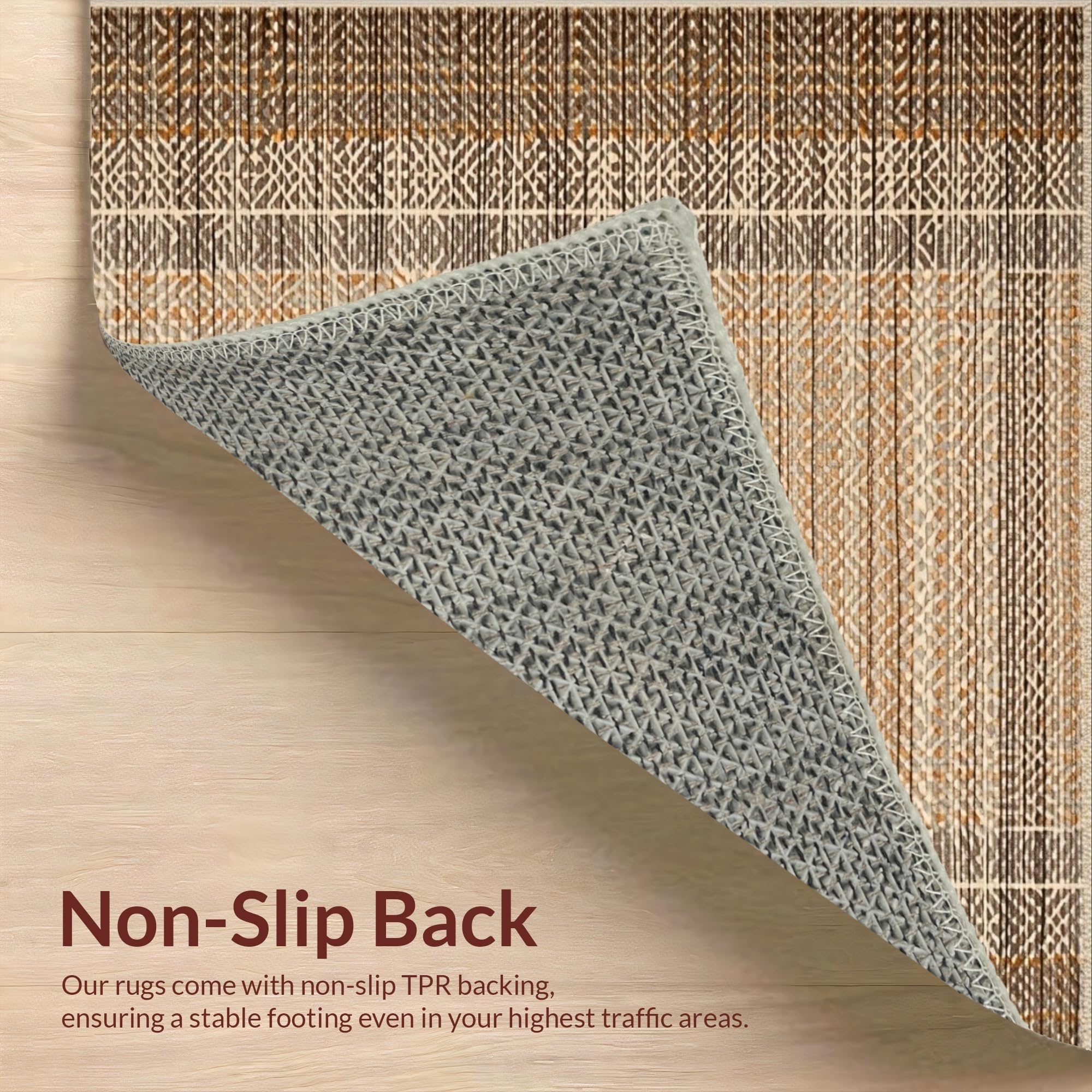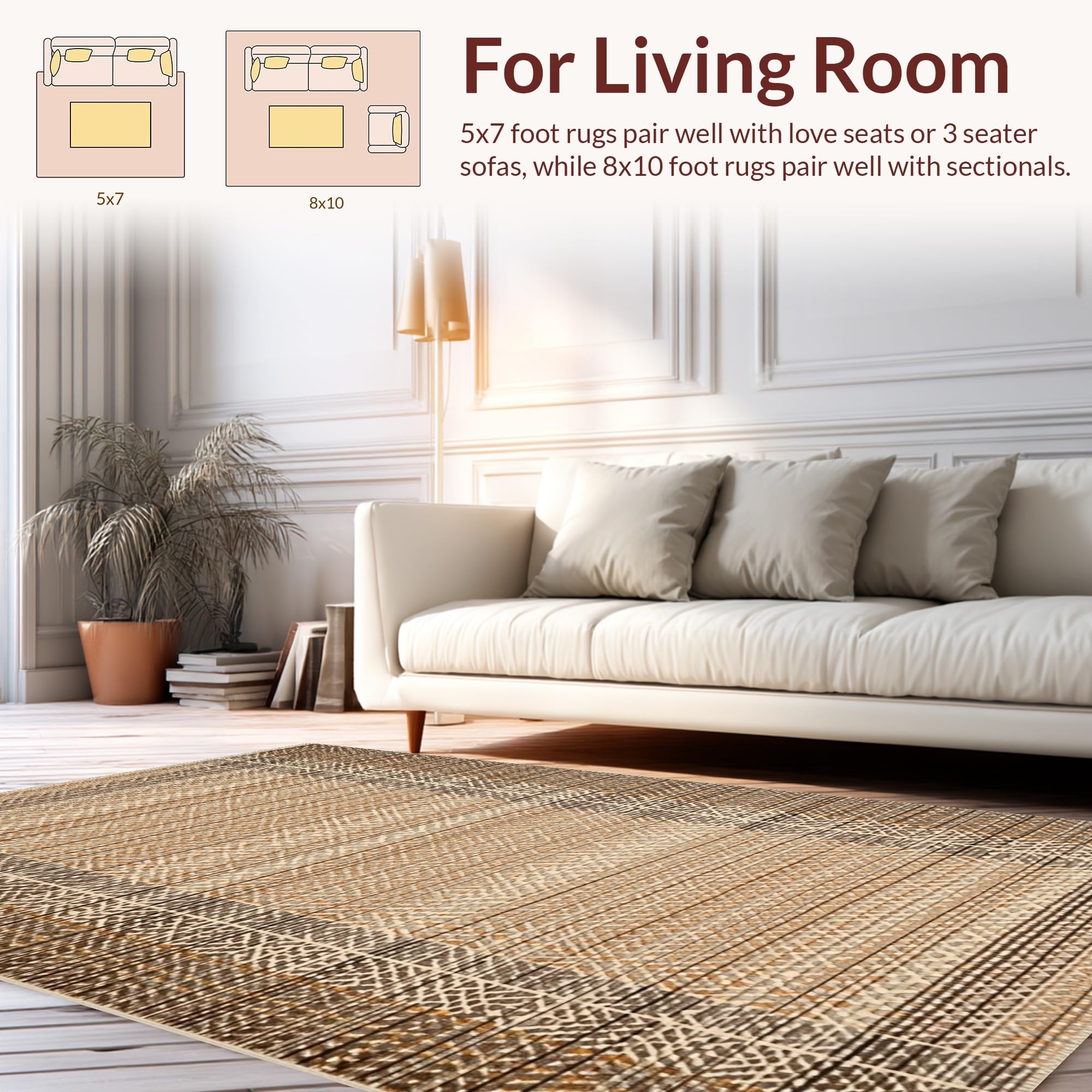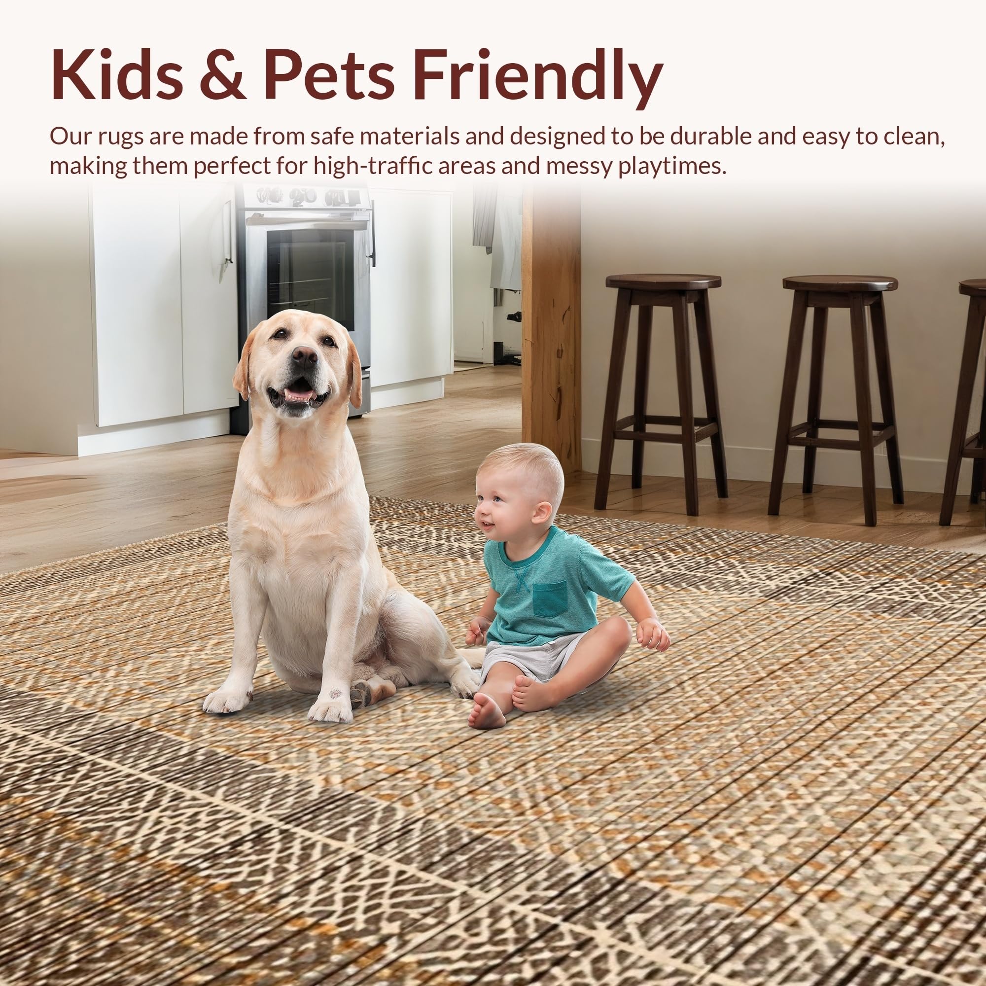 Ultra Soft Area Rug, Non Slip, Stain Resistant, Washable Area Rugs for Living Room, Bedroom, Artistic Abstract Waffle Motif(Beige) Overview: